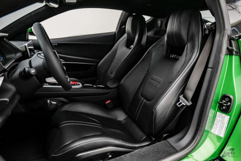 Earth MotorCars - Lotus of Dallas is Proud to Present This: Stunning New EOS Green $122,100 MSRP 2026 Lotus Emira V6 SE with Black Leather Seats and Black Leather Steering Wheel. Options Include: Touring Suspension, Extended Lower Black Pack, Black Brake Calipers, 20 Inch Forged Ultra-Lightweight Diamond Cut Satin Grey Prism Wheels, Black and Silver Badges, KEF Premium Audio, Sport Pedals, 6-Speed Transmission, Black Seat Belts, Blade Design Day Time Running Lights, Automatic LED Headlights, Titanium Exhaust Tailpipe Finishers, Bilstein Monotube Dampers, 12 Way Adjustable Seats, Dual Zone Climate Control, Wireless Apple CarPlay and Android Auto and so much more!
