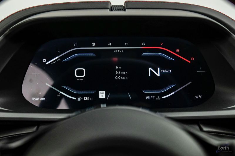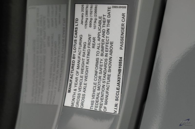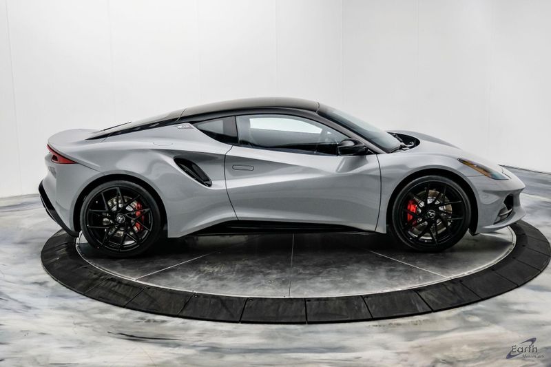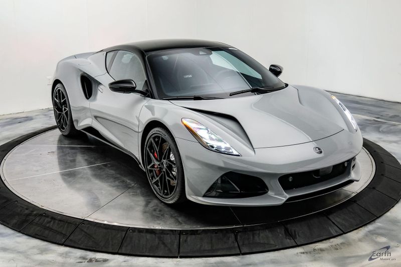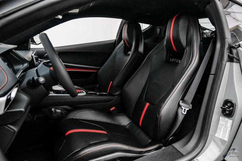 Earth MotorCars - Lotus of Dallas is Proud to Present This: Beautiful New Zinc Grey $121,700 MSRP 2026 Lotus Emira V6 SE with Black Leather Seats with Red Accents and Black Leather Steering Wheel with Red Marker and Stitching. Options Include: Touring Suspension, Full Black Pack, Red Brake Calipers, 20 Inch Forged Ultra-Lightweight Gloss Black Prism Wheels, Black and Silver Badges, KEF Premium Audio, Sport Pedals, 6-Speed Transmission, Black Seat Belts, Blade Design Day Time Running Lights, Automatic LED Headlights, Titanium Exhaust Tailpipe Finishers, Bilstein Monotube Dampers, 12 Way Adjustable Seats, Dual Zone Climate Control, Wireless Apple CarPlay and Android Auto and so much more!