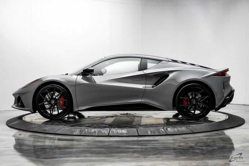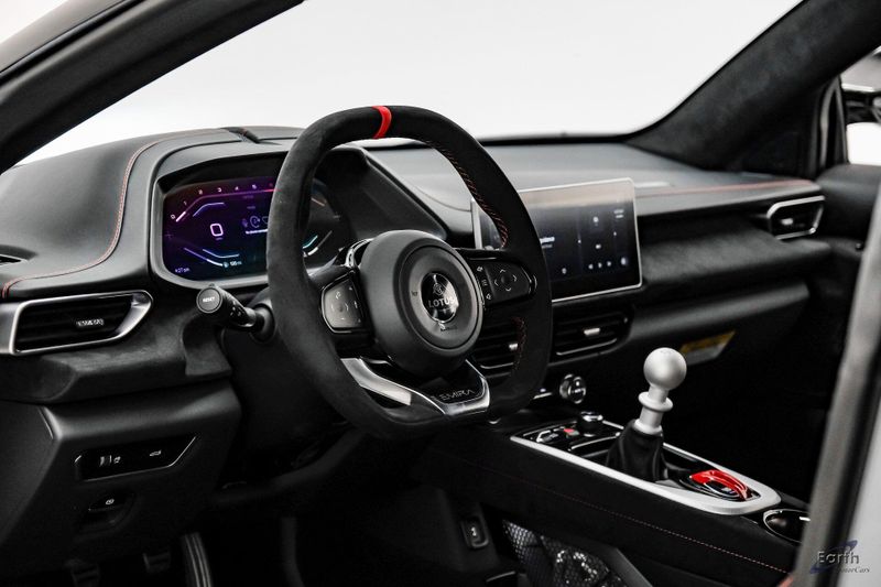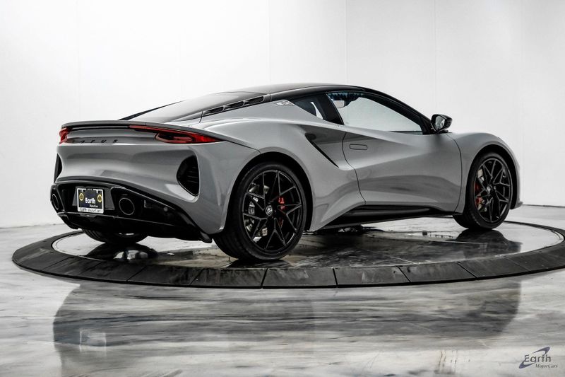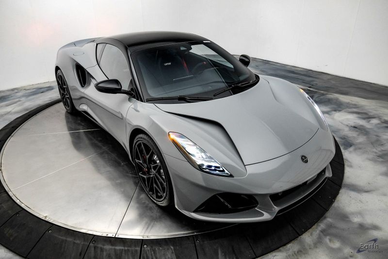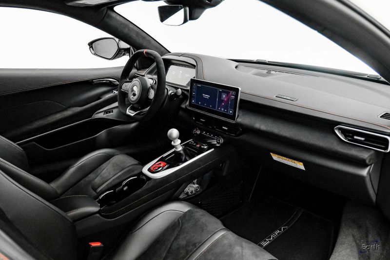 Earth MotorCars - Lotus of Dallas is Proud to Present This: Stunning New Zinc Grey $121,500 MSRP 2026 Lotus Emira V6 SE Sport Suspension with Black Alcantara Seats with Red Stitching, Black Alcantara Steering Wheel with Red Stitching and Alcantara Headliner. Options Include: Sport Suspension, Full Black Pack, Red Brake Calipers, 20 Inch Forged Ultra-Lightweight Gloss Black Prism Wheels, Black and Silver Badges, KEF Premium Audio, Sport Pedals, DCT Transmission, Red Seat Belts, Blade Design Day Time Running Lights, Automatic LED Headlights, Titanium Exhaust Tailpipe Finishers, Bilstein Monotube Dampers, 12 Way Adjustable Seats, Dual Zone Climate Control, Wireless Apple CarPlay and Android Auto and so much more!