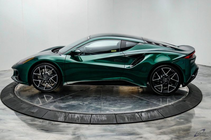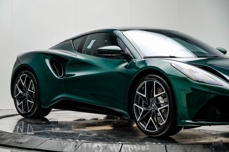 Earth MotorCars - Lotus of Dallas is Proud to Present This: Awesome New Very Limited Racing Green $123,650 MSRP 2026 Lotus Emira V6 SE Touring with Black Leather Seats, Steering Wheel and Alcantara Headliner. Options Include: Touring Suspension, Extended Lower Black Pack, Black Brake Calipers, 20 Inch Forged Ultra-Lightweight Diamond Turned Silver and Satin Grey Prism Wheels, Black and Silver Badges, KEF Premium Audio, Sport Pedals, 6-Speed Manual Transmission, Black Seat Belts, Blade Design Day Time Running Lights, Automatic LED Headlights, Titanium Exhaust Tailpipe Finishers, Bilstein Monotube Dampers, 12 Way Adjustable Seats, Dual Zone Climate Control, Wireless Apple CarPlay and Android Auto and so much more!