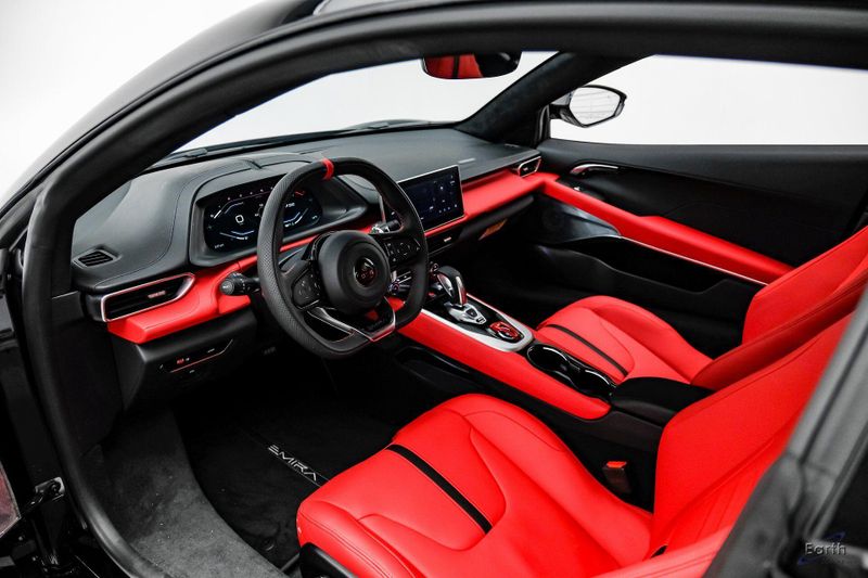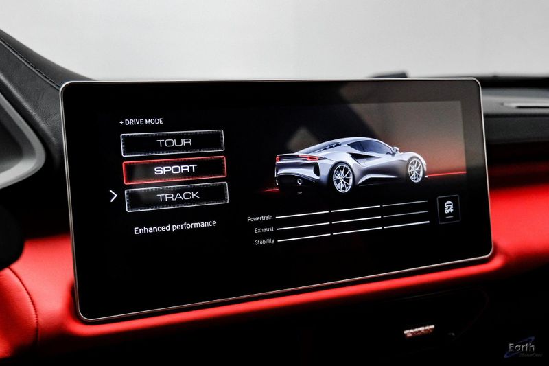 Earth MotorCars - Lotus of Dallas is Proud to Present This: Stunning New Cosmos Black $114,950 MSRP 2026 Lotus Emira Turbo SE Touring with Red Leather Seats, Black Leather Steering Wheel with Red Stitching and Alcantara Headliner. Options Include: Touring Suspension, Extended Lower Black Pack, Red Brake Calipers, 20 Inch Forged Ultra-Lightweight Gloss Black Prism Wheels, Black and Silver Badges, KEF Premium Audio, Sport Pedals, DCT Manual Transmission, Black Seat Belts, Blade Design Day Time Running Lights, Automatic LED Headlights, Titanium Exhaust Tailpipe Finishers, Bilstein Monotube Dampers, 12 Way Adjustable Seats, Dual Zone Climate Control, Wireless Apple CarPlay and Android Auto and so much more!