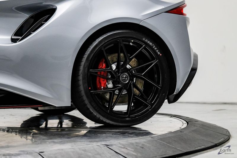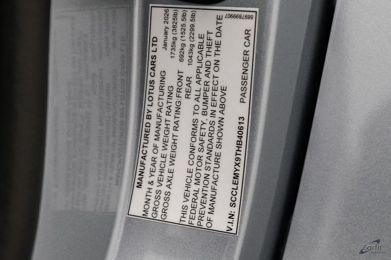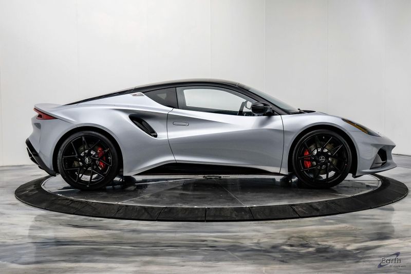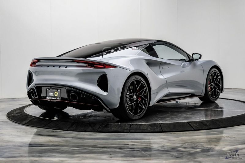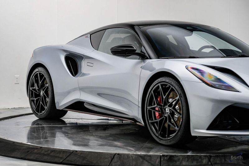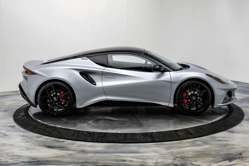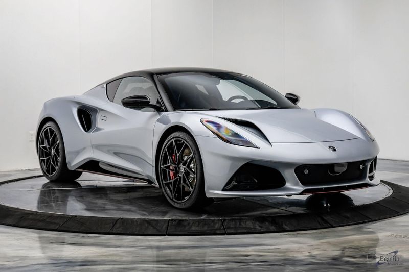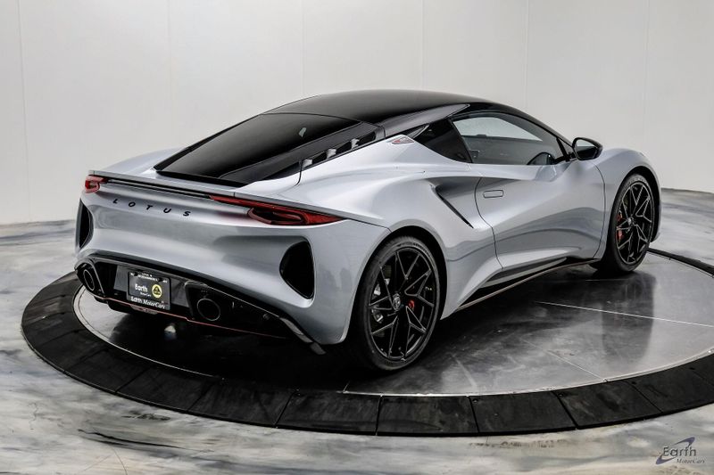Earth MotorCars - Lotus of Dallas is Proud to Present This: Stunning New Osmium Silver $117,250 MSRP 2026 Lotus Emira Turbo SE Racing Line Touring with Red Racing Line Accent Line Color, Black Alcantara Seats with Red Stitching, and Black Alcantara Steering Wheel with Red Marker & Stitching. Options Include: Touring Suspension, Full Black Pack, Red Brake Calipers, 20 Inch Forged Ultra-Lightweight Gloss Black Prism Wheels, Black and Silver Badges, KEF Premium Audio, Privacy Glass, Sport Pedals, DCT 8-Speed Transmission, Red Seat Belts, Blade Design Day Time Running Lights, Automatic LED Headlights, Titanium Exhaust Tailpipe Finishers, Bilstein Monotube Dampers, 12 Way Adjustable Seats, Dual Zone Climate Control, Wireless Apple CarPlay and Android Auto and so much more!