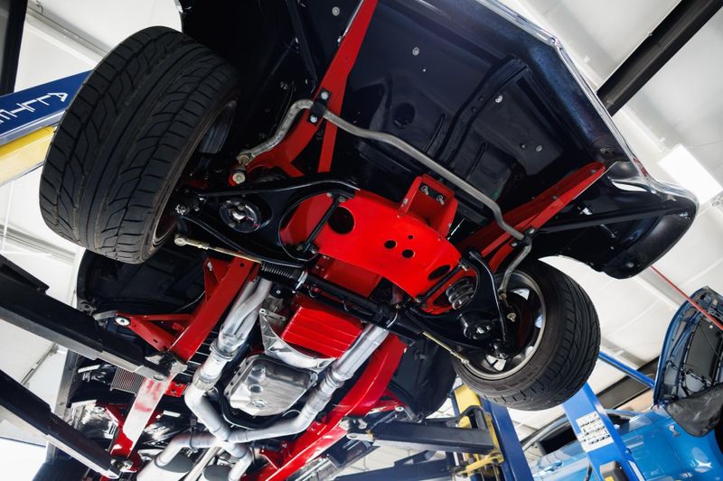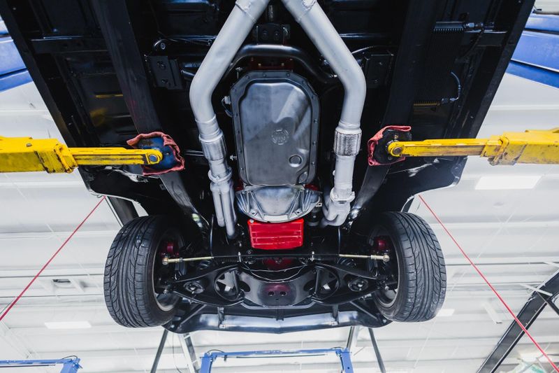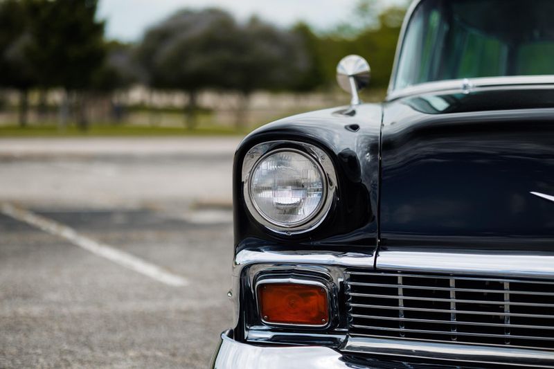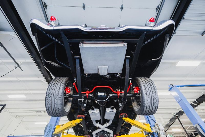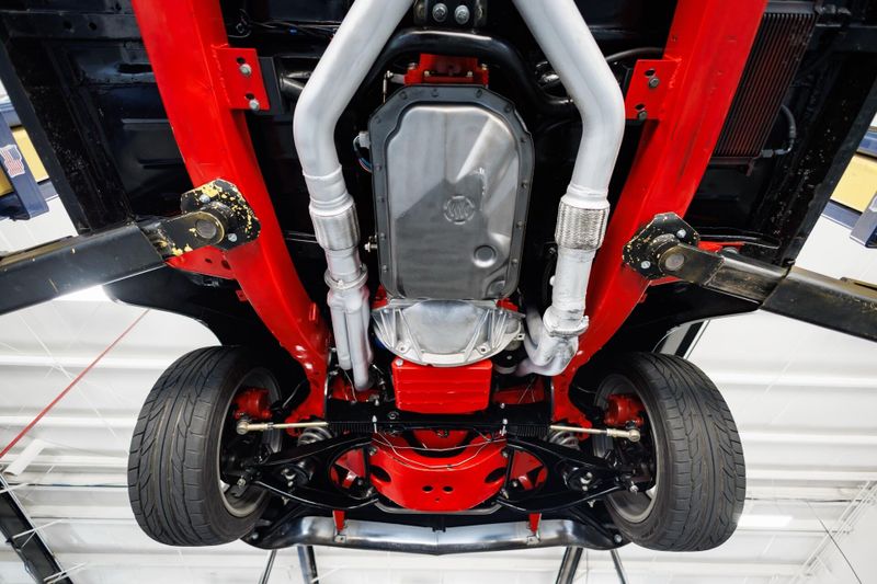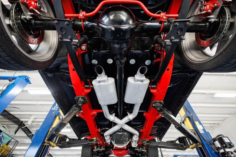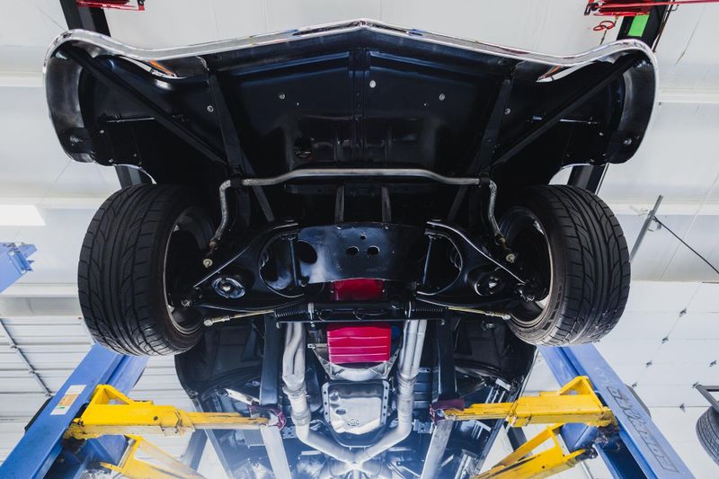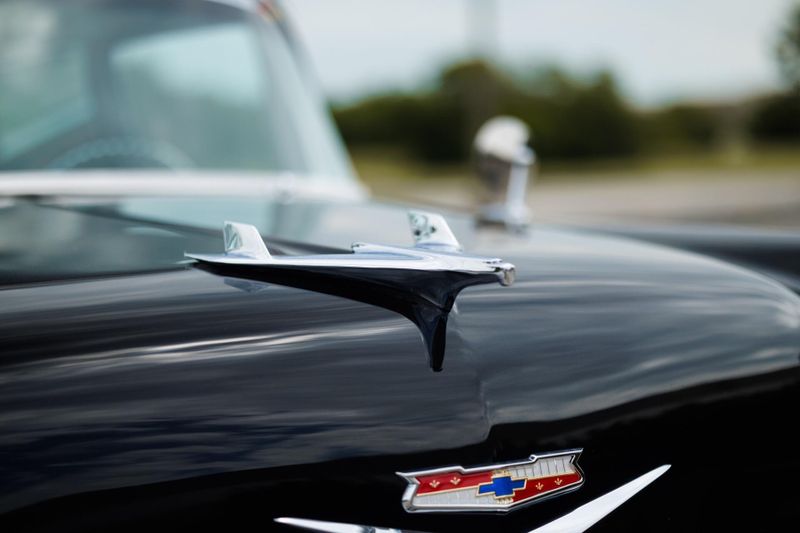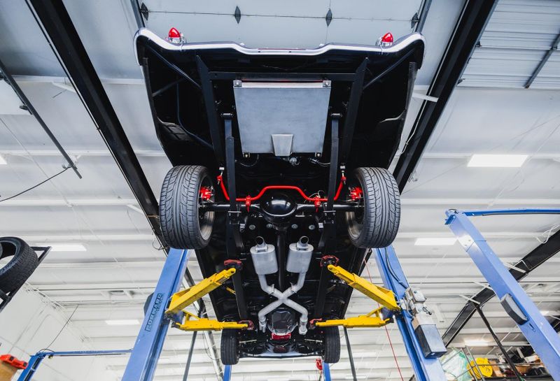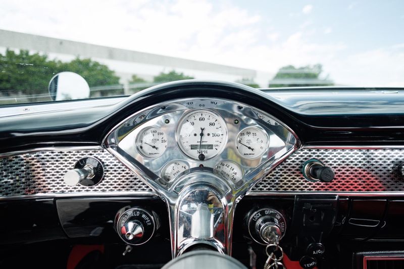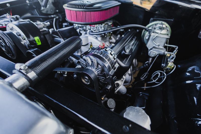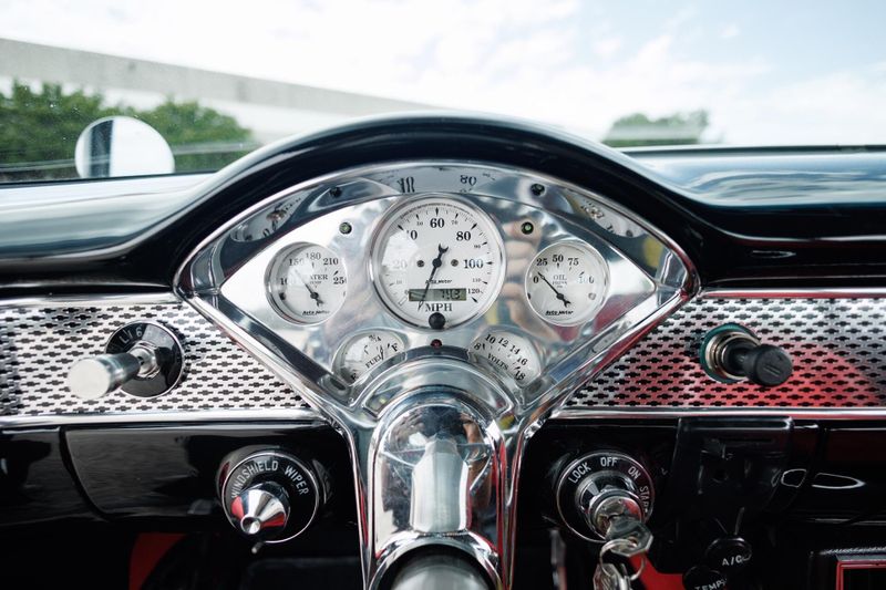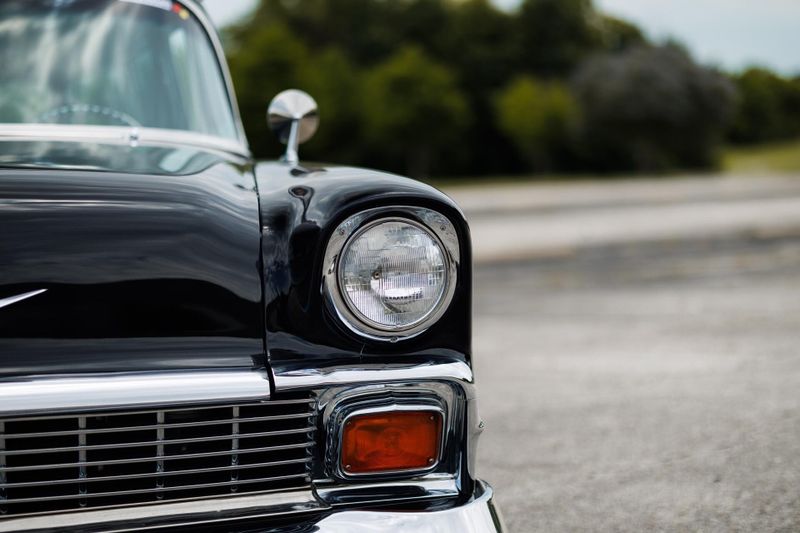 This custom 1956 Chevrolet 150 wagon underwent a professional frame-off restoration and has been driven 80 test miles. It is powered by a 7.4-liter V8 engine with Keith Black pistons, Merlin World heads, a Voodoo camshaft and roller rockers. The engine is mated to an automatic transmission and a Currie posi-traction rear end with 3.70 gearing. The frame-off restoration included new brake lines, a new fuel system and a complete wiring harness. The suspension features rack & pinion steering, QA1 adjustable coilovers, four-wheel power disc brakes, 2-inch drop spindles, and front and rear anti-sway bars. The body received multiple coats of Deep Black paint, new exterior glass, and restored or replaced trim and emblems. The interior includes modern 2+2 bucket seats, a full-length center console, custom door panels, power windows, air conditioning, a Flaming River tilt-steering column, modern gauges, a billet leather steering wheel and a professionally installed Bluetooth stereo system by Pioneer.