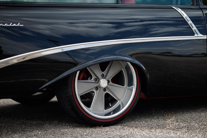 Earth Motorcars is excited to offer this amazing: 1956 Chevrolet 150 Custom Wagon Restomod. This is a complete rotisserie restored wagon, ready to show and drive anywhere! Complete Build book included.