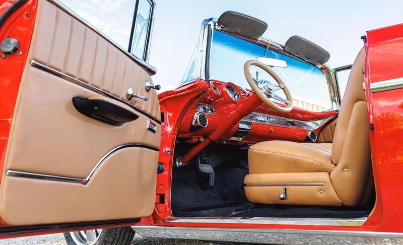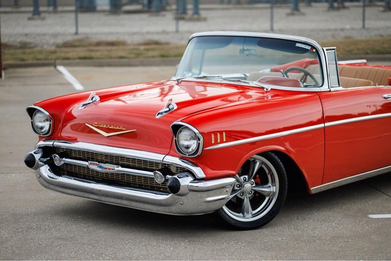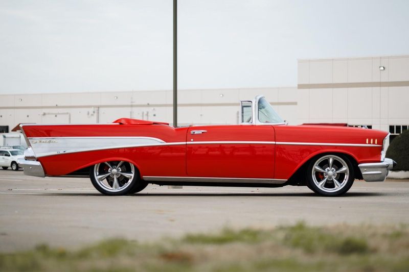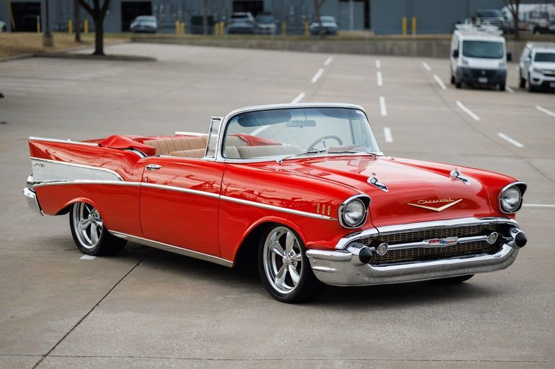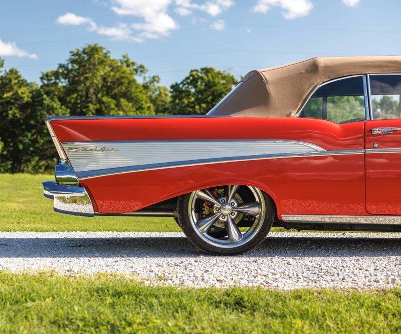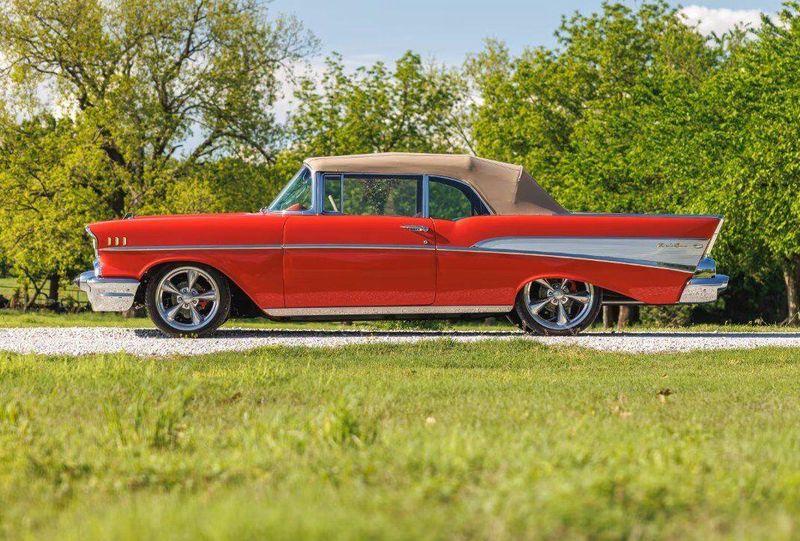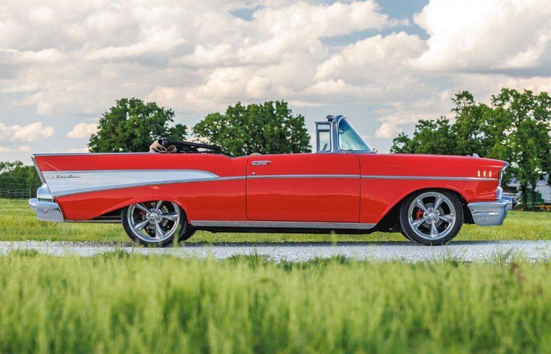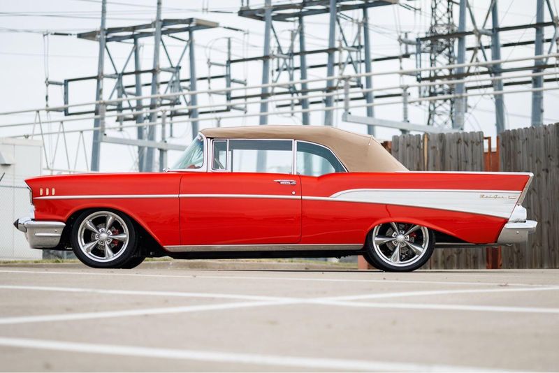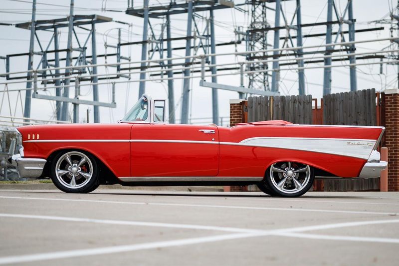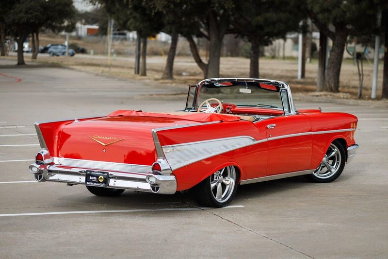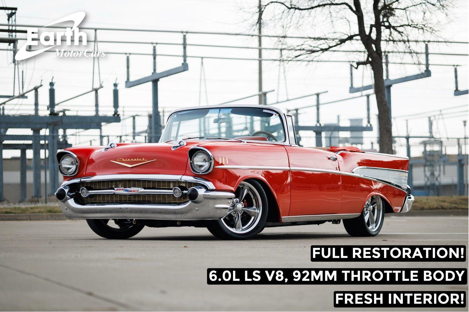 Earth MotorCars is proud to present this stunning: 1957 Chevrolet Bel Air Custom Convertible. This comprehensive build is sure to blow you away or have the wind do it with the top down!