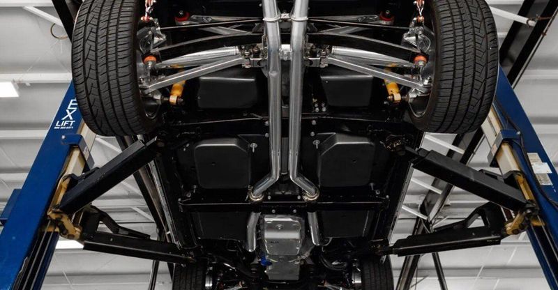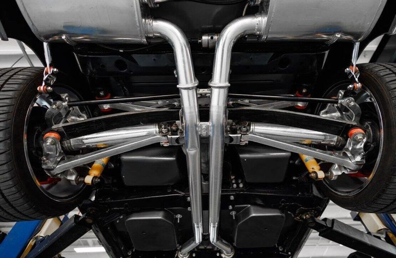A frame-off custom build by Jeff Hayes with 435 miles added to the odometer since completion, this 1963 split-window Corvette features far greater power than stock with a 6.2L/500 HP LS3 GM V-8 engine equipped with Holley electronic fuel injection and supported by a Be Cool aluminum radiator. A 6-speed automatic transmission delivers the Corvettes power.