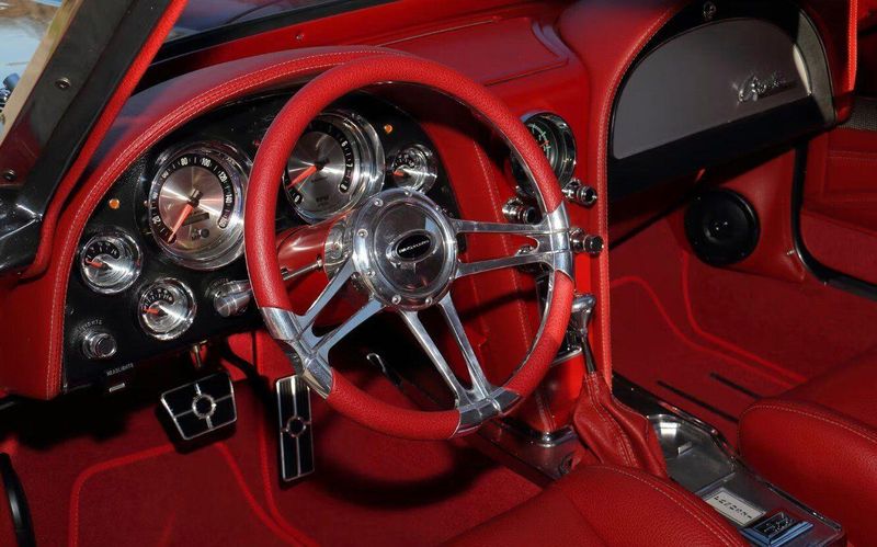 Drilled and ventilated 4-wheel disc brakes with a Wilwood master cylinder and Red 6-piston front calipers and Z06 brakes in the rear