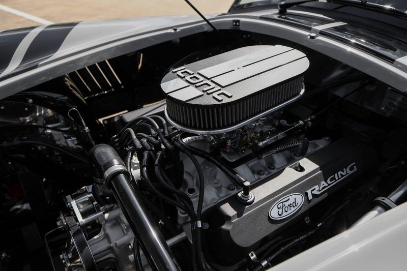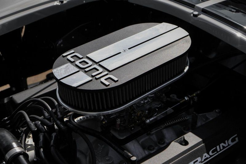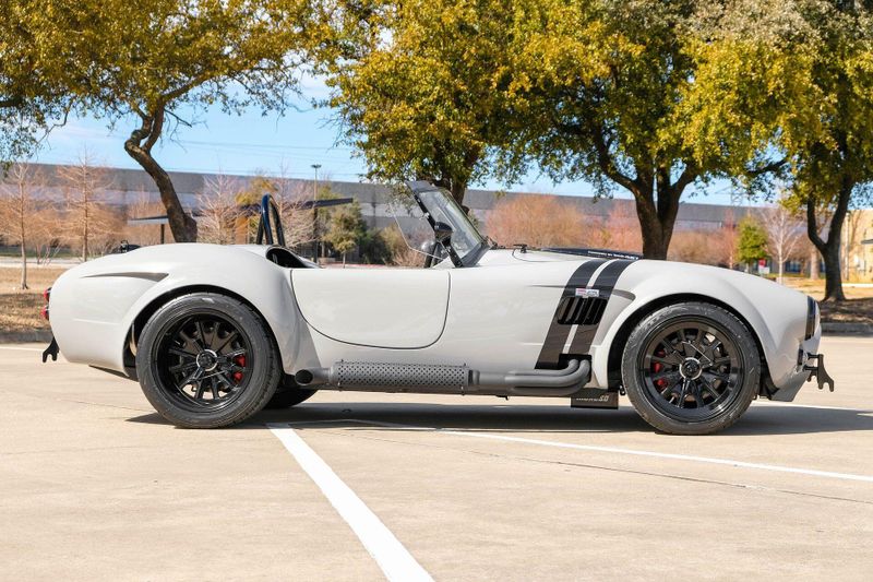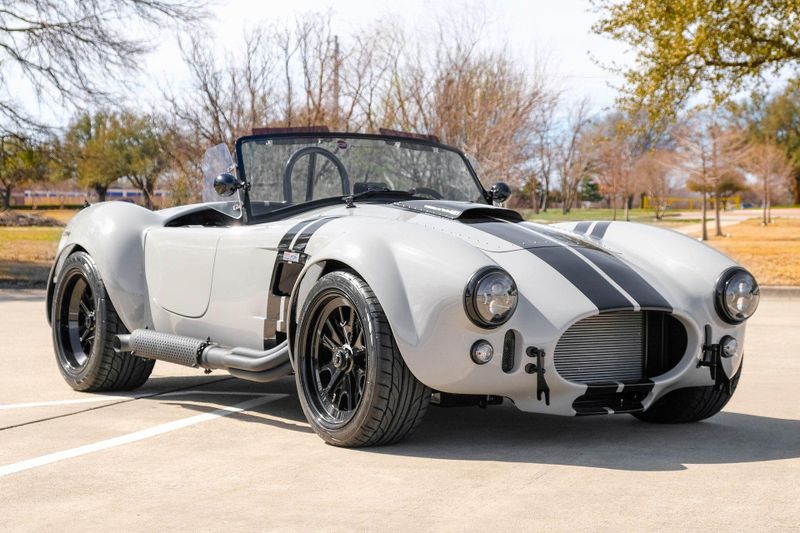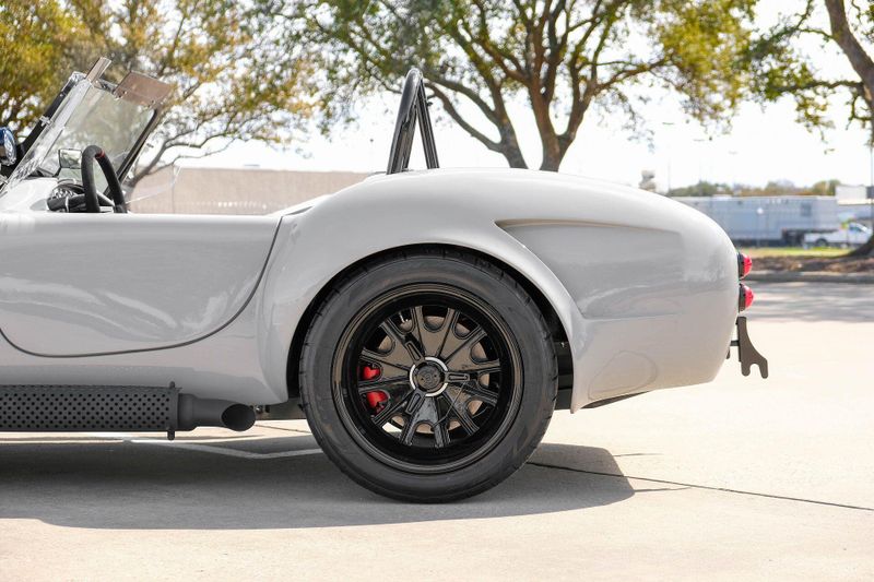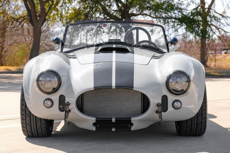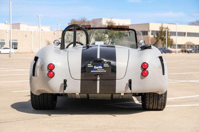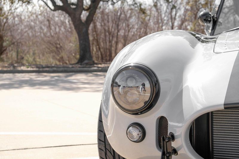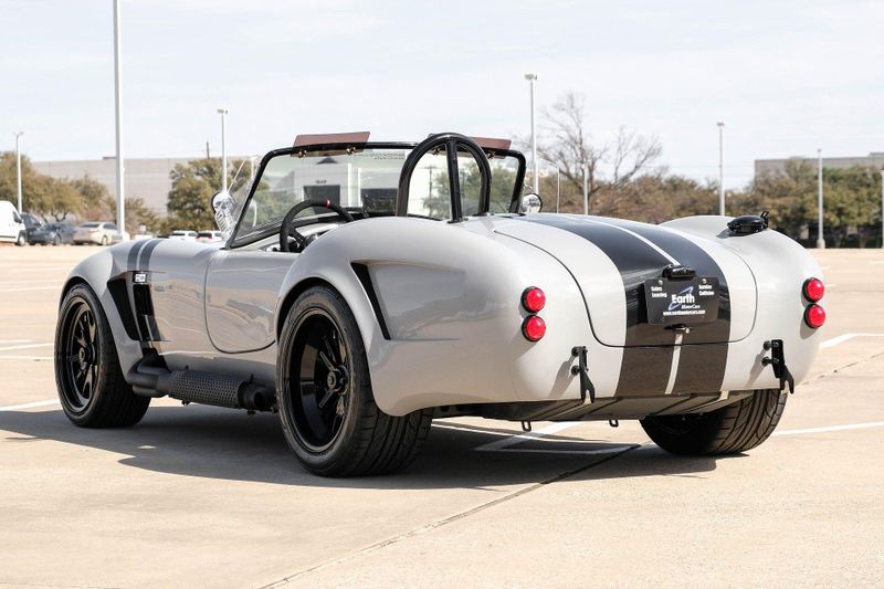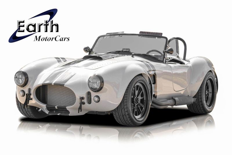 Earth MotorCars is proud to offer this 1965 Shelby Cobra by Backdraft Racing. This RT4 Black Edition Model is finished in Chalk paint along with black stripes and is fitted with a GT body for some added flare to the classic Cobra design. Under the hood of this Cobra sits a Iconic 427CI V8 pushing out an estimated 500hp. The427 V8 is decked out with a Holley carburetor, MSD ignition, Edelbrock intake, forged crank & pistons, & a hydraulic roller valvetrain. Power is sent to the rear wheels through a Tremec TKX 5-speed manual transmission and a Ford 8.8 IRS rear end with 3.55:1 gears.