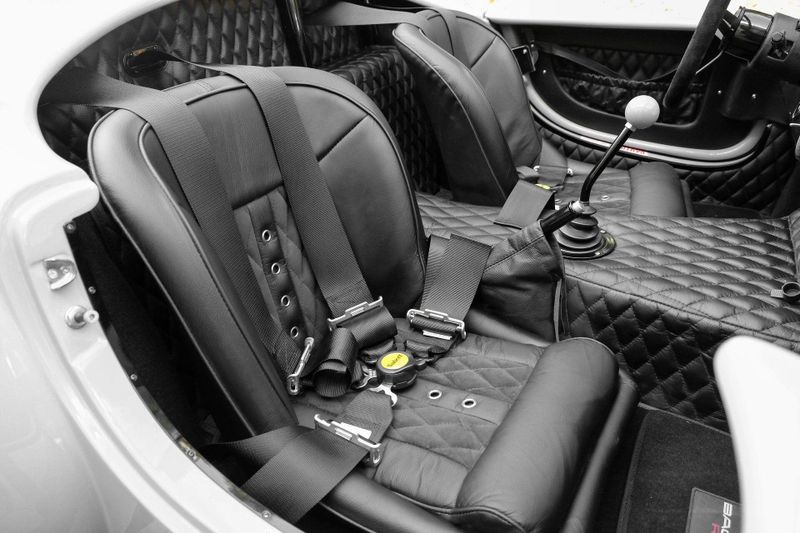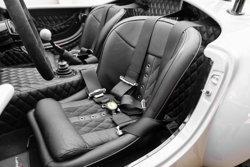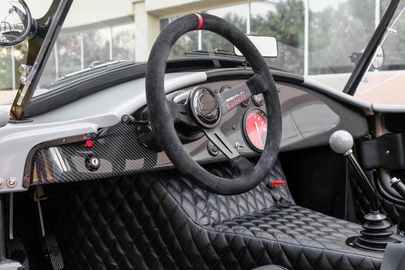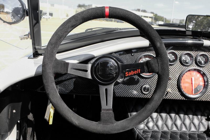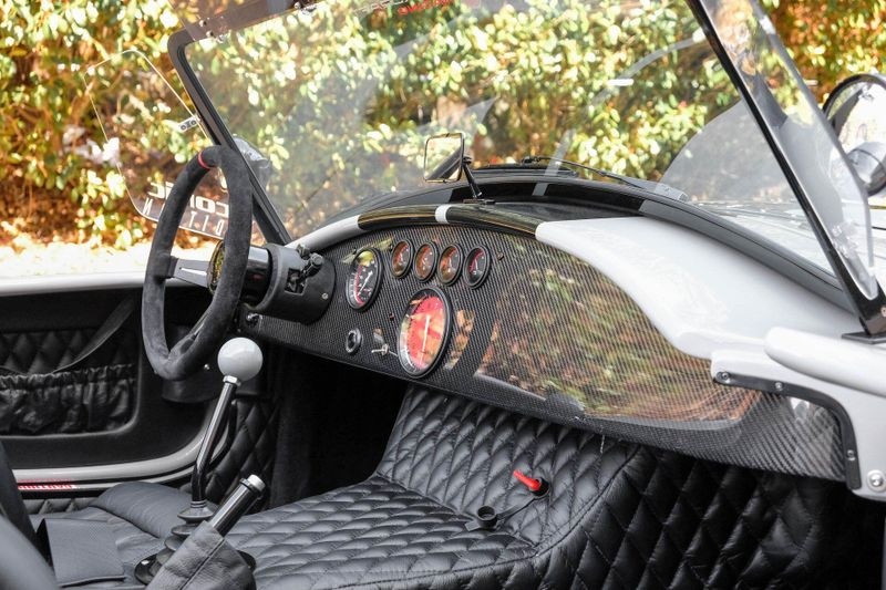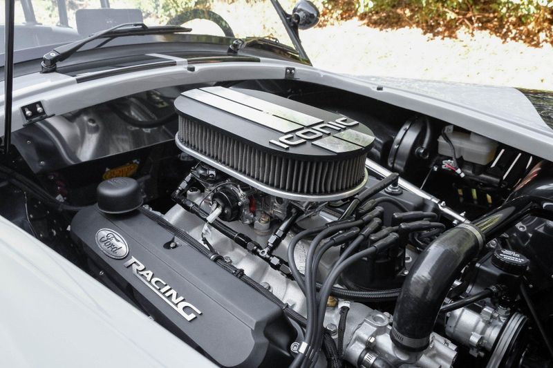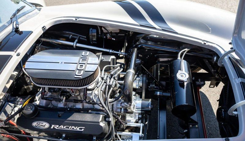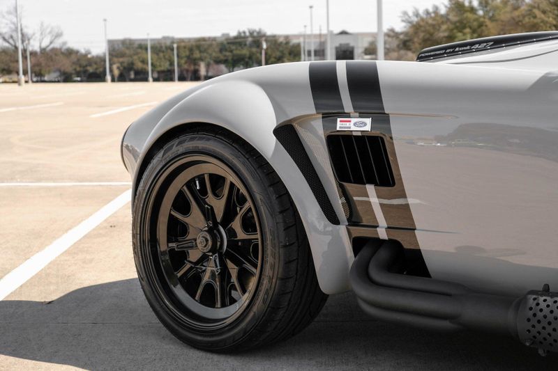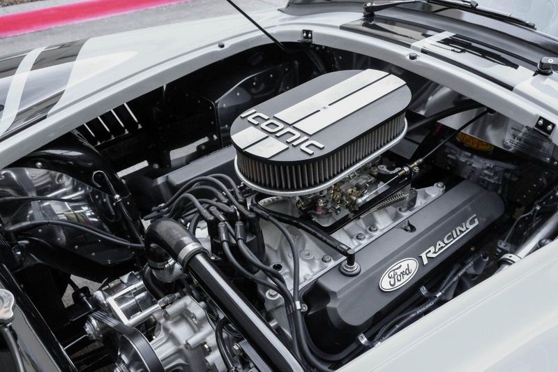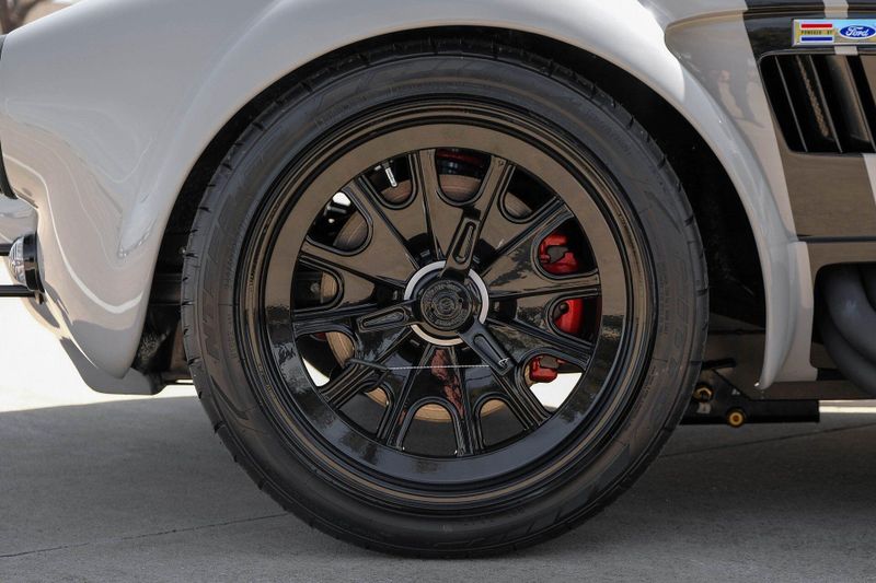 Earth MotorCars is proud to offer this 1965 Shelby Cobra by Backdraft Racing. This RT4 Black Edition Model is finished in Chalk paint along with black stripes and is fitted with a GT body for some added flare to the classic Cobra design. Under the hood of this Cobra sits a Iconic 427CI V8 pushing out an estimated 500hp. The427 V8 is decked out with a Holley carburetor, MSD ignition, Edelbrock intake, forged crank & pistons, & a hydraulic roller valvetrain. Power is sent to the rear wheels through a Tremec TKX 5-speed manual transmission and a Ford 8.8 IRS rear end with 3.55:1 gears.