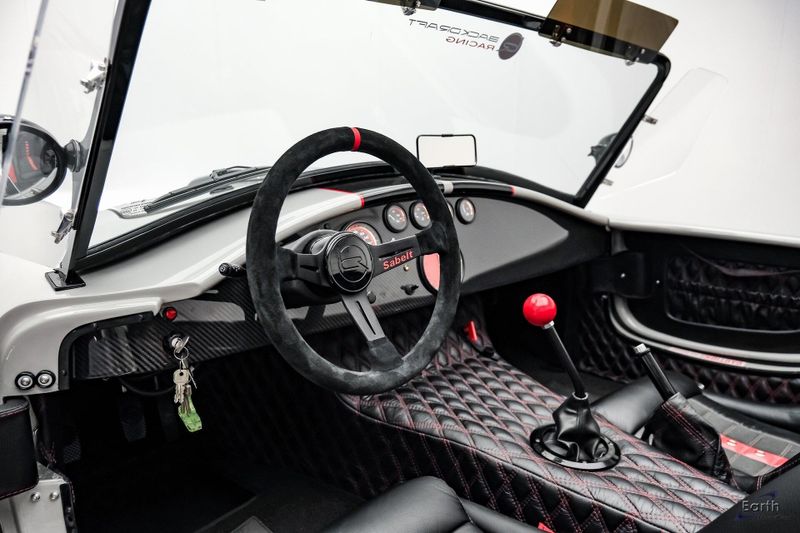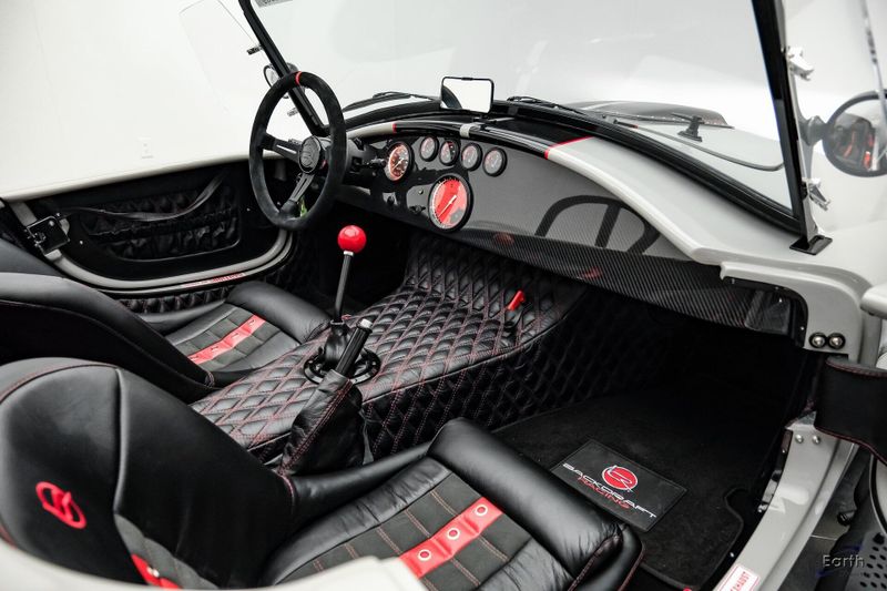 Earth MotorCars is Proud of offer this Amazing Black Pkg Backdraft Cobra RT4 Coyote Gen 4 that is Loaded with Options! This Stunning Cobra looks Awesome in Chalk paint with Black & Red Pinstripes, Black Side Stripes, Black Diamond Stitch Leather and Alcantara with Red Stitching & Seat Eyes! The Build Features the following options below: