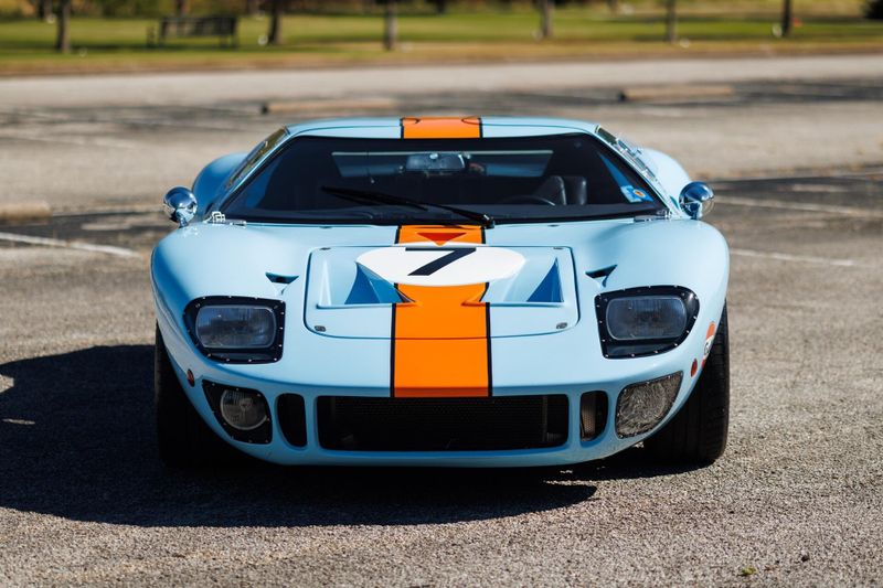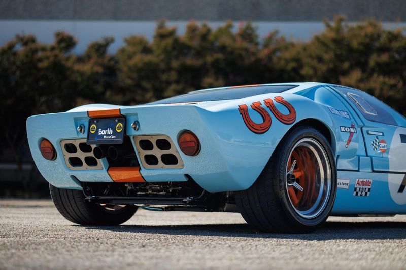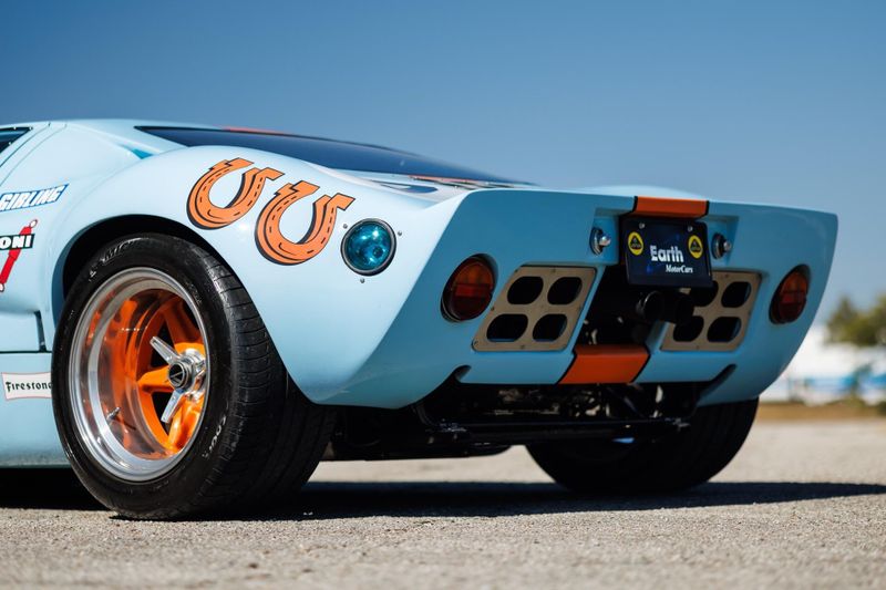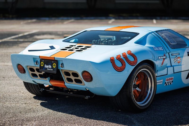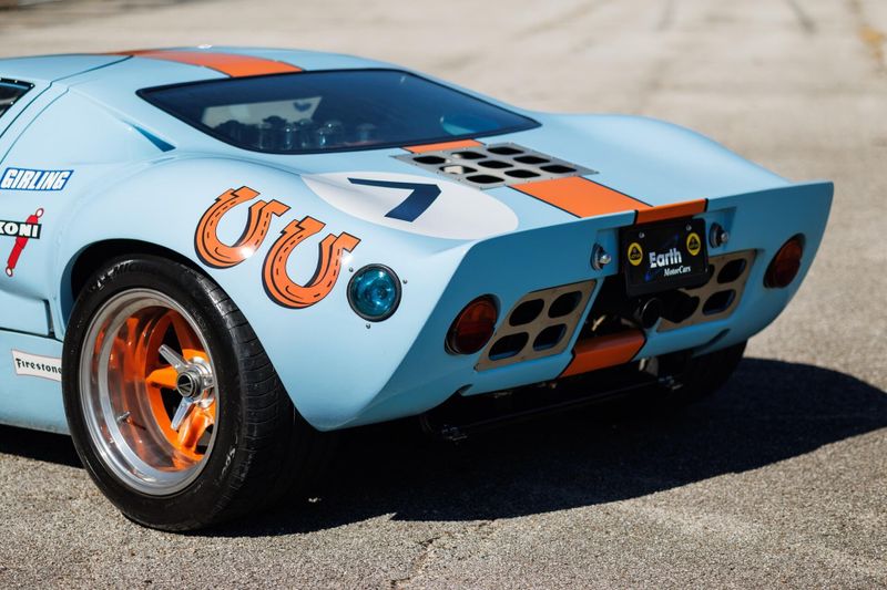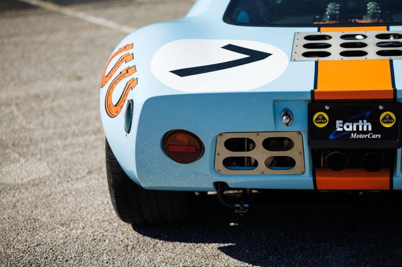 Earth Motorcars is excited to offer this amazing: 1966 Ford GT 40 CAV Gulf Edition. This stunning 1966 Ford GT40 CAV is a modern replica of the legendary 1966 Ford GT40, built by Cape Advanced Vehicles (CAV) in South Africa. These replicas offer the look and feel of the original with modern technology, featuring a powerful engine (427 c.i. V8), a ZF 5-speed manual transmission, and amenities like air conditioning and modern safety features like fire suppression systems. They are a more accessible alternative to an original GT40, which would cost millions of dollars.