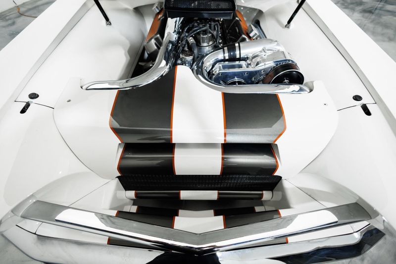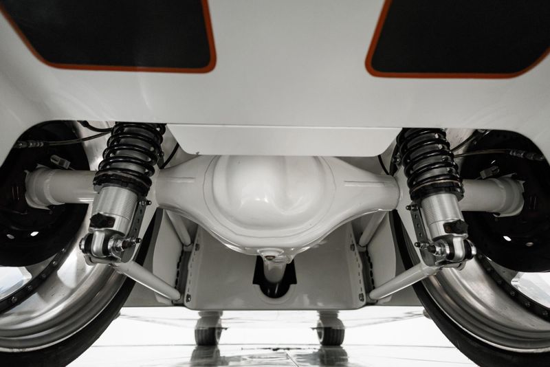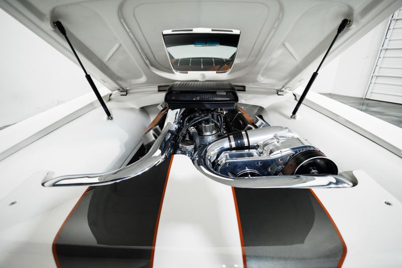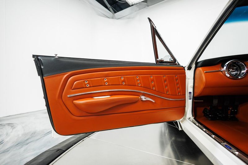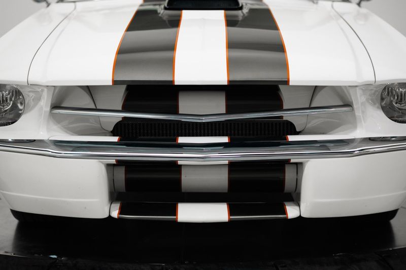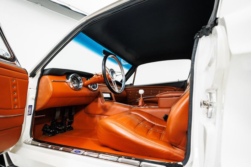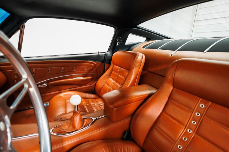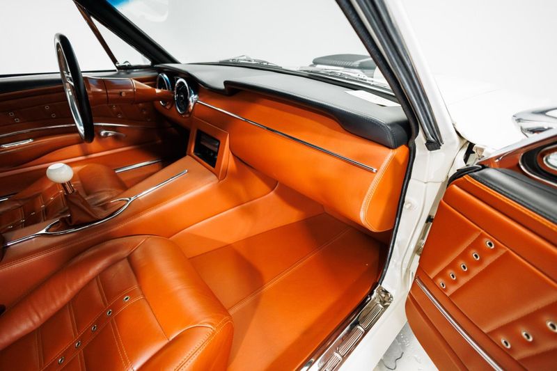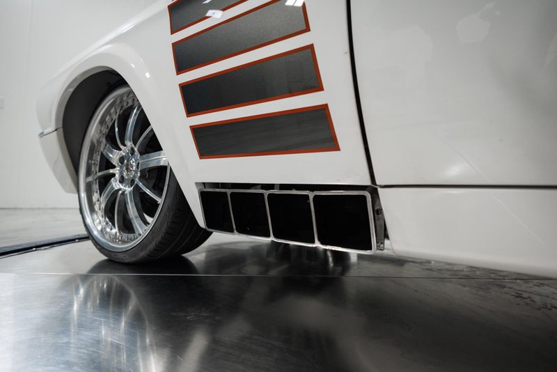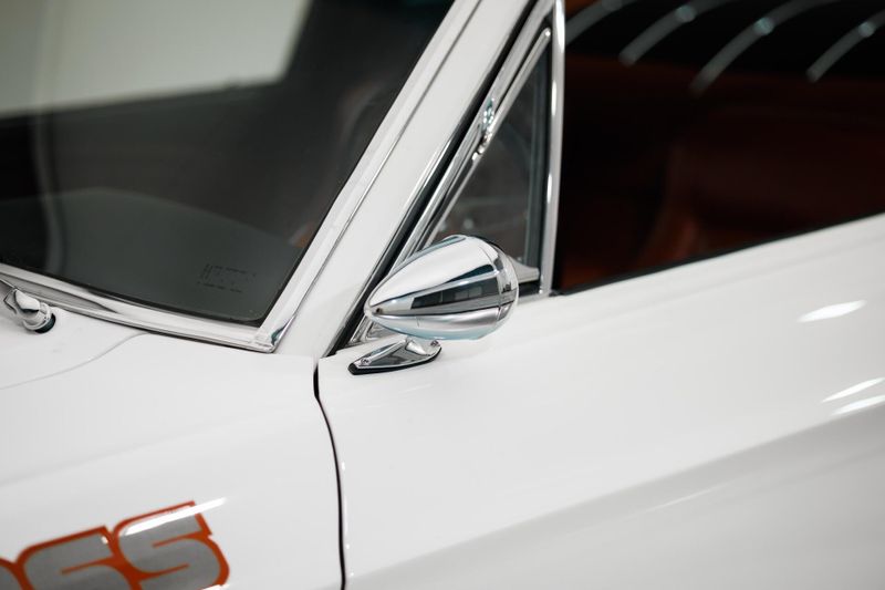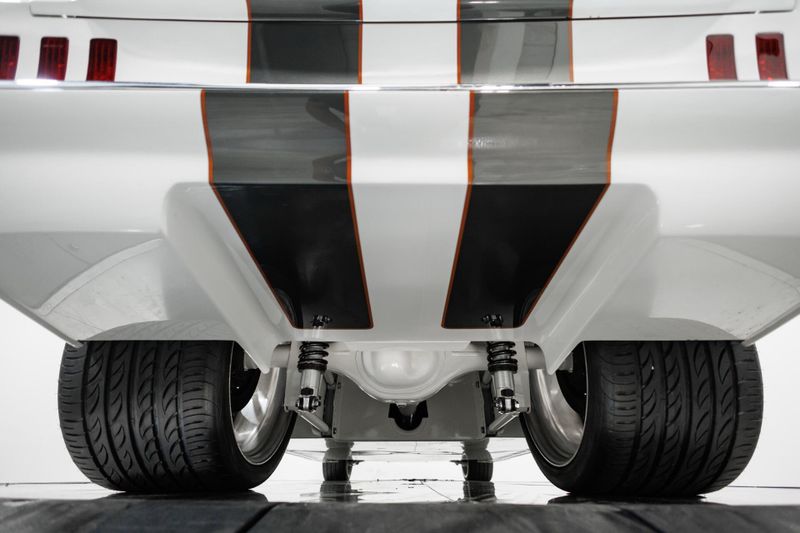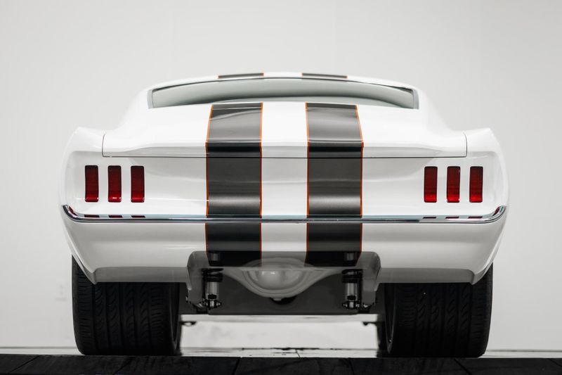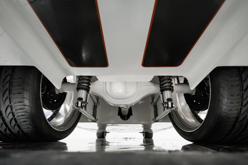 'The Boss' 1967 Ford Mustang fastback was built by Kindig-It Design's Dave Kindig and crew. The build is complete with the use of an Art Morrison custom frame covered by a full belly pan. It has a narrowed Ford 9' rear end to fit the massive 24' Intro wheels in the rear of the car, while up front 20' Intros are nestled by the functional Zoomie exhaust. The exterior is painted in Porsche Carrera White with custom graphics. Metalwork underneath the paint includes a custom stretched hood, with a grille bar floating above the modified front bumpers and air splitter. The rear section of The Boss features enlarged and raised wheel wells, a dovetail trunk lid, flush-mounted taillights and a silvered chrome bumper. Kindig-It smooth door handles give you access into the full custom leather interior done with Basketball Orange and black leather throughout. Located inside is a JL Audio system, Vintage Air, custom gauges and power windows. Under the hood is an extensive amount of custom sheet metal surrounding an ATI Procharged Ford 427ci V8 engine producing 700hp backed by a Tremec 6-speed manual transmission. This fastback has been featured in numerous magazines all over the world, as well as featured on 'Hot Rod TV,' 'Car Crazy' and 'Bitchin' Rides.'