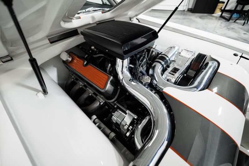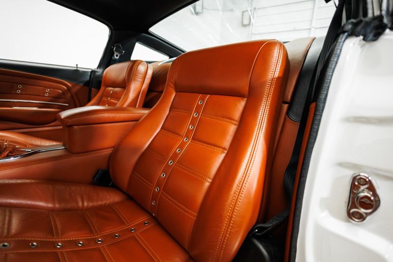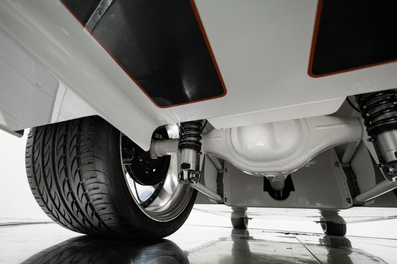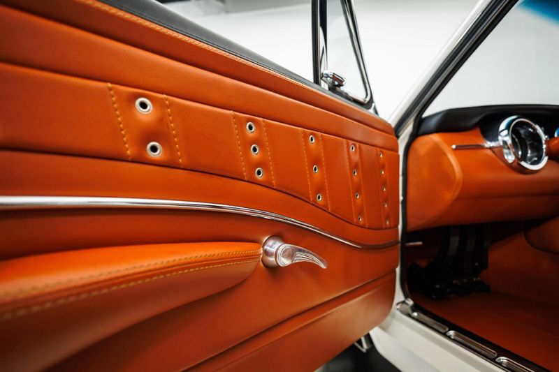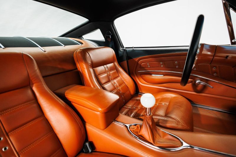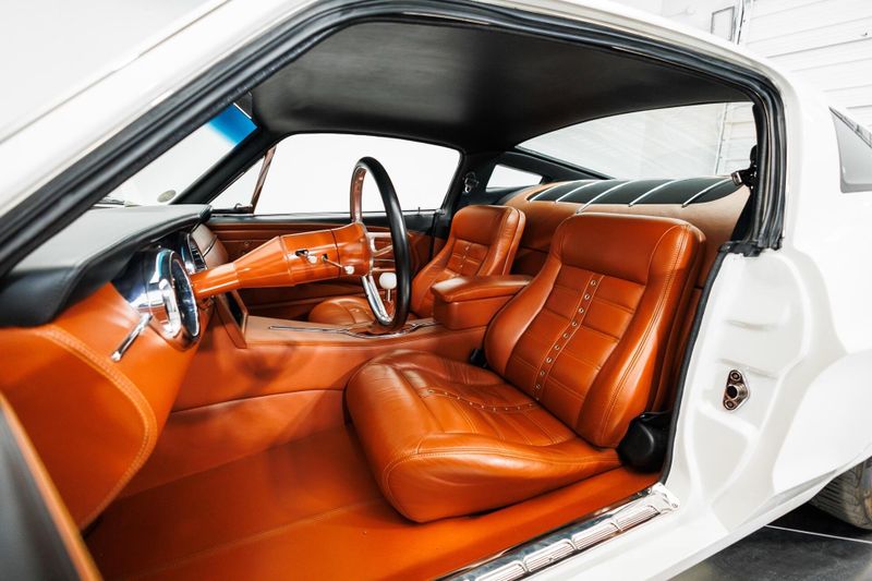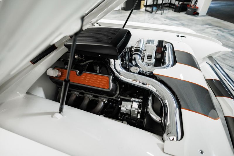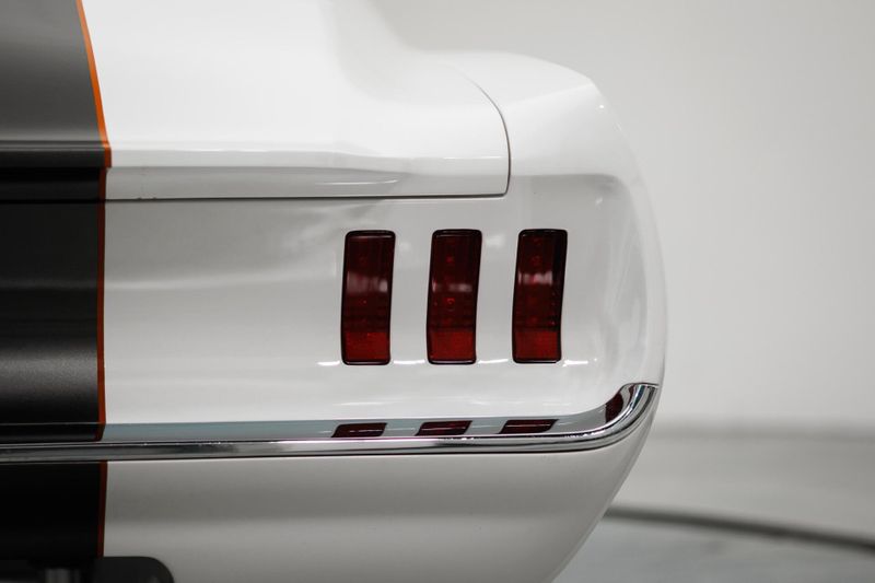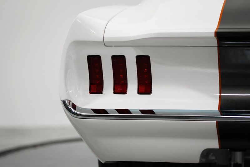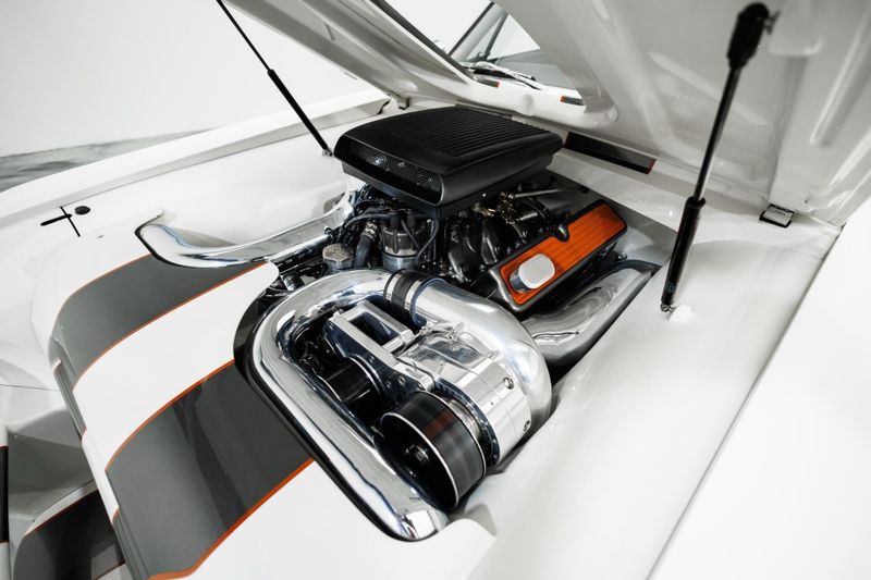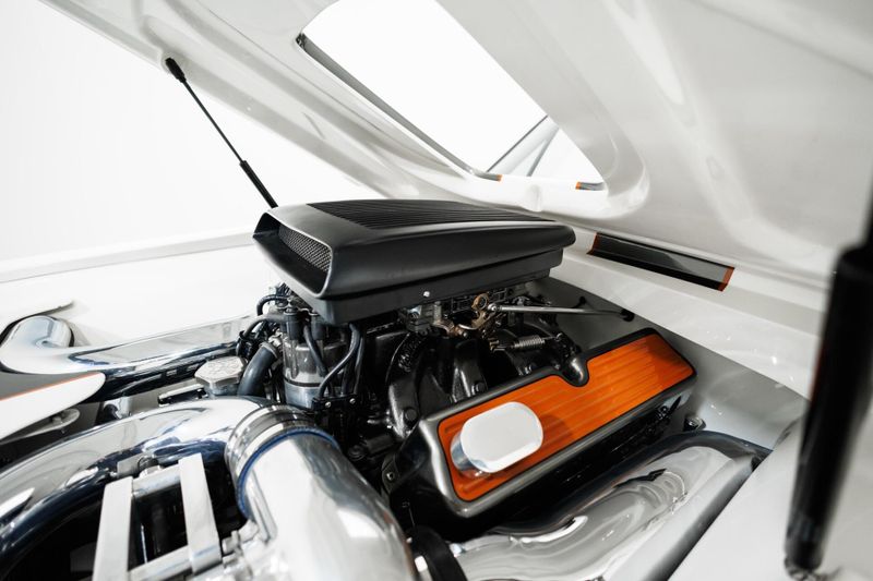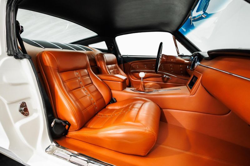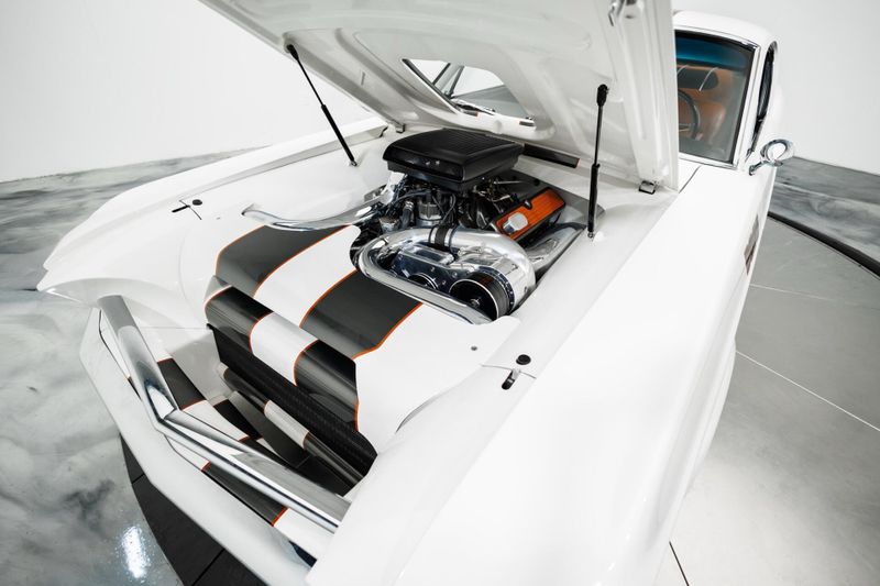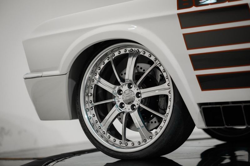 'The Boss' 1967 Ford Mustang fastback was built by Kindig-It Design's Dave Kindig and crew. The build is complete with the use of an Art Morrison custom frame covered by a full belly pan. It has a narrowed Ford 9' rear end to fit the massive 24' Intro wheels in the rear of the car, while up front 20' Intros are nestled by the functional Zoomie exhaust. The exterior is painted in Porsche Carrera White with custom graphics. Metalwork underneath the paint includes a custom stretched hood, with a grille bar floating above the modified front bumpers and air splitter. The rear section of The Boss features enlarged and raised wheel wells, a dovetail trunk lid, flush-mounted taillights and a silvered chrome bumper. Kindig-It smooth door handles give you access into the full custom leather interior done with Basketball Orange and black leather throughout. Located inside is a JL Audio system, Vintage Air, custom gauges and power windows. Under the hood is an extensive amount of custom sheet metal surrounding an ATI Procharged Ford 427ci V8 engine producing 700hp backed by a Tremec 6-speed manual transmission. This fastback has been featured in numerous magazines all over the world, as well as featured on 'Hot Rod TV,' 'Car Crazy' and 'Bitchin' Rides.'
