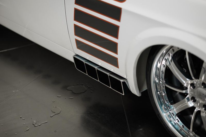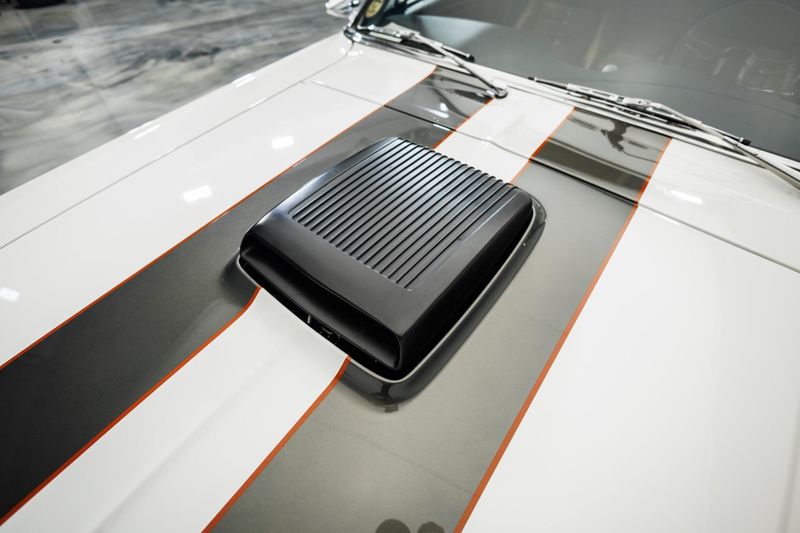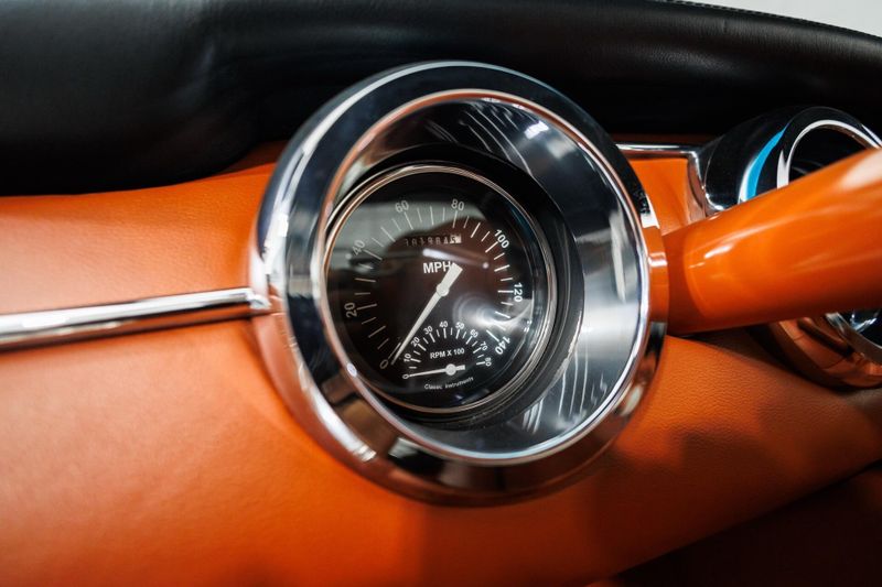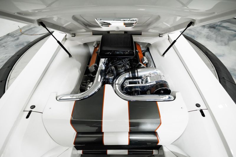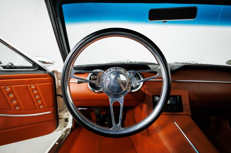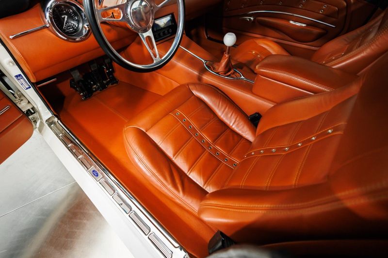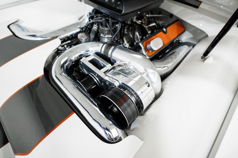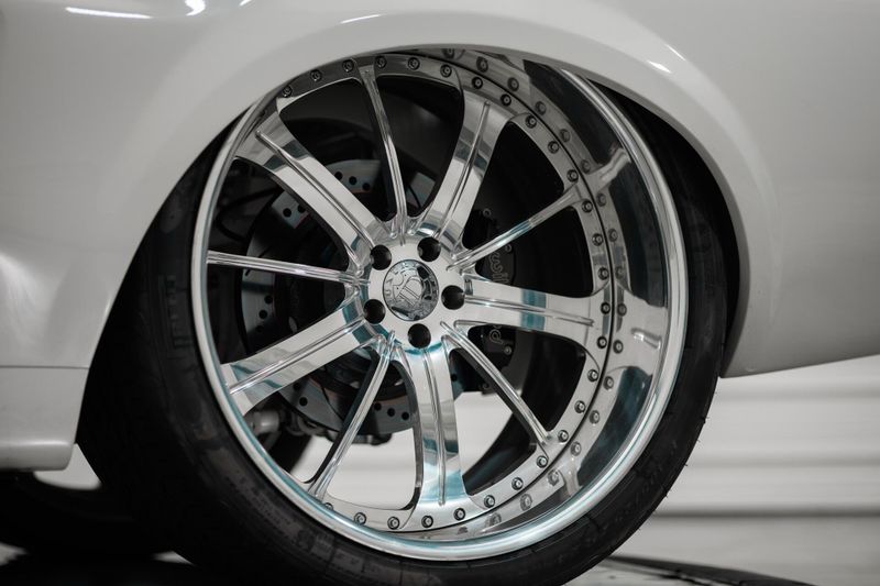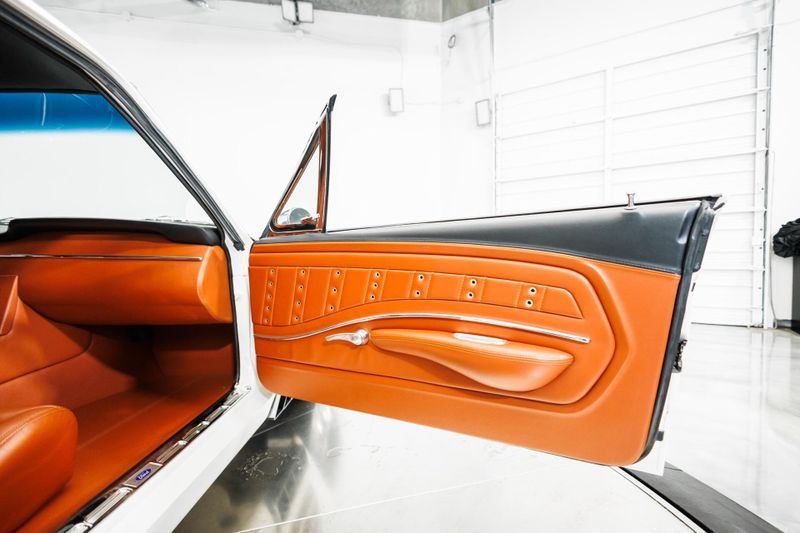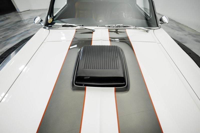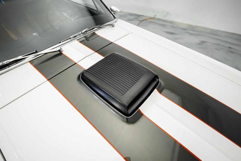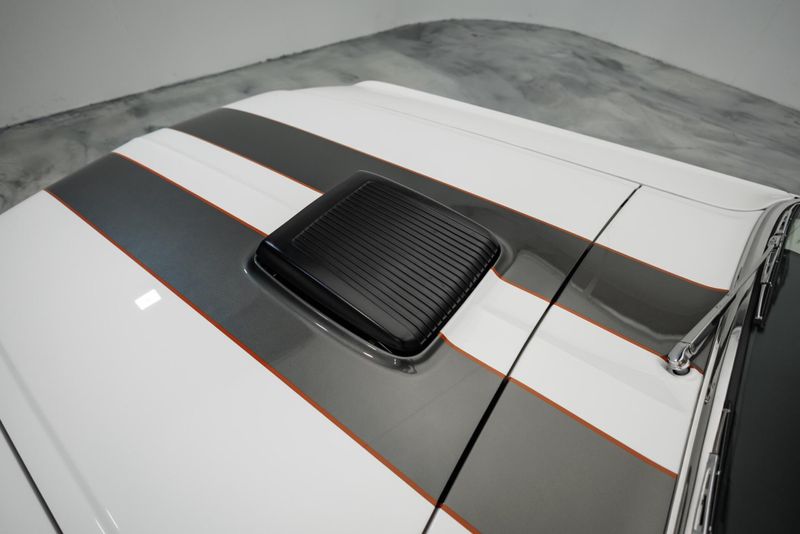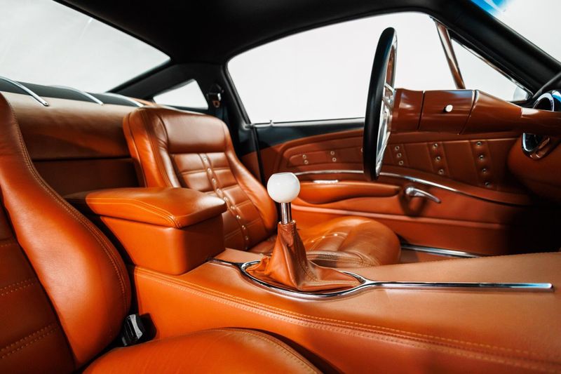 'The Boss' 1967 Ford Mustang fastback was built by Kindig-It Design's Dave Kindig and crew. The build is complete with the use of an Art Morrison custom frame covered by a full belly pan. It has a narrowed Ford 9' rear end to fit the massive 24' Intro wheels in the rear of the car, while up front 20' Intros are nestled by the functional Zoomie exhaust. The exterior is painted in Porsche Carrera White with custom graphics. Metalwork underneath the paint includes a custom stretched hood, with a grille bar floating above the modified front bumpers and air splitter. The rear section of The Boss features enlarged and raised wheel wells, a dovetail trunk lid, flush-mounted taillights and a silvered chrome bumper. Kindig-It smooth door handles give you access into the full custom leather interior done with Basketball Orange and black leather throughout. Located inside is a JL Audio system, Vintage Air, custom gauges and power windows. Under the hood is an extensive amount of custom sheet metal surrounding an ATI Procharged Ford 427ci V8 engine producing 700hp backed by a Tremec 6-speed manual transmission. This fastback has been featured in numerous magazines all over the world, as well as featured on 'Hot Rod TV,' 'Car Crazy' and 'Bitchin' Rides.'