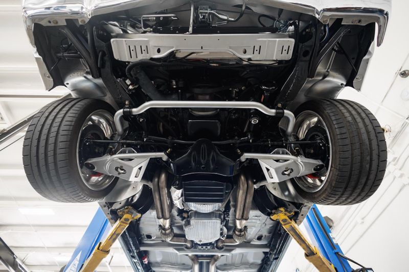 Power-assisted 4-wheel Wilwood disc brakes with drilled rotors.