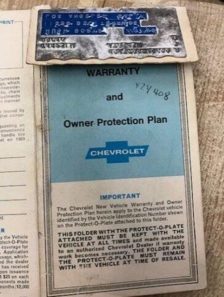 Original Protect-O-Plate and Dealer Options Sheet from 1969!