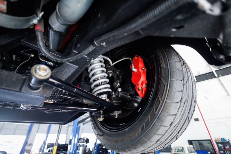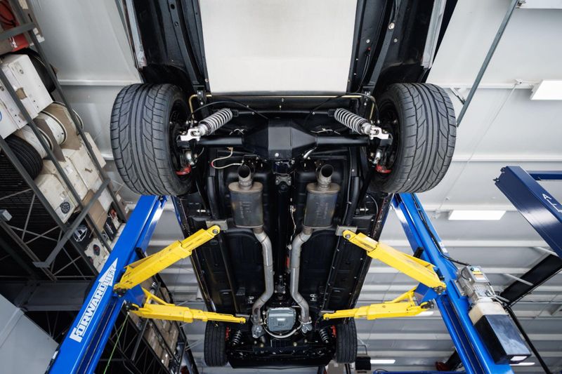 The chassis has been fully modernized with a four-link rear suspension, adjustable coilovers, and Wilwood brakes, delivering world-class handling and stopping power to match the engines output.
