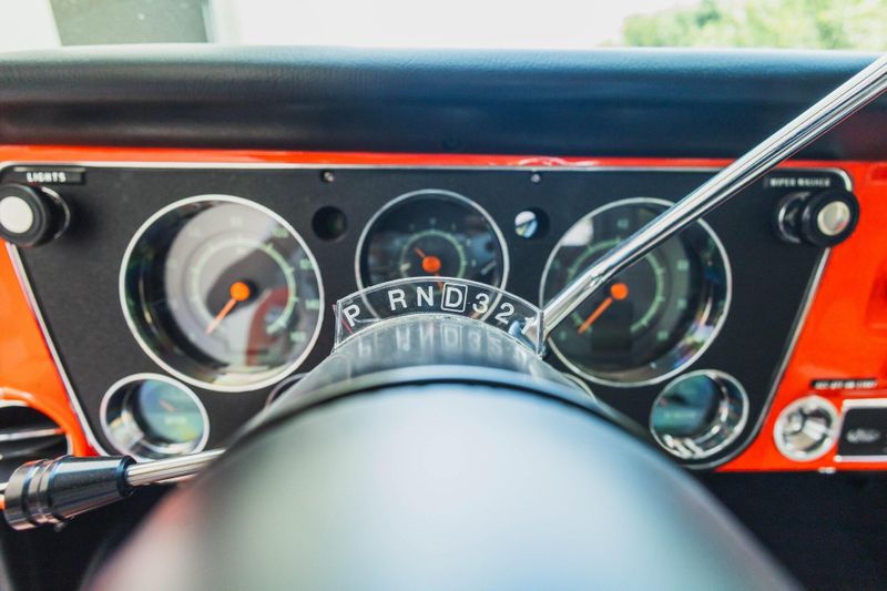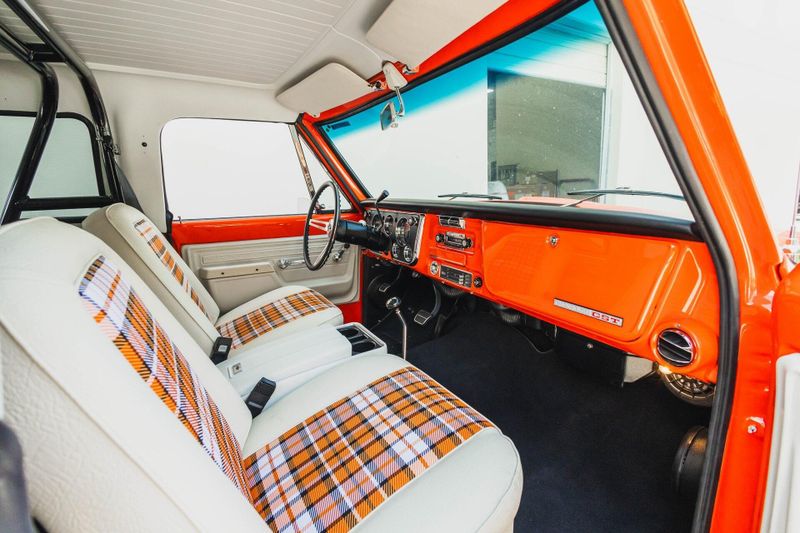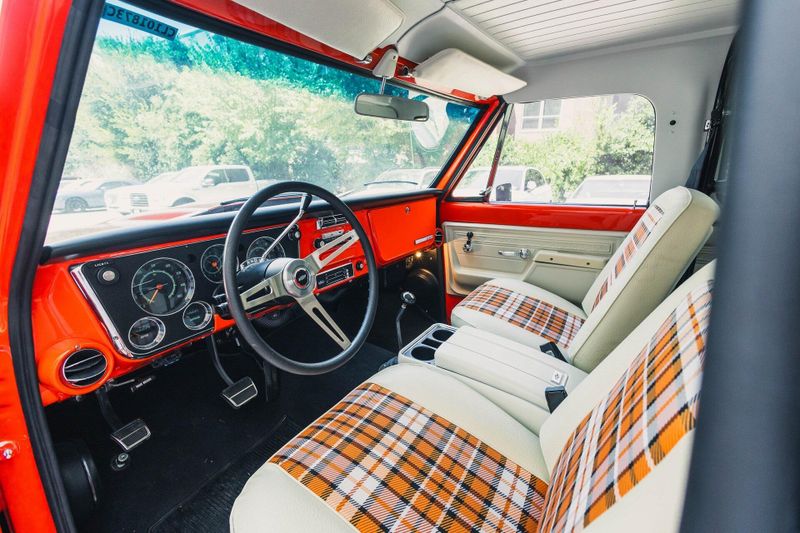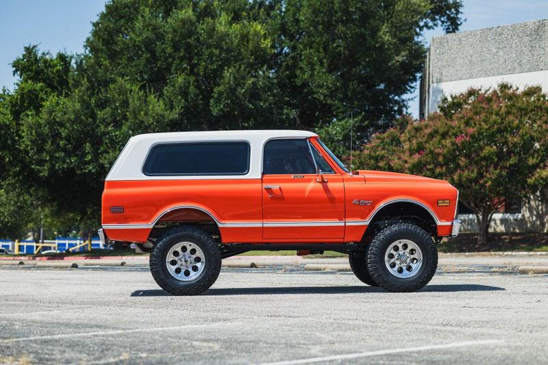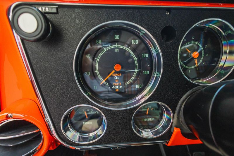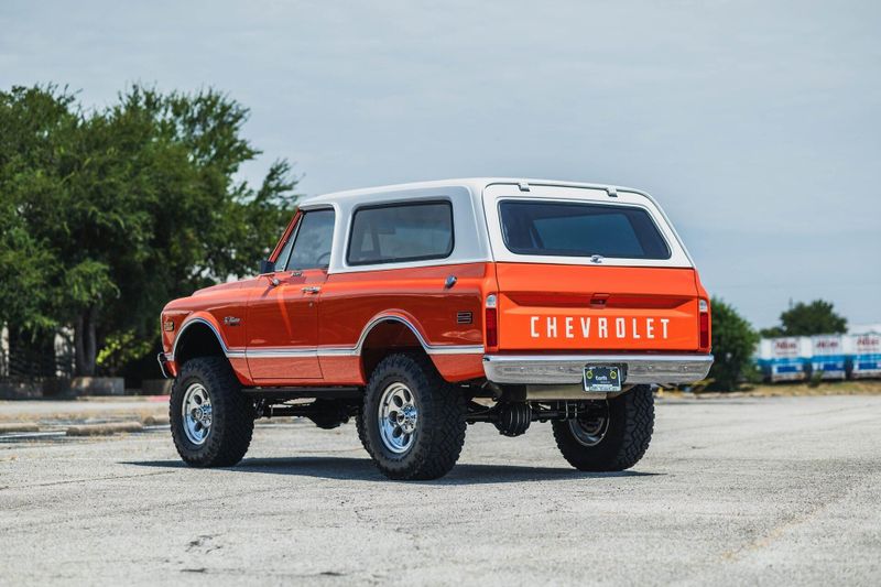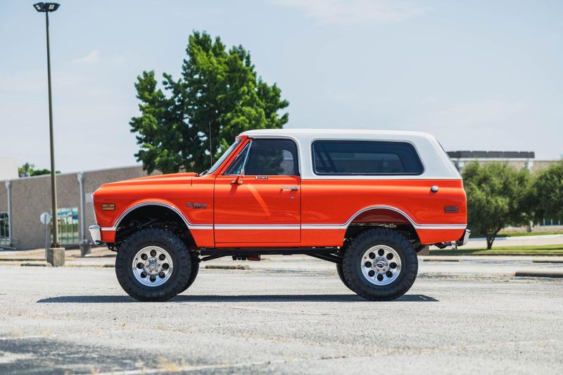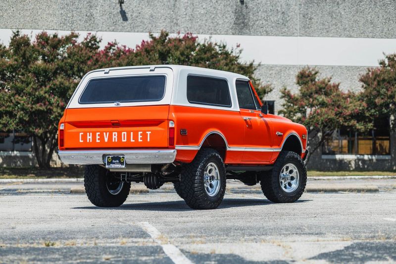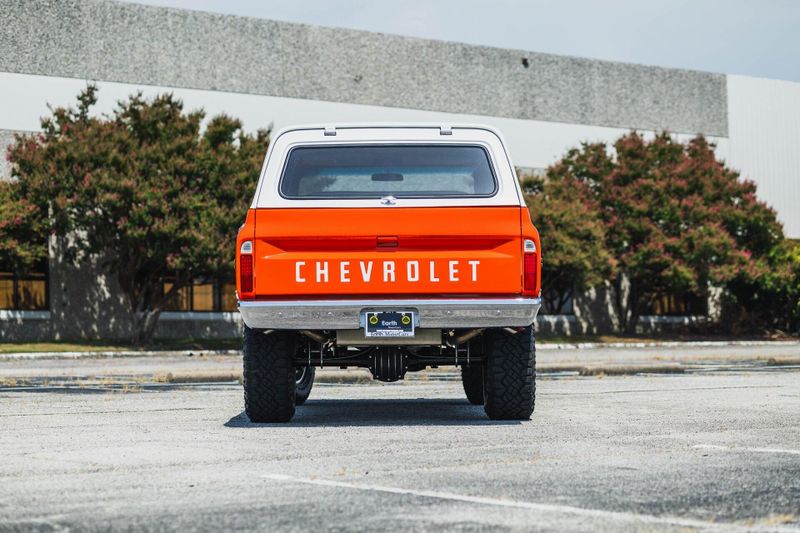 Earth Motorcars is excited to offer this amazing: 1970 Chevrolet K5 Blazer custom is the product of over 1,500 hours invested in a complete frame-off build. The body was stripped from top to bottom and all metalwork was completed and epoxy primed. U-Pol Raptor protective coating was applied to the floor. Dynamat insulation on the inside floor provides additional sound and heat control. The entire body, including the underside, is finished with AXALTA urethane paint. The frame, radiator support, inner fenders and axles are finished with a powder-coat. This Blazer is powered by a new GM LS3 430hp engine mated to a 4L75E automatic overdrive transmission with the original NP-205 transfer case. Upgrades include a stainless-steel exhaust system, complete with polished headers, a Holley Sniper intake and a polished front-runner system by Vintage Air. The engine is cooled by a DeWitts aluminum radiator. The fuel tank is stainless steel from Rick's Hot Rods and includes a new, original GM fuel pump. The vehicle was upgraded with NOS front and rear axles from GM, featuring disc brakes on the front axle and GM posi-traction on the rear axle. This Blazer rides on a 4-inch lift kit, complete with Fox shocks and all new leaf springs, with 11 leaves per spring for a softer ride. Power steps have been installed.