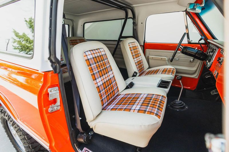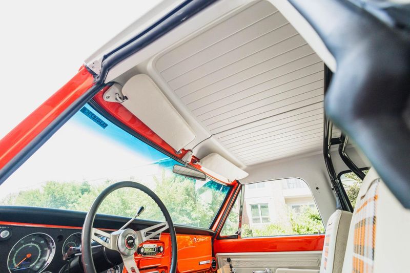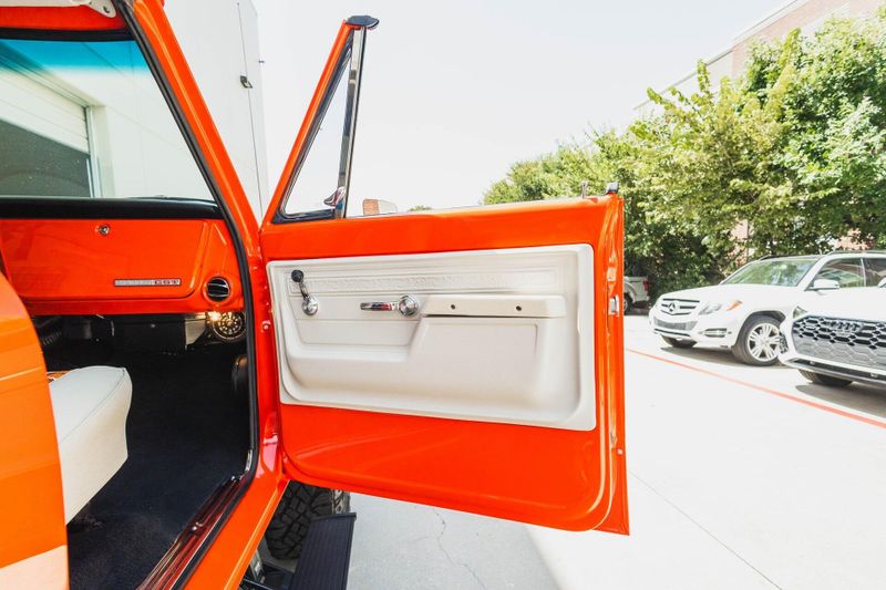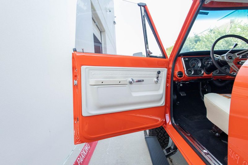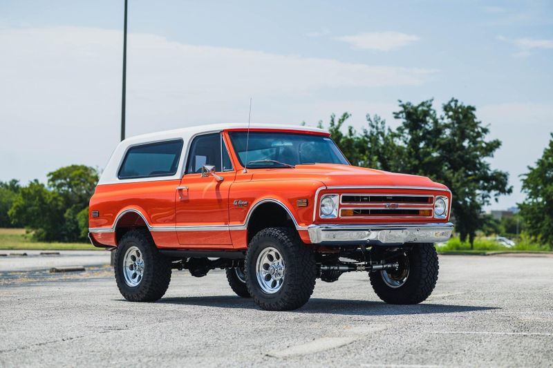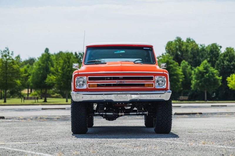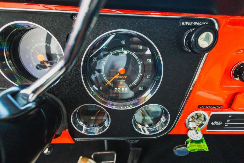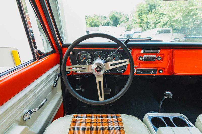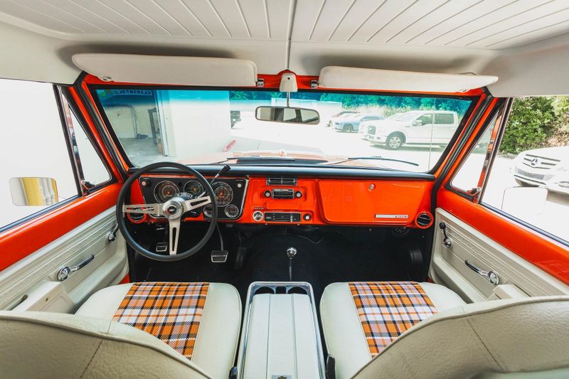 Earth Motorcars is excited to offer this amazing: 1970 Chevrolet K5 Blazer custom is the product of over 1,500 hours invested in a complete frame-off build. The body was stripped from top to bottom and all metalwork was completed and epoxy primed. U-Pol Raptor protective coating was applied to the floor. Dynamat insulation on the inside floor provides additional sound and heat control. The entire body, including the underside, is finished with AXALTA urethane paint. The frame, radiator support, inner fenders and axles are finished with a powder-coat. This Blazer is powered by a new GM LS3 430hp engine mated to a 4L75E automatic overdrive transmission with the original NP-205 transfer case. Upgrades include a stainless-steel exhaust system, complete with polished headers, a Holley Sniper intake and a polished front-runner system by Vintage Air. The engine is cooled by a DeWitts aluminum radiator. The fuel tank is stainless steel from Rick's Hot Rods and includes a new, original GM fuel pump. The vehicle was upgraded with NOS front and rear axles from GM, featuring disc brakes on the front axle and GM posi-traction on the rear axle. This Blazer rides on a 4-inch lift kit, complete with Fox shocks and all new leaf springs, with 11 leaves per spring for a softer ride. Power steps have been installed.