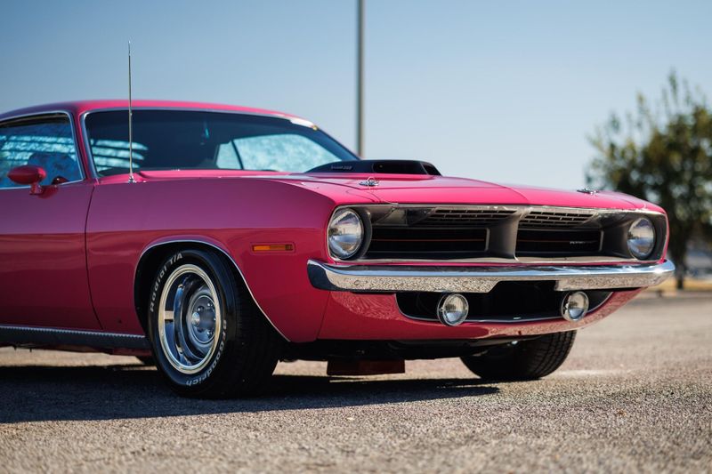 Earth MotorCars is proud to present this: 1970 Plymouth 'Cuda in its rare Moulin Rouge (FM3) color. Paired with a 440/493 stroker V8 engine producing 518hp, this cuda is one to look out for! Absolute HEAD TURNER! FACTORY CUDA!!!!!!!!!!
