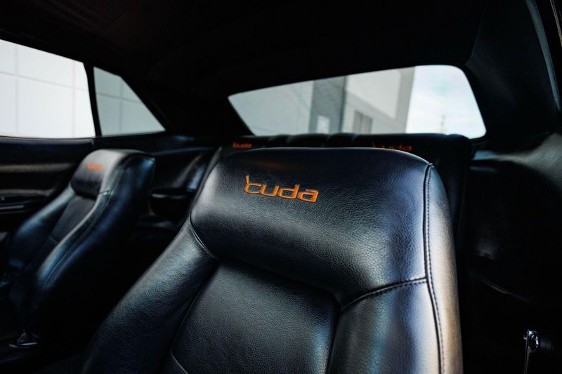 Custom interior with Cuda logos on seats and upholstered center console