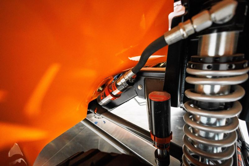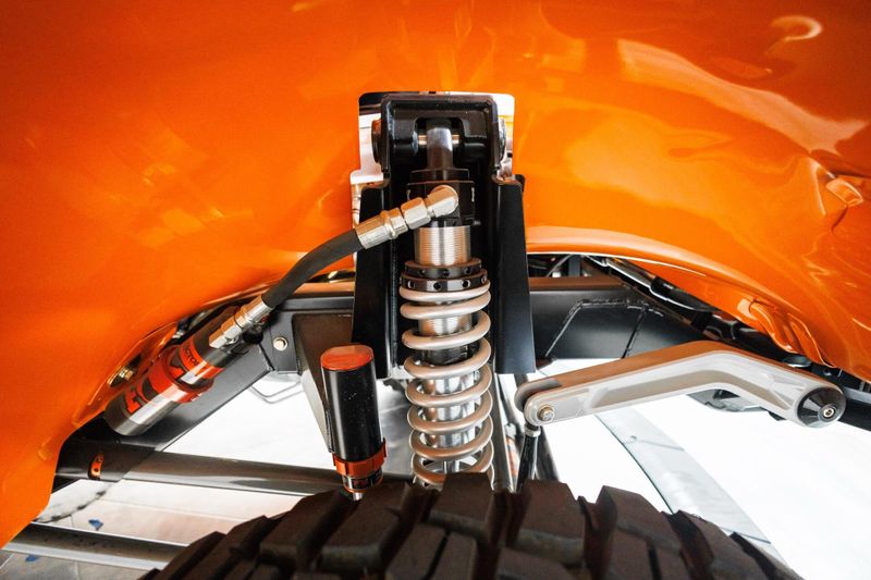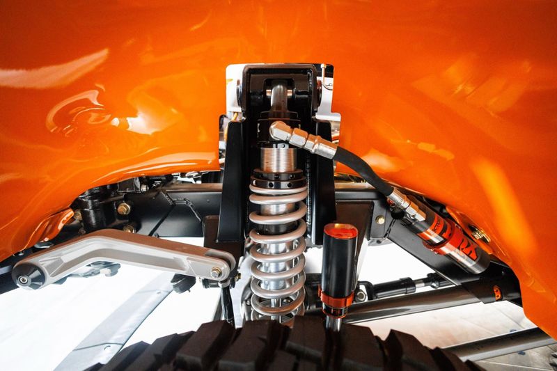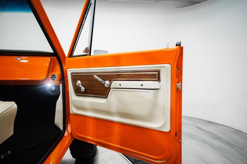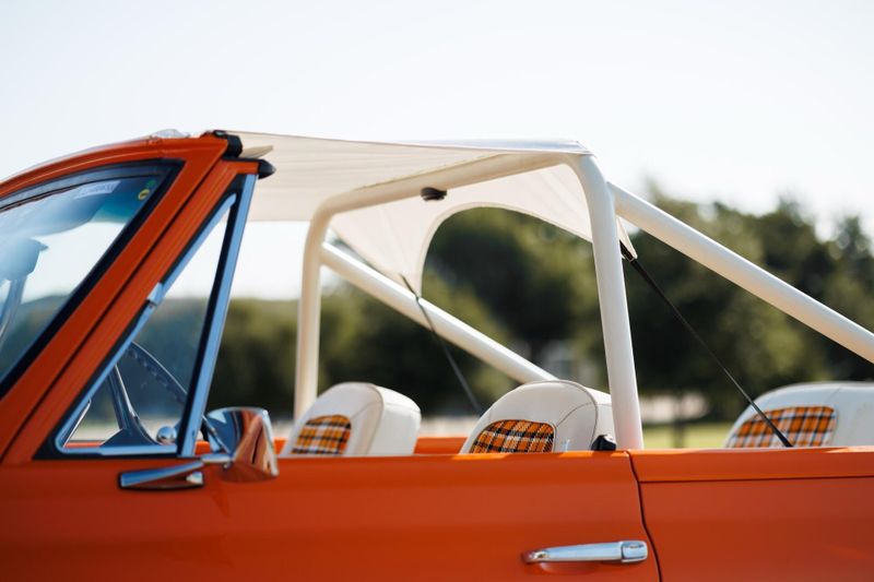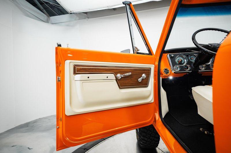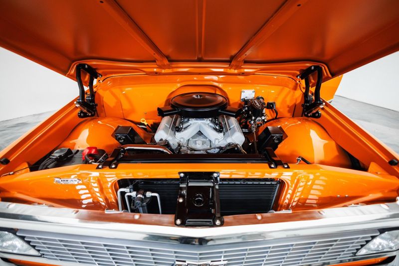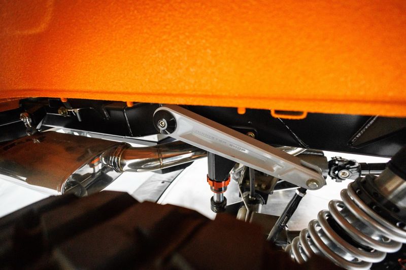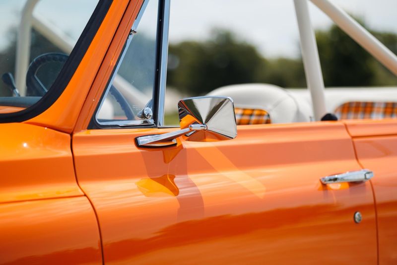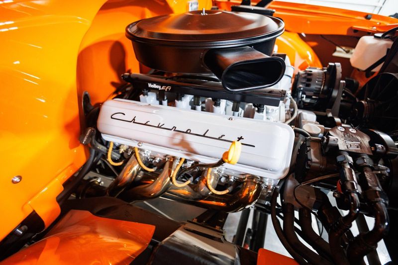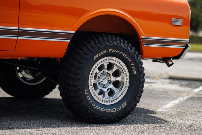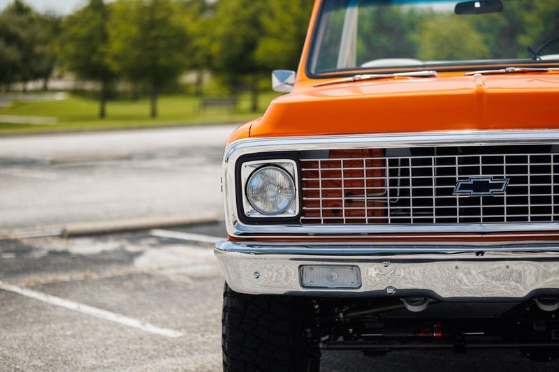 Nicknamed ''Renn'' and riding on a Roadster Shop RS4 chassis, this Hogan Built 1972 Chevrolet K5 Blazer is powered by a 525hp 6.2-liter LS3 engine backed by a Hughes 4L80 4-speed automatic transmission. Under the hood features an Avalanche-colored engine that has been upfitted with a Holley intake manifold, 14-inch air cleaner and vintage Chevrolet valve covers with hidden coil packs. Keeping the drivability a top priority, a CPP hydro-boost system was installed, along with a DeWitts radiator and a CVF front drive system. The Roadster Shop RS4 chassis features upgraded 13-inch Baer brakes, oversized sway bar links, triangulated front and rear 4-links, Currie high-pinion axles with 4.56 gears, 20-way adjustable Fox 2.0 coilovers, Fox hydraulic bump stops and a 24-way adjustable Fox steering stabilizer. Dispersing the power through the chassis is a twin-stick Atlas transfer case. A 3-inch fully polished stainless-steel exhaust has been fabricated and completely TIG-welded utilizing V-band clamps and four MagnaFlow mufflers. Before marrying the '72 K5 body to the chassis, the body was completely sandblasted, metalworked and bodyworked and shows the result of a concours-worthy refinish shining bright in Omaha Orange.