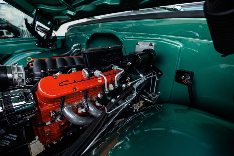 DeWitts aluminum 4-core radiator with dual electric cooling fans and polished radiator hoses