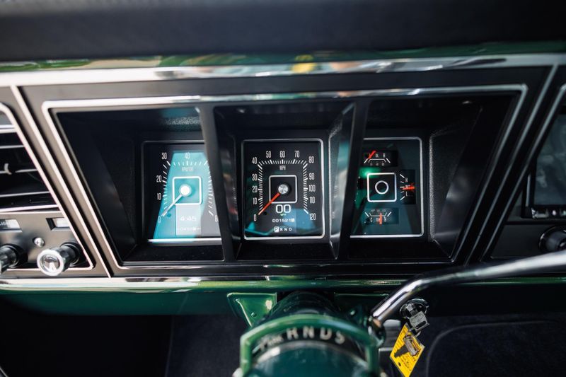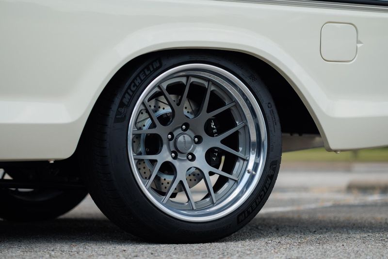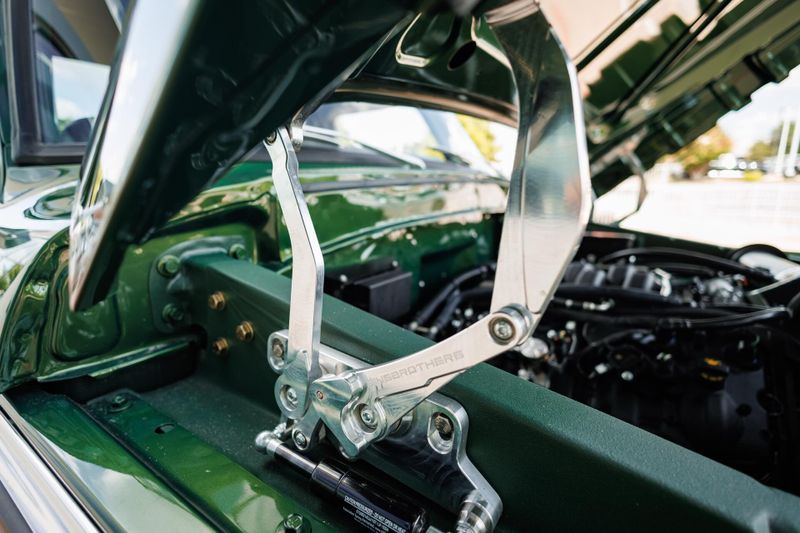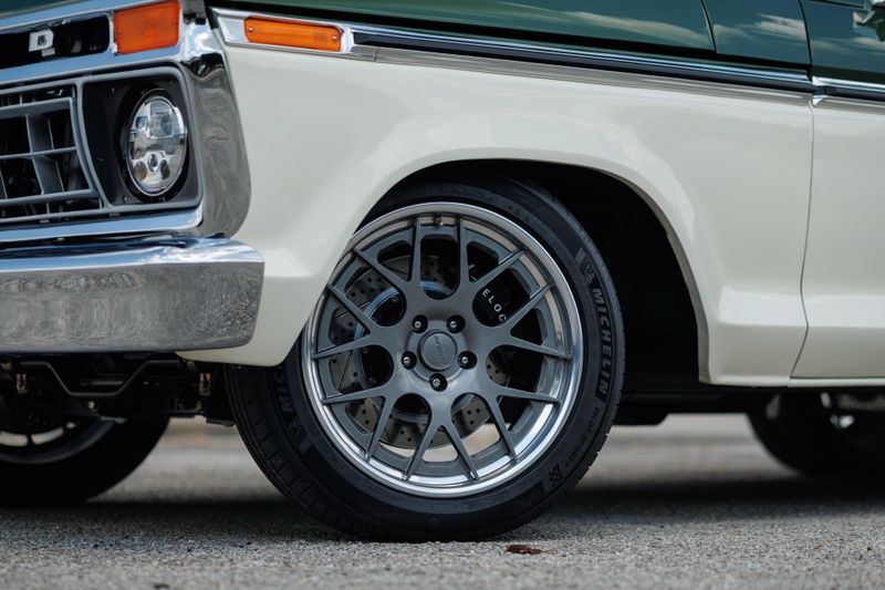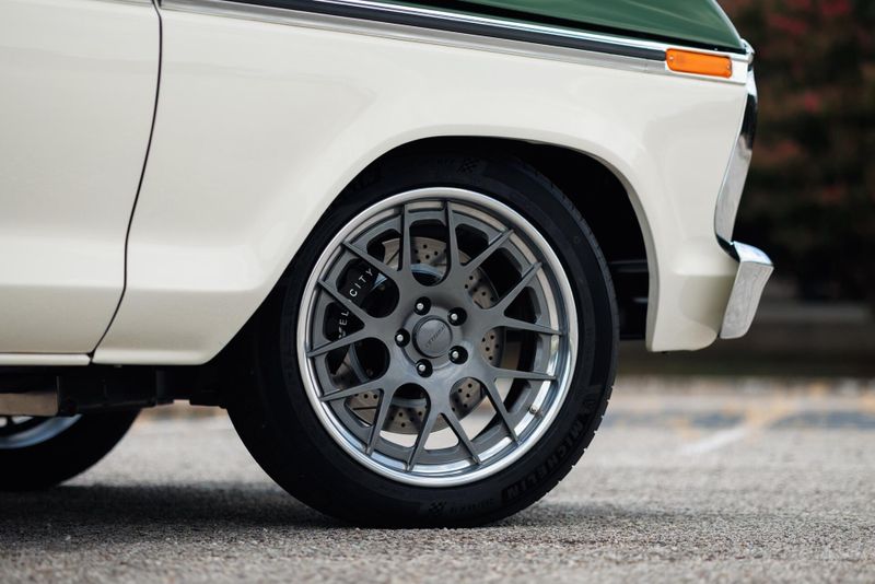 This beast starts with an authentically vintage two-tone paint job, featuring Boxwood Green over Wimbledon White. Plenty of chrome completes the retro look, while custom-machined Velocity billet exterior accents reveal the trucks new-age customization. The stance is aggressive, hugging the pavement with purpose, thanks to a lowered suspension and a set of gunmetal Forgeline wheels that grip the road with authority.