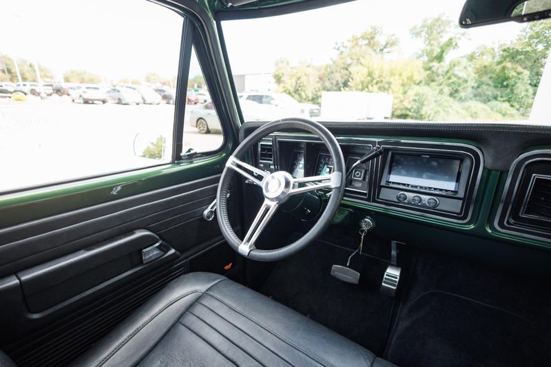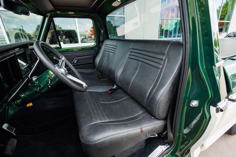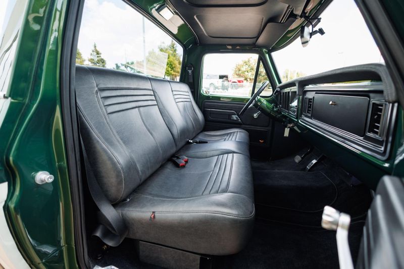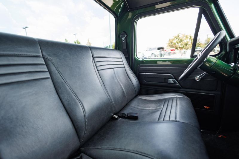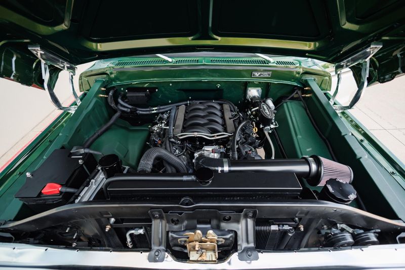 Beneath the hood, this crate F-100 is all business with a potent Gen III 5.0L Coyote V8 paired with an advanced 10-speed automatic transmission and bulletproof Ford 9 rear end. Stopping power is just as impressive, thanks to a Baer high-performance big brake kit that ensures you stay in control no matter how hard you push it.
