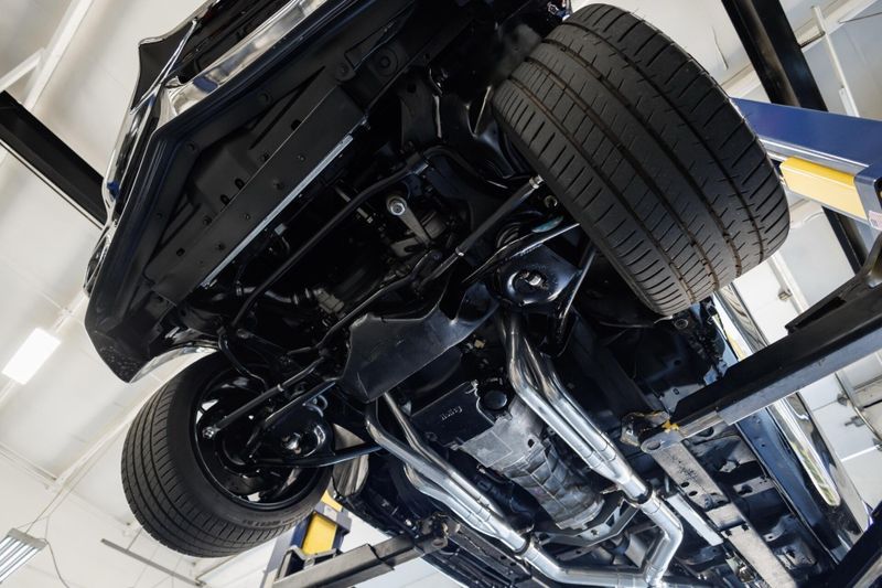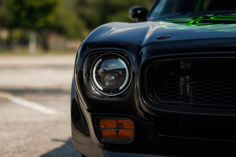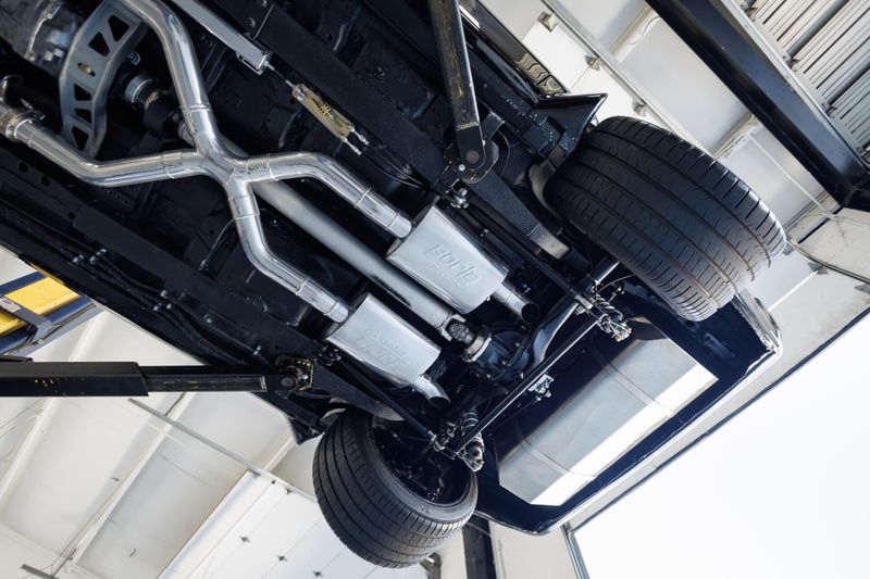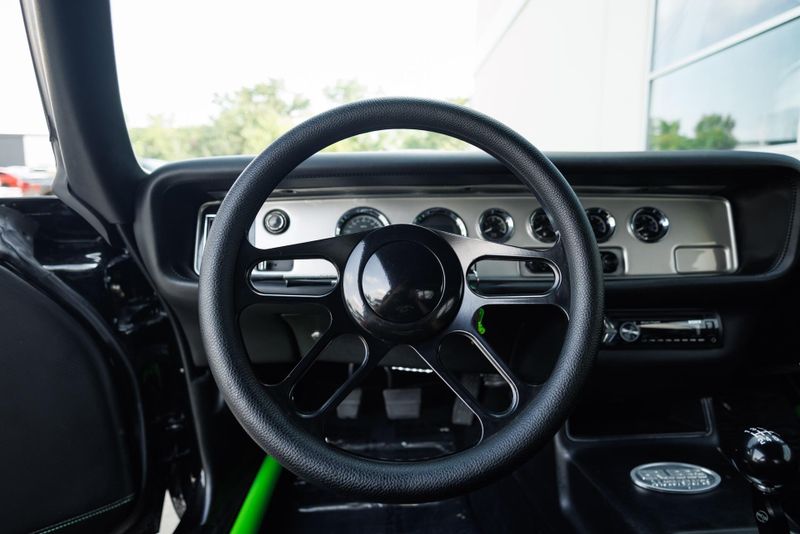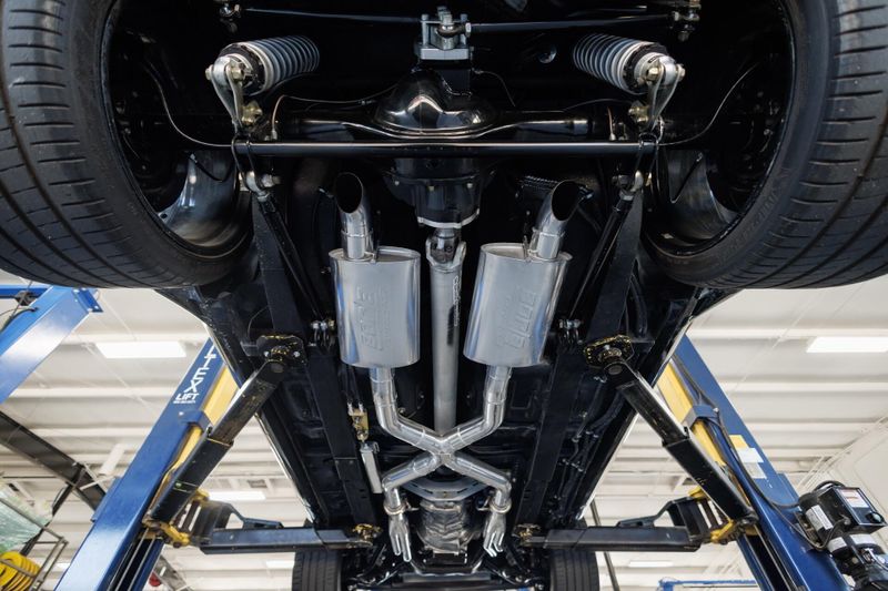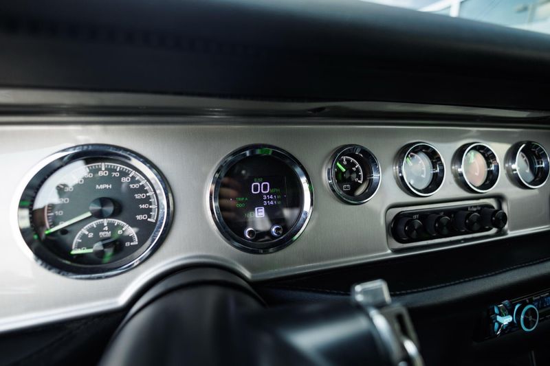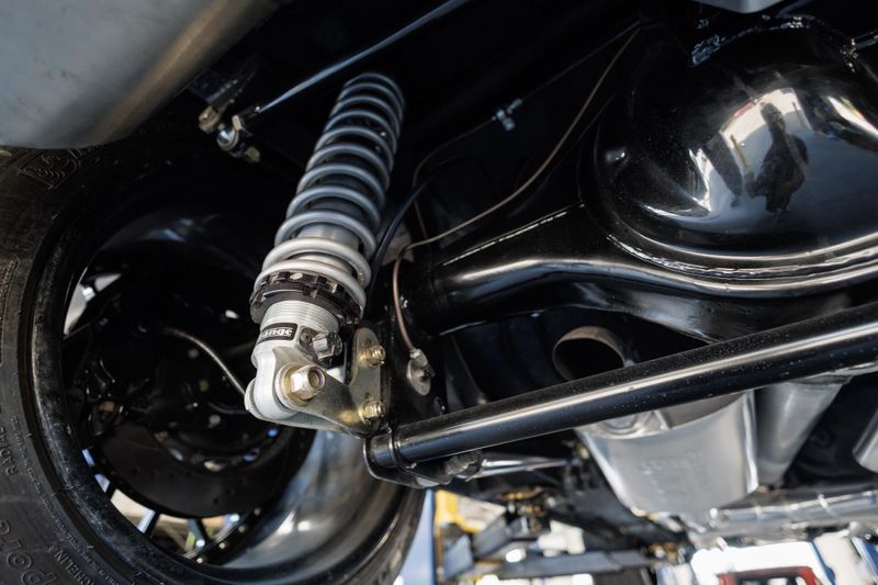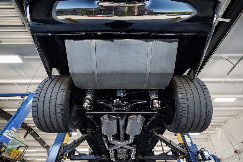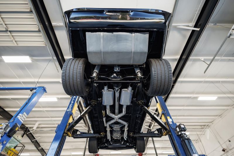 Refinished Black exterior with painted graphics. Shaved and smoothed with molded in spoilers. Vintage Air. Custom aluminum driveshaft. Custom built 9 inch Ford rear end with 35-spline Moser axles.