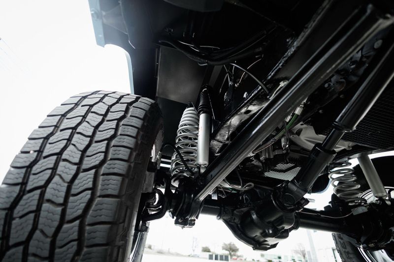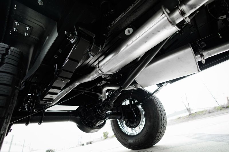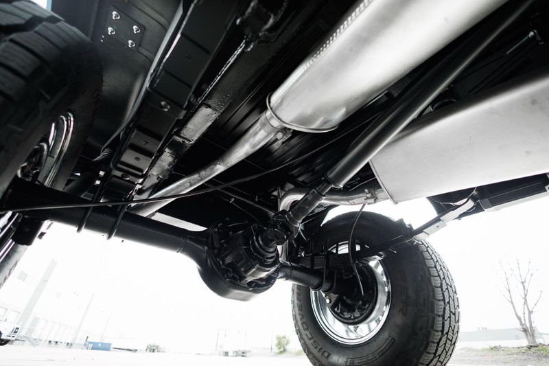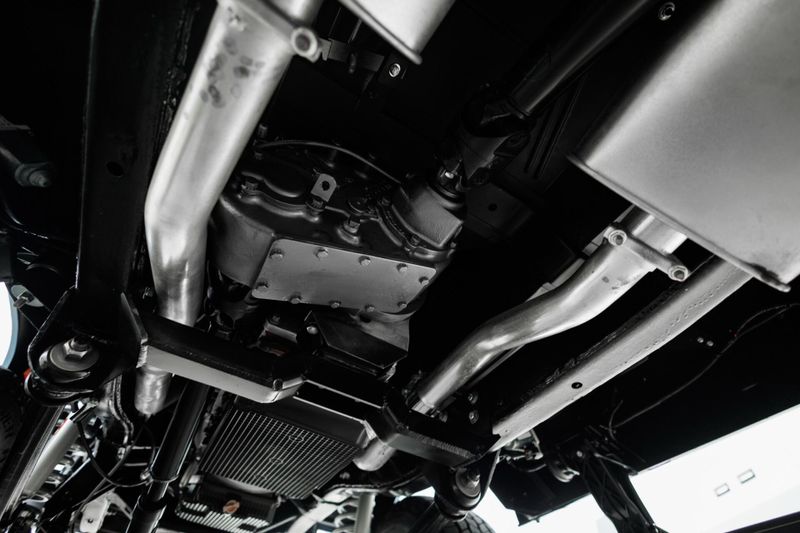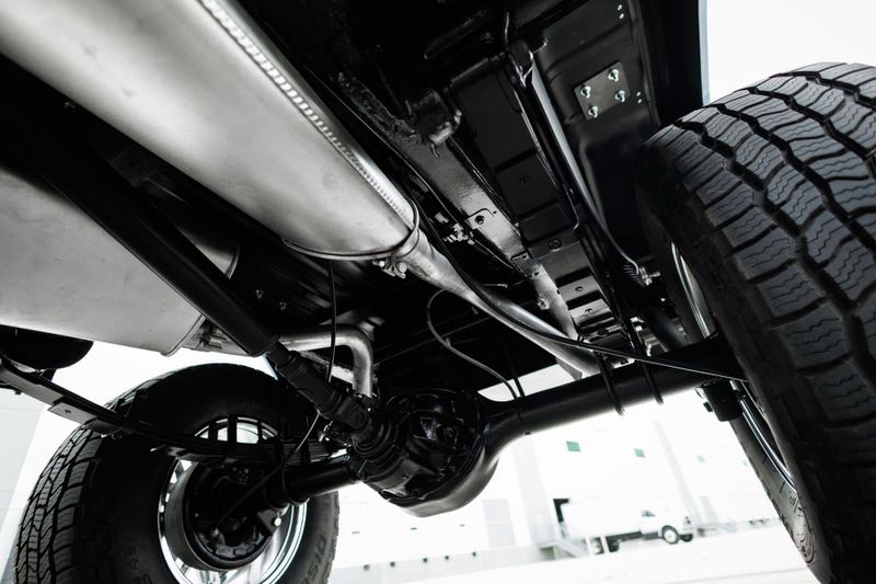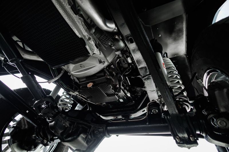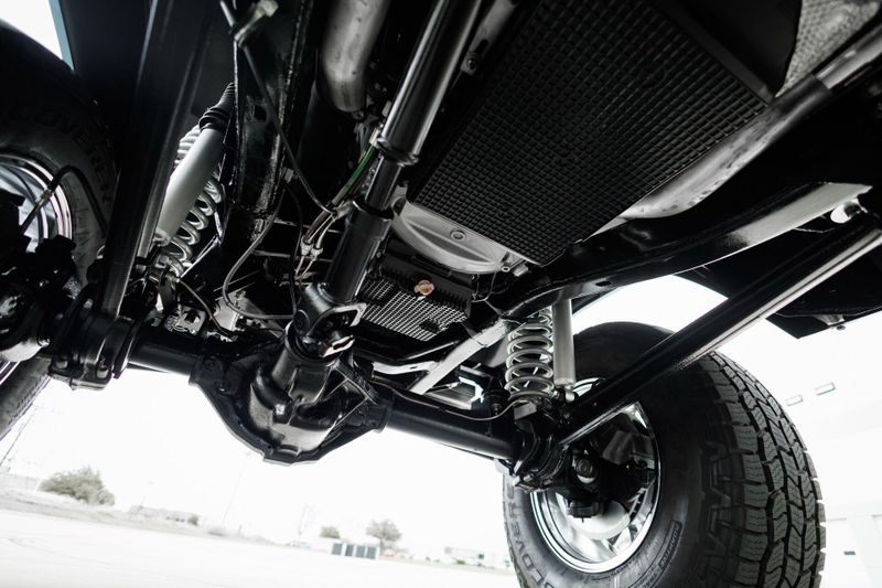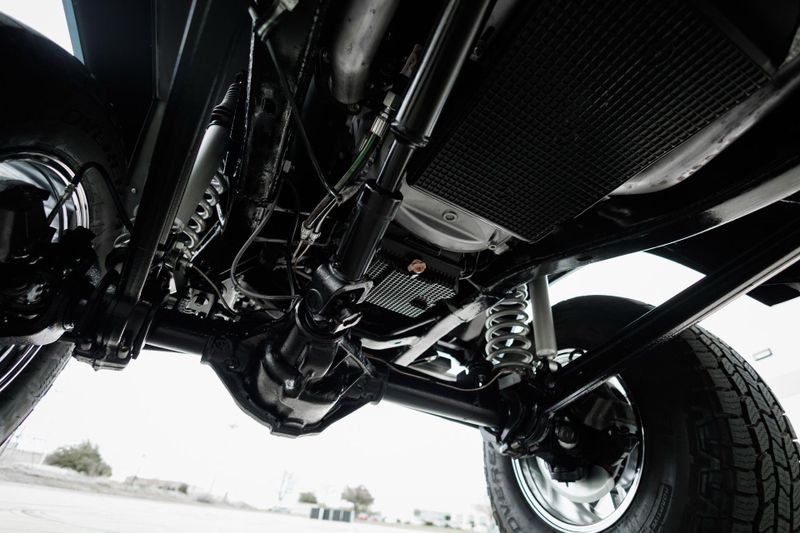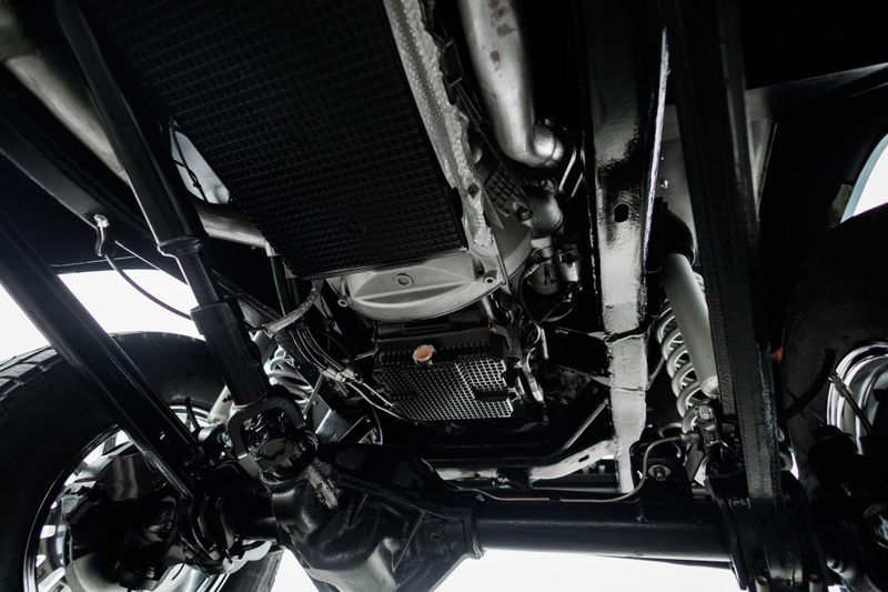 T+B Custom Bronco serial number 002 is powered by a 5.0L Gen 3 Coyote V-8 Engine with a cold air intake and ceramic-coated exhaust headers. The quad cam monster pulls fuel from a 23 gallon EFI gas tank and pushes power through a Ford 10R80 10-Speed automatic transmission and custom built driveshafts.