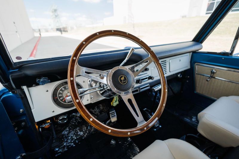 A frame-off restoration with an all-new body elevated this Ford 1976 Bronco to the next level. The first-generation American 4x4 icon packs third-generation FoMoCo Coyote V-8 power and a time-proven collection of high performance equipment and premium cabin appointments.