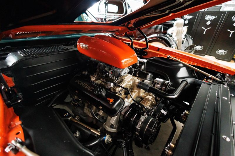 The engine was built to be reliable and maintenance free while maintaining pump gas compatibility. The original 455 block was opened to 4.181 inches and combined with a 4.250-inch RPM forged crank for a slight increase in stroke. The rotating assembly consists of RPM billet big-block Chevy rods, and Diamond 10.58:1 pistons. Edelbrock was the choice of the top end featuring Performer aluminum heads, a dual-plane intake, and an 800-cfm carburetor. A Bullet 245/253-at-.050 hydraulic flat-tappet cam and Harland Sharp 1.5:1 rocker arms were chosen to round out the build. The engine produces 498 hp and a staggering 570 lb-ft of torque. The engine is matched to a Tremec five-speed, Hays aluminum flywheel, and a Centerforce clutch.