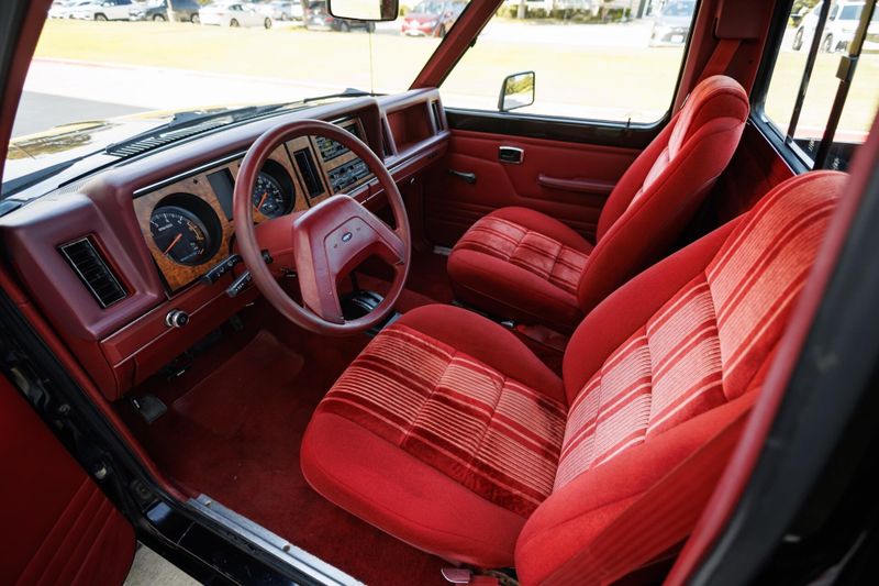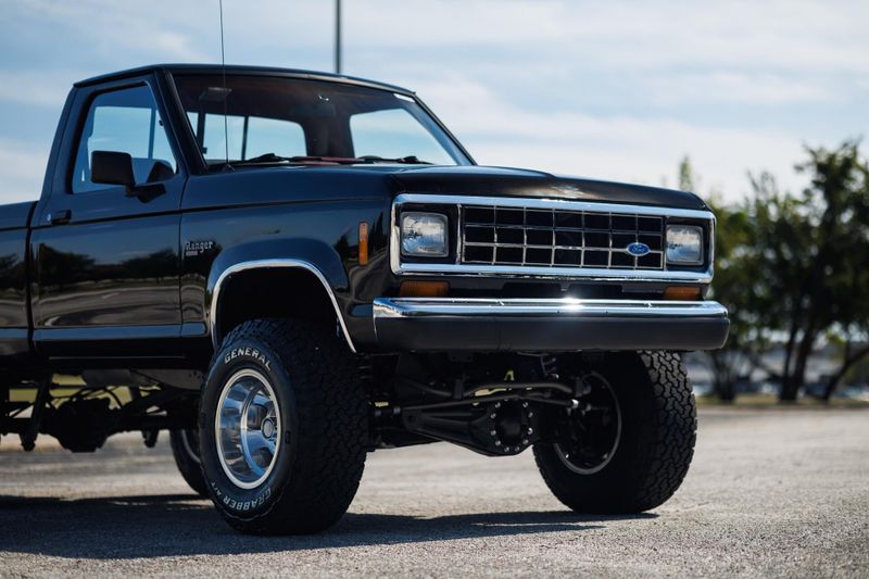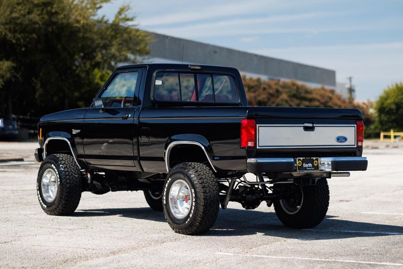 Earth MotorCars is Proud to offer this amazing: 1988 Ford Ranger XLT Lifted Custom 4x4 V6 Automatic Unbelievable Build! Clean CARFAX. CLEAN AUTOCHECK REPORT, 4.50-Inch Rough Country Suspension Lift, 15-Inch American Racing Wheels, Factory Air Conditioning, 31×10.50 General Grabber A/T Tires, 2.9-liter V6, 4-speed automatic transmission, Dual-Range Transfer Case, Front Power Disc Brakes with Rear Drum Brakes, Power Steering, Sliding Rear Window, Factory am/fm/cassette Stereo, Factory Scarlet Red Bucket Seats, Spray-In Bedliner, Factory Auxiliary Gauges.