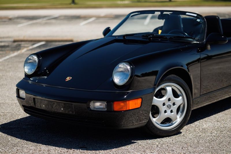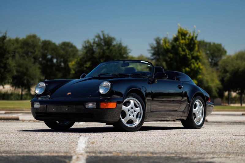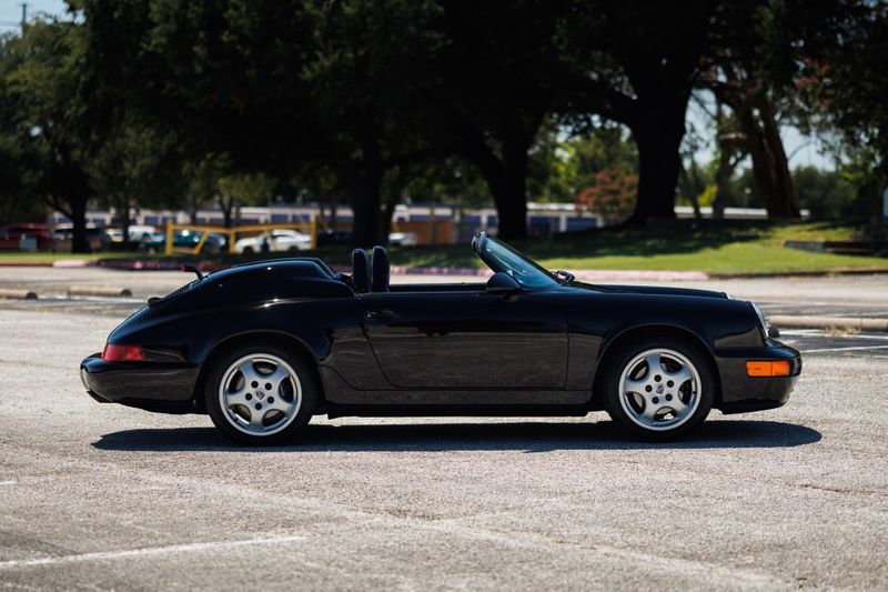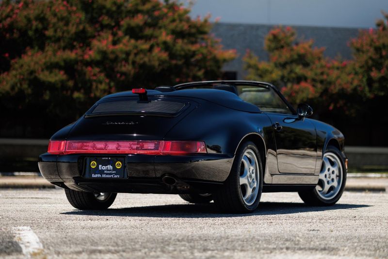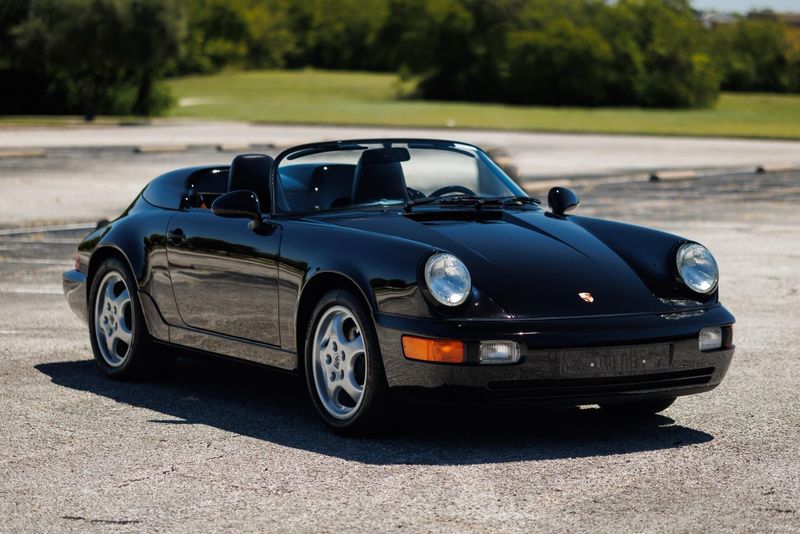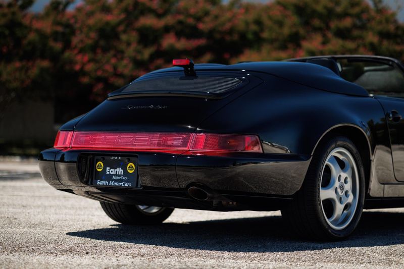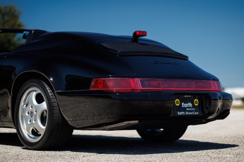 Earth MotorCars is Proud to offer this amazing: 1994 Porsche 911 Speedster G50 5-Speed 17'' Cup Wheels Power Seats 9,451-Miles Clean CARFAX. ABS brakes, Alloy wheels. 1994 Porsche 911 Speedster is one of 936 examples produced between 1992 and 1994, just 427 of which were built for the US market. It is powered by a 3.6-liter flat-six paired with a G50 five-speed manual transaxle and is finished in black over black leather. Equipment includes 17 Cup alloy wheels, a black soft top, a fiberglass twin-hump convertible-top cover panel, a speed-activated rear spoiler, a CD stereo, air conditioning, and power-adjustable seats. The car was first sold in Florida. Subsequent service involved adjusting the valves, changing the oil, and replacing the valve cover gaskets, spark plugs, fuel pumps, and fuel level sending unit. This 911 Speedster shows 9k miles and is now offered on dealer consignment with manufacturers literature, a clean Carfax report, and a clean Pennsylvania title.