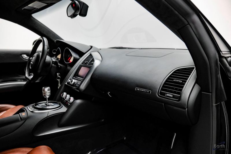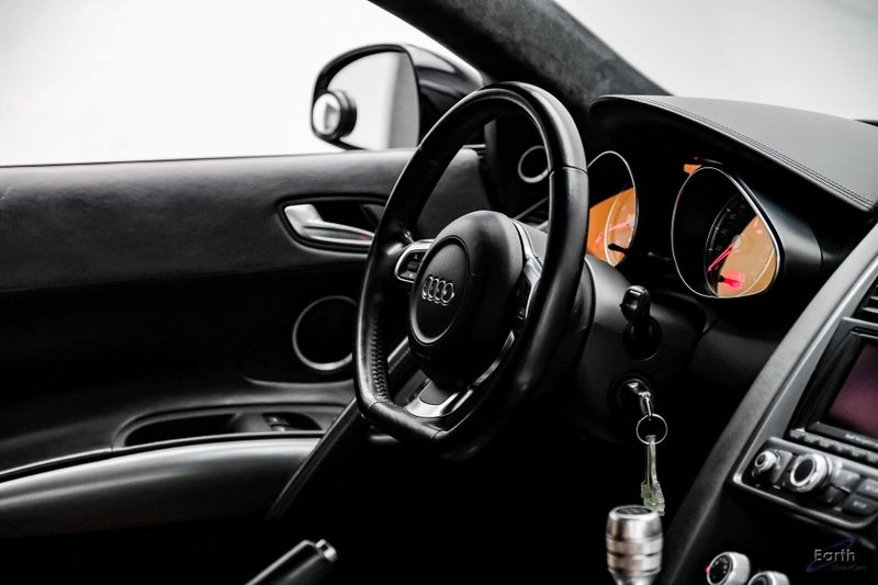 Earth MotorCars is Proud to offer this amazing: 2008 Audi R8 4.2 quattro Enhanced Leather Premium Pk 6-Speed Manual Clean CARFAX. CLEAN AUTOCHECK REPORT, 6-Speed R-Tronic Transmission, Bang & Olufsen Sound System, Limestone Gray w/Leather/Alcantara Seating Surfaces or Fine Nappa Leather Seat Trim, 4-Wheel Disc Brakes, 8.5J x19 Front/11J x 19 Rear Alloy Wheels, ABS brakes, Air Conditioning, AM/FM Stereo w/CD/Navigation/SIRIUS, Audi Front & Rear Parking System w/Rear-View Camera, Audi Hill Hold Assist, Auto-Dimming Exterior Mirror, Auto-dimming Rear-View mirror, Automatic temperature control, Black Alcantara Headliner, Bluetooth Phone Preparation, Body Color Side Blade, Bumpers: body-color, Compass, Driver vanity mirror, Dual front impact airbags, Dual front side impact airbags, Enhanced Leather Package, Fine Nappa Leather Seat Trim, Four wheel independent suspension, Front Bucket Seats, Heated Sport Bucket Seats, High intensity discharge headlights: Bi-xenon, HomeLink, Illuminated entry, Leather Door Inserts, Low tire pressure warning, Outside temperature display, Panic alarm, Passenger vanity mirror, Premium Package, Rain sensing wipers, Rear window defroster, Security system, SIRIUS Satellite Radio, Speed control, Speed-Sensitive Wipers, Spoiler, Sport steering wheel, Storage Package, Tachometer, Telescoping steering wheel, Tilt steering wheel, Traction control, Trip computer, Variably intermittent wipers, Voltmeter.