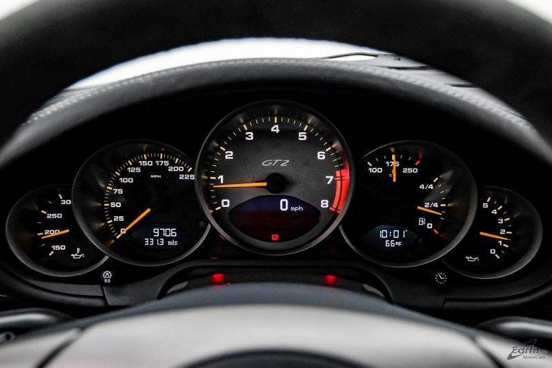 Earth MotorCars is Proud to offer this amazing: 2008 Porsche 911 GT2 Stunning Collector 1 of 195 Made for US Clean CARFAX. PCCB in Yellow, One of only 195 US-market examples reportedly produced for the model year, twin-turbocharged, 3.6-liter flat-six rated by the factory at 523 brake horsepower, 4 Speakers, 4-Wheel Disc Brakes, ABS brakes, Adaptive suspension, Air Conditioning, AM/FM/CD Radio, Automatic temperature control, Carbon Interior Package, Ceramic disc brakes: front and rear, Door Entry Guards In Carbon, Driver door bin, Driver vanity mirror, Electronic Stability Control, Four wheel independent suspension, Front 19'' x 8.5'' & Rear 19'' x 12'' Wheels, Front anti-roll bar, Front Center Armrest, Front fog lights, Front reading lights, Full Leather Seat Trim, High intensity discharge headlights: Bi-Xenon, Illuminated entry, Low tire pressure warning, Navigation System, Outside temperature display, Passenger cancellable airbag, Passenger door bin, Passenger vanity mirror, Porsche Crest in Headrest, Power door mirrors, Power steering, Remote keyless entry, Security system, Sound Package Plus, Speed control, Spoiler, Sport Chrono Package Turbo, Sport steering wheel, Tachometer, Telescoping steering wheel, Tilt steering wheel, Traction control, Trip computer, Variably intermittent wipers.