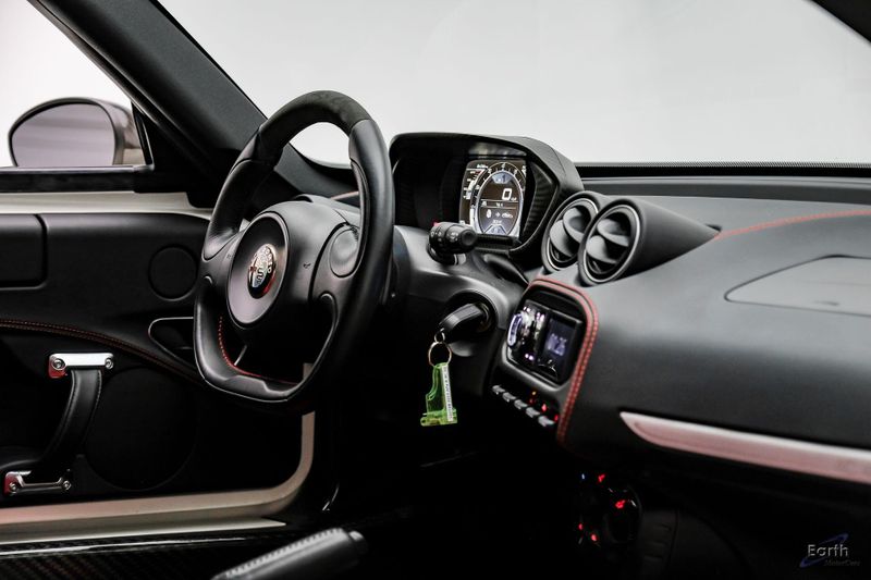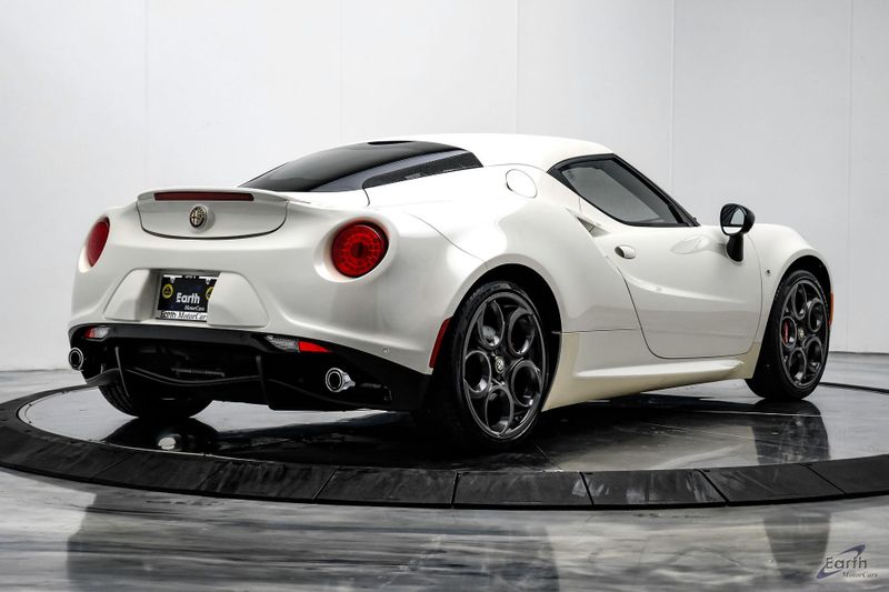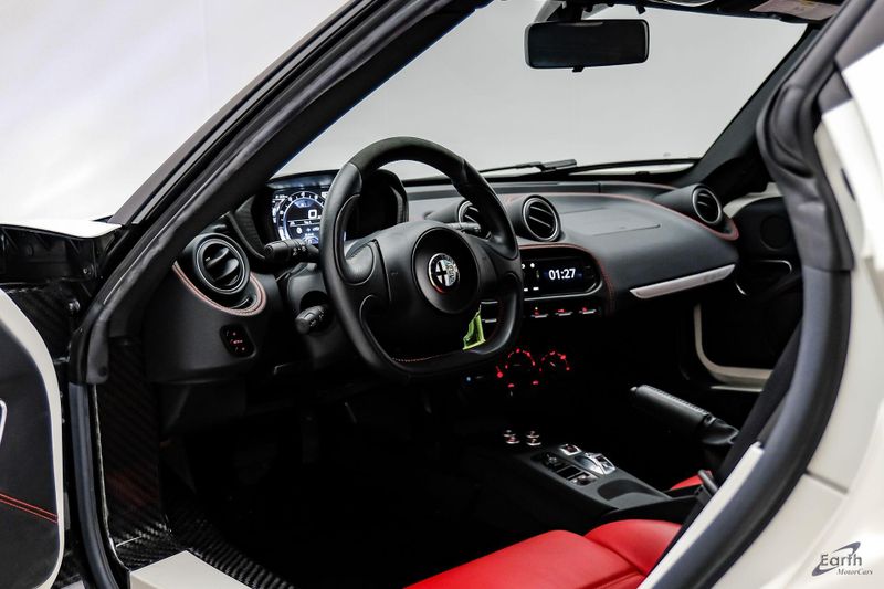 Earth MotorCars is Proud to offer this amazing: 2015 Alfa Romeo 4C Leather Interior Track Package Convenience Group CARFAX One-Owner. Clean CARFAX. CLEAN AUTOCHECK REPORT, Premium Paint $1,500.00, Red Leather Trimmed Bucket Seats $1,000.00, 4-Wheel Disc Brakes, 4C Leather IP & Door Panel, ABS brakes, Air Conditioning, Alfa Romeo Battery Charger, Alloy wheels, Bi-Xenon Headlamps, Bumpers: body-color, Carbon Fiber Cluster Bezel, Carbon Fiber Exterior Mirrors, Convenience Group, Coupe Track Package, Cruise Control, Dual front impact airbags, Electronic Stability Control, Front Bucket Seats, Heated door mirrors, Illuminated entry, Leather Interior Group, Leather/Microfiber Steering Wheel, Low tire pressure warning, Outside temperature display, Premium Paint, Premium Speaker Package, Quick Order Package 22C, Race Tuned Suspension, Rear Body Color Spoiler, Rear Console Lockable Leather Bag, Rear Parking Assist System, Red Brake Calipers, Remote keyless entry, Security Alarm, Sport Tuned Dual Exhaust, Tachometer, Telescoping steering wheel, Tilt steering wheel, Tire Pressure Monitoring Display, Traction control, Trip computer, Variably intermittent wipers, Wheels: 18'' x 7.0'' Fr & 19'' x 8.5'' Rr Dark 5 Hole.