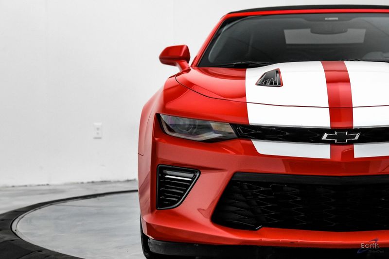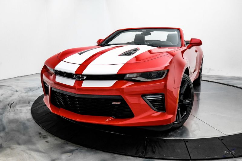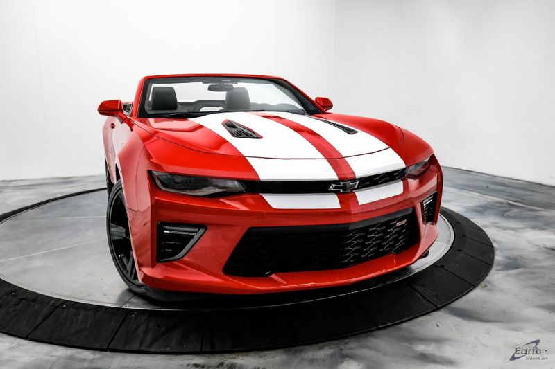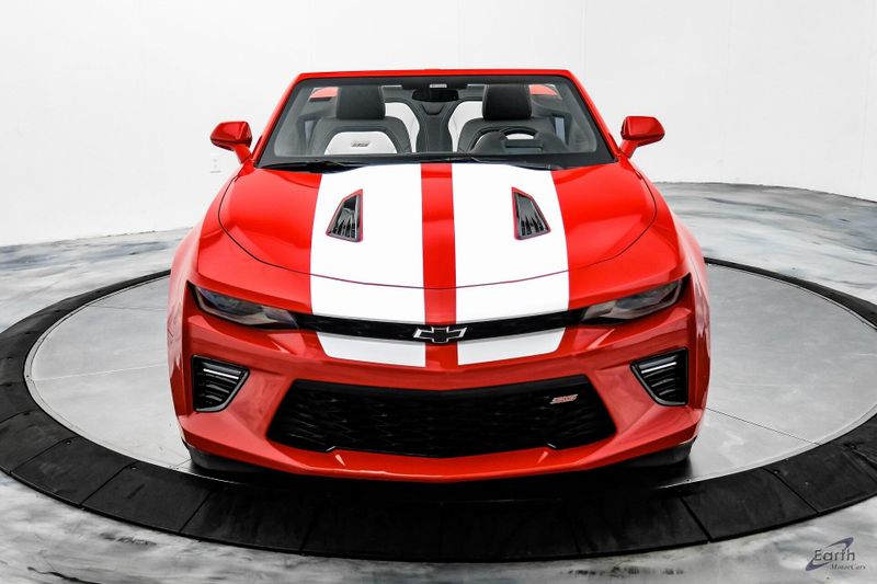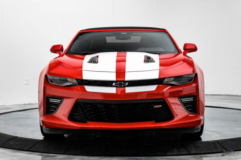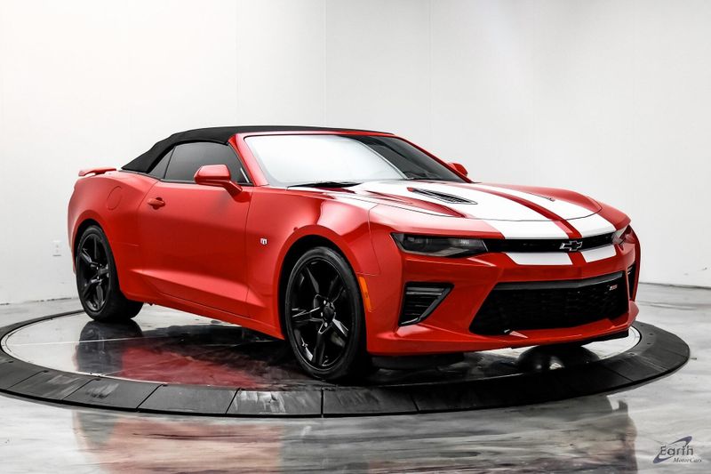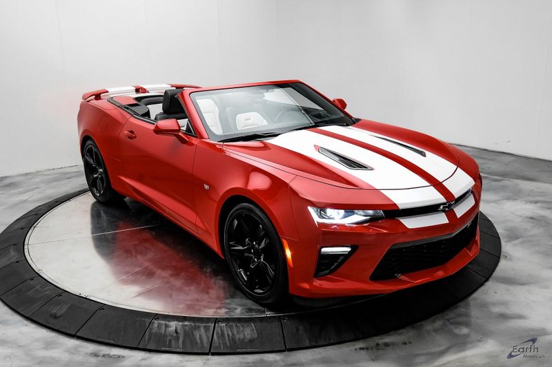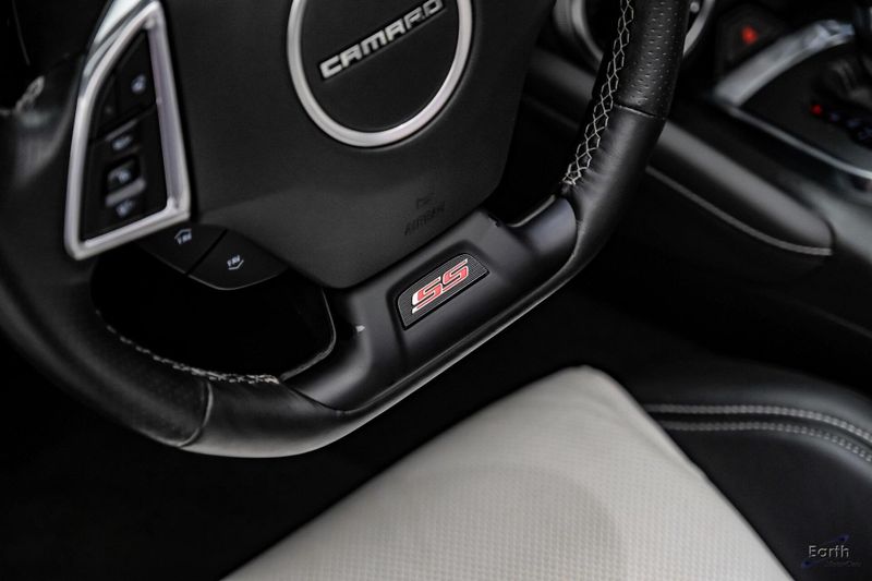 Earth MotorCars is Proud to offer this amazing: 2016 Chevrolet Camaro SS 2SS MyLink with Nav 20'' Wheels Dual Note Exhaust Clean CARFAX. CLEAN AUTOCHECK REPORT, 6.2L V8 455HP 455 lb-ft of Torque, 8-SPEED AUTOMATIC W/REMOTE VEHICLE START, Air Conditioning, Auto-dimming door mirrors, Auto-Dimming Inside Rearview Frameless Mirror, Automatic temperature control, Body-Color Outside Heated Power-Adjustable Mirrors, Bose Premium 7-Speaker Audio System Feature, Ceramic White Interior Accent Trim Package, Dual front impact airbags, Dual front side impact airbags, Dual Mode Performance Exhaust, Dual-Zone Automatic Climate Control, Front Bucket Seats, Glass rear window, Head-Up Display, Heated Driver & Front Passenger Seats, Heated Steering Wheel, Illuminated entry, Illuminated Sill Plates, Interior Spectrum Lighting, Memory Package, Navigation System, Preferred Equipment Group 2SS, Rear Cross-Traffic Alert, Rear Park Assist, Side Blind Zone Alert w/Lane Change Alert, Universal Home Remote, Variably intermittent wipers, Ventilated Driver & Front Passenger Seats, Wheels: 20'' x 8.5'' Fr & 20'' x 9.5'' Rr 5-Spoke Alum, White Pearl Rally Stripes, Wireless Charging For Devices.