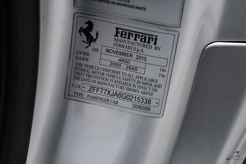 Earth MotorCars is Proud to offer this amazing: 2016 Ferrari California T Fully Serviced Clean CARFAX. 4-Wheel Disc Brakes, 7 Speakers, Air Conditioning, Alloy wheels, AM/FM radio: SiriusXM, Automatic temperature control, Black Brake Calipers, Bumpers: body-color, Carbon Fiber Driving Zone, Carbon Fiber Steering Wheel w/LED, Ceramic disc brakes: front and rear, Convertible HardTop, Convertible roof lining, Convertible roof wind blocker, Daytona Style Front Seats, Delay-off headlights, Driver door bin, Dual front impact airbags, Dual front side impact airbags, Electronic Stability Control, Four wheel independent suspension, Front Bucket Seats, Glass rear window, Headlight cleaning, Heated door mirrors, High-Intensity Discharge Headlights, Illuminated entry, Infotainment System w/Navigation & Bluetooth, Low tire pressure warning, Navigation System, Outside temperature display, Overhead console, Passenger vanity mirror, Power Bucket Seats, Power door mirrors, Power driver seat, Power steering, Radio data system, Security system, Speed control, Speed-sensing steering, Steering wheel mounted audio controls, Telescoping steering wheel, Tilt steering wheel, Traction control, Trip computer, Variably intermittent wipers, Wheels: Fr 20'' x 8.5''/Rr 20'' x 10.5'' Forged.