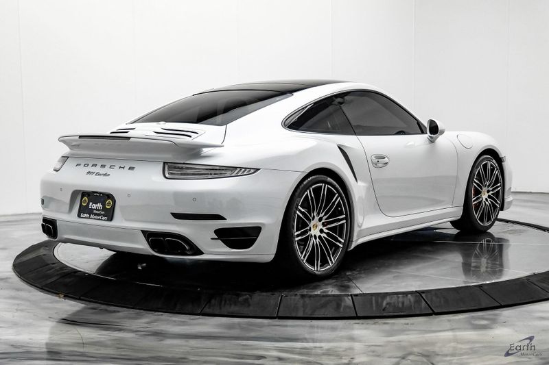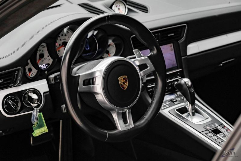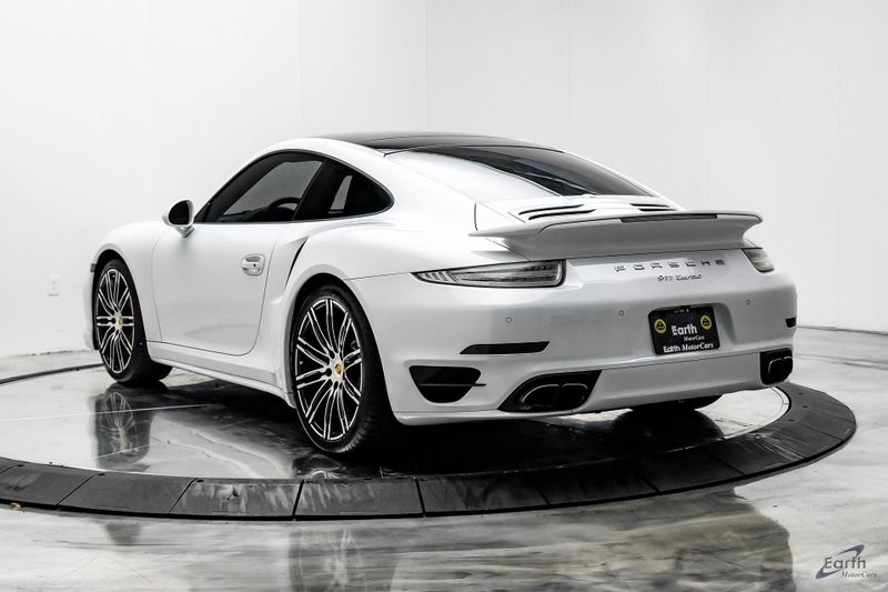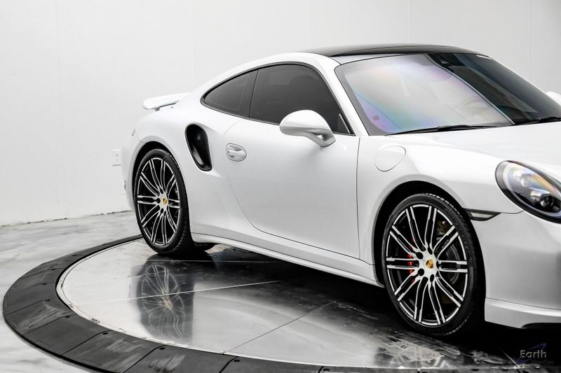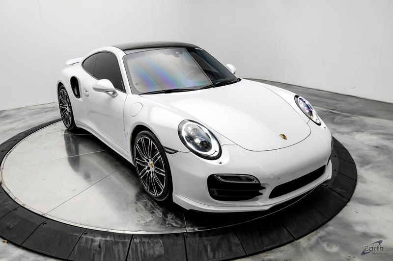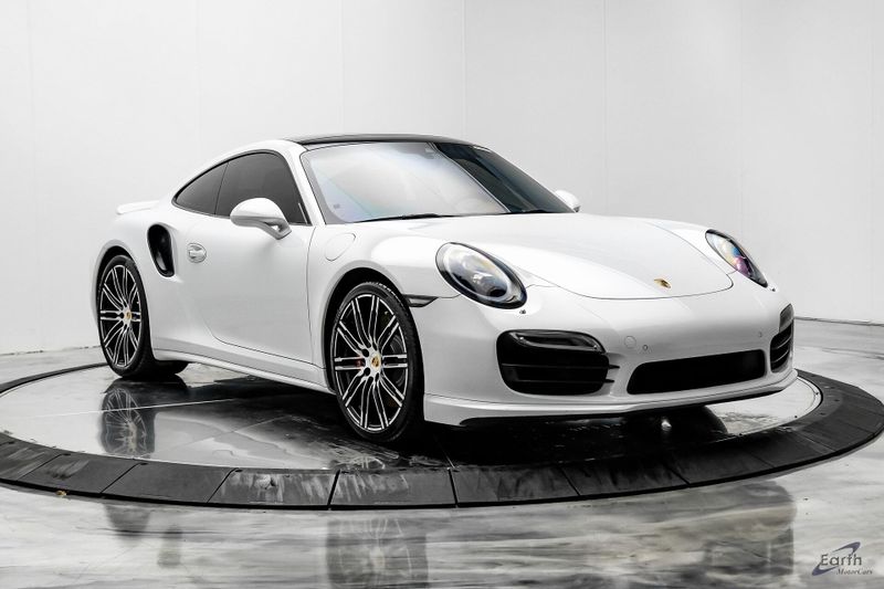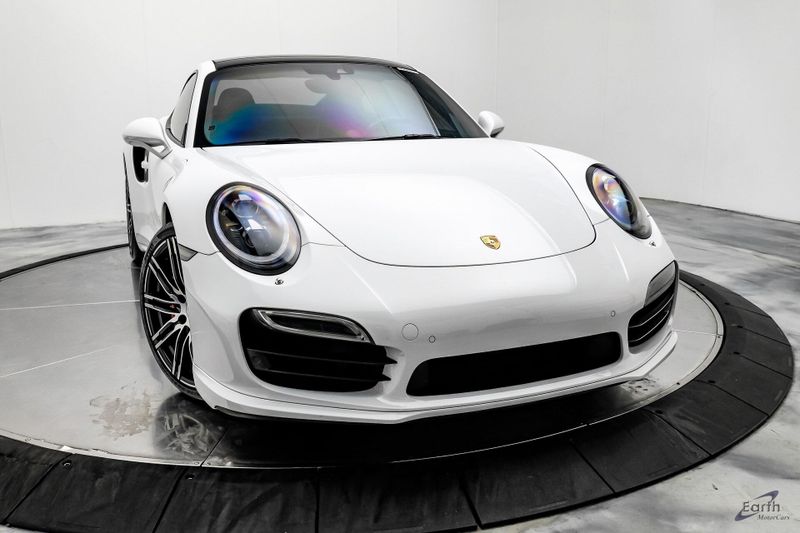 Earth MotorCars is Proud to offer this amazing: 2016 Porsche 911 Turbo Sports Chrono Package AWD, 12 Speakers, 14-Way Power Sport Seats w/Memory Package, Adaptive suspension, Air Conditioning, AM/FM radio, Auto-dimming Rear-View mirror, Automatic temperature control, Black Brake Calipers, Bumpers: body-color, Driver door bin, Driver vanity mirror, Electric Slide/Tilt Sunroof in Glass, Electronic Stability Control, Front Bucket Seats, Front reading lights, Garage door transmitter: HomeLink, High intensity discharge headlights: Bi-Xenon, Illuminated entry, Instrument Dials in White, Leather Seat Trim, Leather Shift Knob, LED Headlights, LED Headlights in Black, Light Design Package, Navigation System, Outside temperature display, Overhead console, Painted Interior Package, Painted Side Skirts, Painted Wheels in Black, Passenger vanity mirror, Porsche Communication Management, Power passenger seat, Power Steering Plus, Premium Package Plus, Radio data system, Remote keyless entry, Security system, Smoking Package, Speed control, Spoiler, Sport Chrono Clock Dial in White, Sport Chrono Package, Sport steering wheel, SportDesign Side Mirrors, Telescoping steering wheel, Variably intermittent wipers, Wheels: 20'' 911 Turbo.