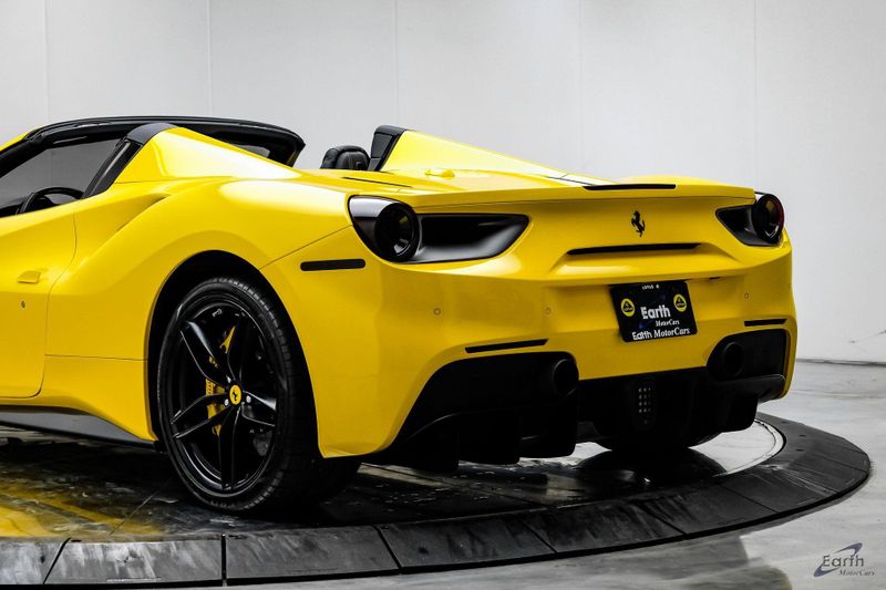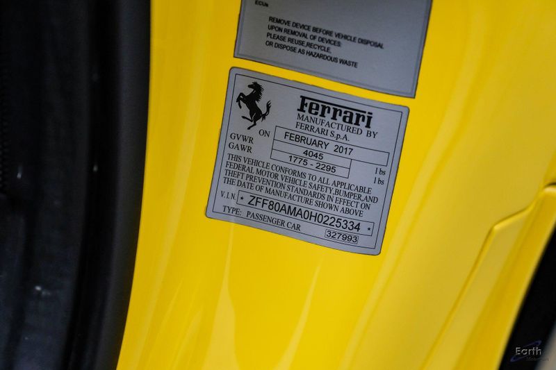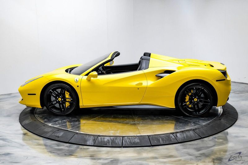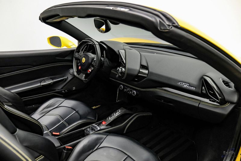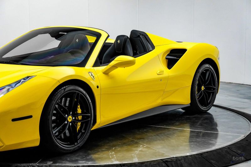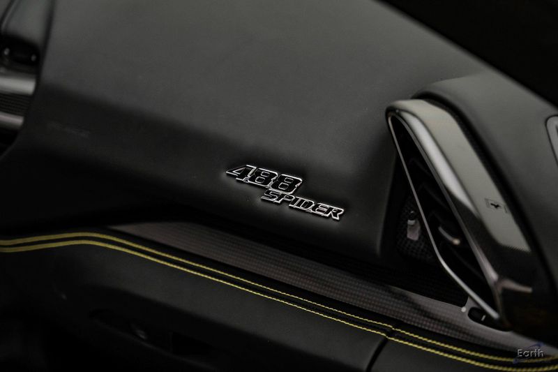 Earth MotorCars is Proud to offer this amazing: 2017 Ferrari 488 Spider Great Spec Rear Camera, ABS brakes, Adaptive suspension, Air Conditioning, Alloy wheels, Apple CarPlay, Automatic temperature control, Bumpers: body-color, Carbon Fiber Central Bridge, Carbon Fiber Dashboard Inserts, Carbon Fiber Driver Zone, Carbon Fiber Steering Wheel w/LED, Ceramic disc brakes: front and rear, Compass, Convertible HardTop, Electronic Stability Control, Embroidered Prancing Horse on Headrest, Four wheel independent suspension, Front & Rear Parking Sensors, Full Electrical Seats, Fully automatic headlights, Giallo Modena Brake Calipers, harman/kardon Speakers, Heated door mirrors, Illuminated entry, Leather Seat Trim, Low tire pressure warning, Navigation System, Outside temperature display, Parking Camera, Power convertible roof, Premium HiFi Sound System, Remote keyless entry, Scuderia Ferrari Shields, Sport steering wheel, Steering wheel mounted audio controls, Telescoping steering wheel, Traction control, Tri-Zone A/C, Upper Part in Leather.