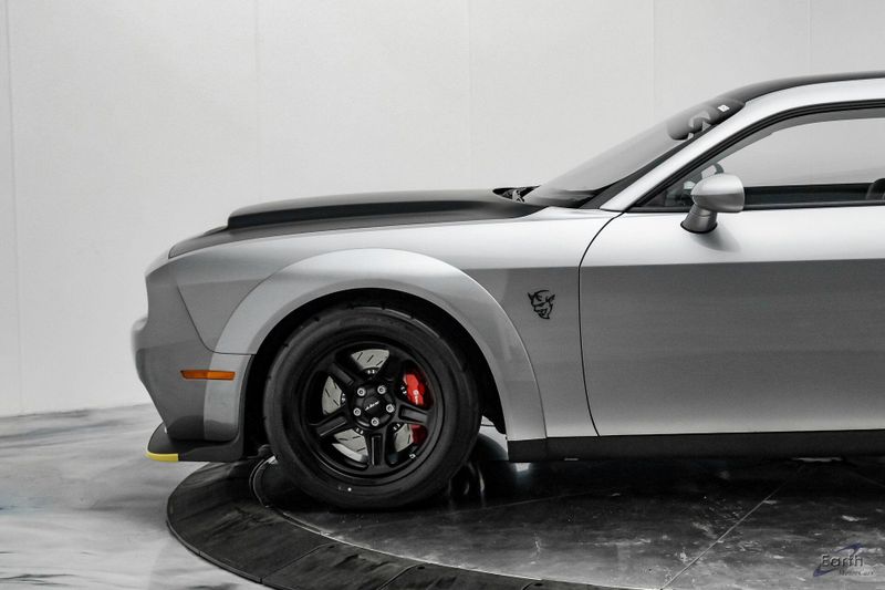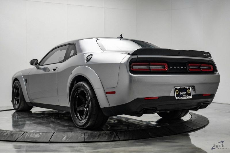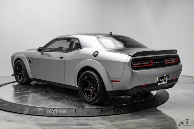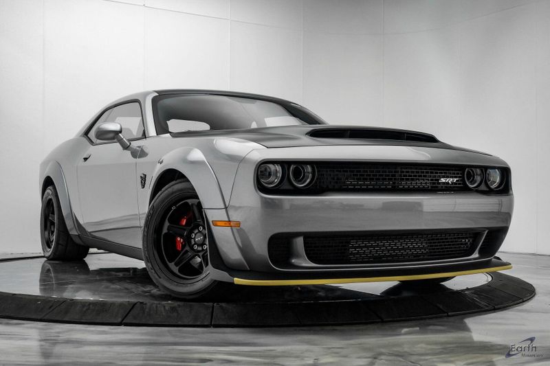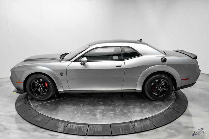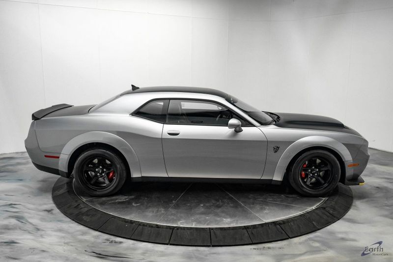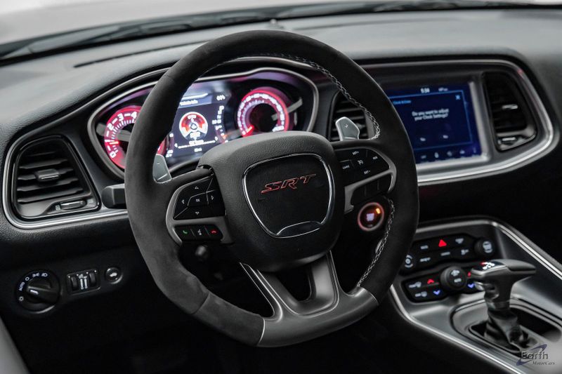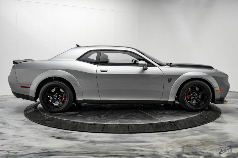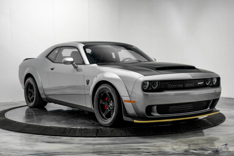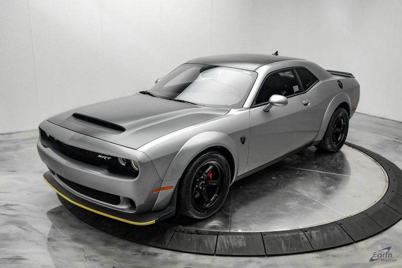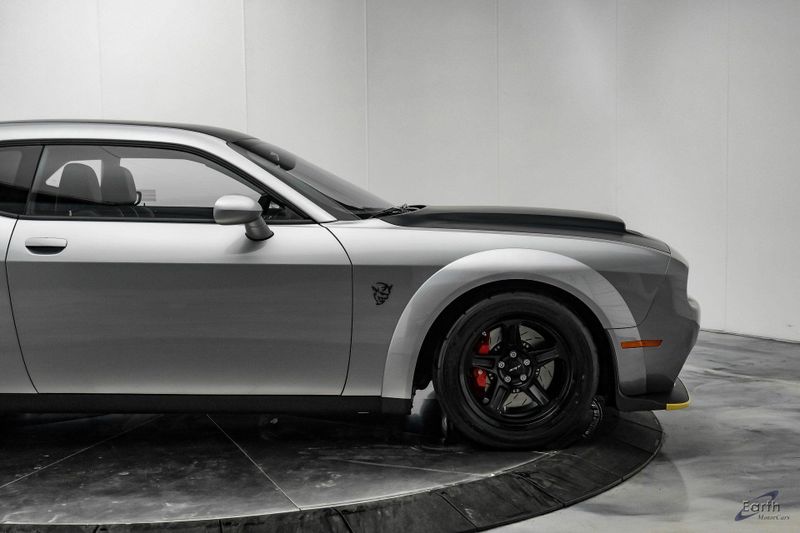 Earth MotorCars is Proud to offer this amazing: 2018 Dodge Challenger SRT Demon - 19 Miles w/CRATE 4-Wheel Disc Brakes, Adaptive suspension, Air Conditioning, AM/FM radio: SiriusXM, Anti-whiplash front head restraints, Apple CarPlay/Android Auto, Bright Pedals, Center Rear 3-Point Seat Belt, Child Seat Upper Tether Anchorages, Demon Logo Laguna/Alcantara Seat, Electronic Stability Control, Four wheel independent suspension, Front Floor Mats, Front Passenger Seat, Front Passenger Seat Belt Alert, Fully automatic headlights, Garage door transmitter: HomeLink, Heated door mirrors, Heated Front Seats, Heated Steering Wheel, High-Intensity Discharge Headlights, Leather Front Seat Group, Leather Rear Seat Option, Leather Trim Seats, Luxury Front & Rear Floor Mats, Navigation System, Painted Black Satin Graphics Package, Painted Black Satin Hood, ParkView Rear Back-Up Camera, Power 4-Way Driver Lumber Adjust, Power door mirrors, Power driver seat, Power steering, Power Tilt/Telescope Steering Column, Quick Order Package 26M, Radio: Uconnect 4C Nav w/8.4'' Display, Rear 60/40 Folding Seat, Rear Armrest w/Cupholder Seat, Spoiler, Telescoping steering wheel, Ventilated Front Seats, Wheels: 18'' x 11.0'' Aluminum.