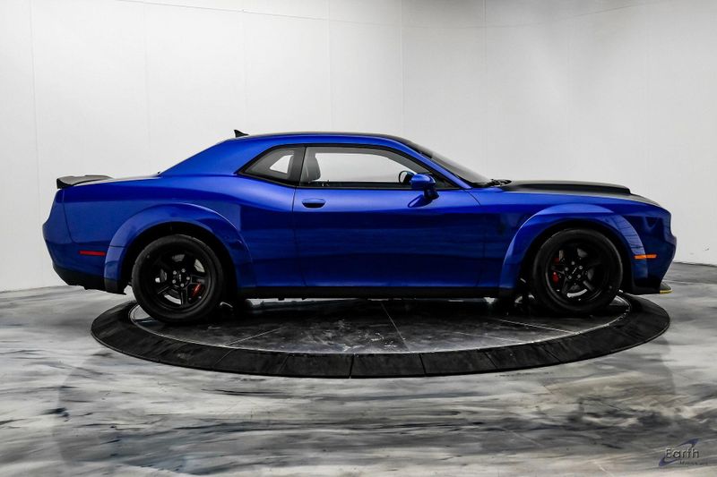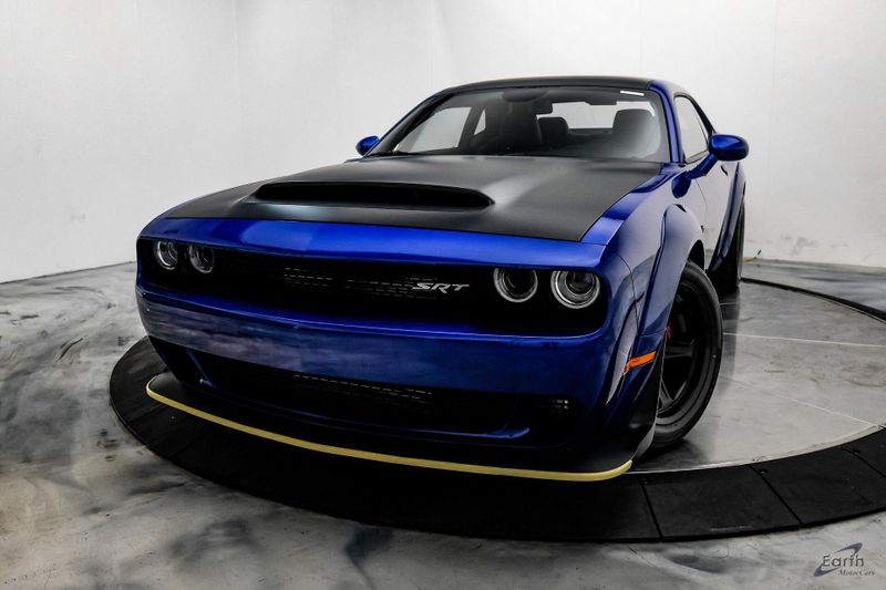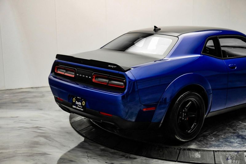 Earth MotorCars is Proud to offer this amazing: 2018 Dodge Challenger SRT DEMON with Crate CARFAX One-Owner. Clean CARFAX. 4-Wheel Disc Brakes, Adaptive suspension, Air Conditioning, AM/FM radio: SiriusXM, Anti-whiplash front head restraints, Apple CarPlay/Android Auto, Auto High-beam Headlights, Automatic temperature control, Bright Pedals, Center Rear 3-Point Seat Belt, Child Seat Upper Tether Anchorages, Demon Car Cover, Demon Logo Laguna/Alcantara Seat, Demon Vehicle Storage Package, Electronic Stability Control, Engine Block Heater, Front Floor Mats, Front Passenger Seat, Front Passenger Seat Belt Alert, Garage door transmitter: HomeLink, Heated door mirrors, Heated Front Seats, Heated Steering Wheel, High-Intensity Discharge Headlights, Illuminated entry, Leather Front Seat Group, Leather Rear Seat Option, Leather Shift Knob, Leather Trim Seats, Luxury Front & Rear Floor Mats, MOPAR Battery Manager, Navigation System, Overhead console, Painted Black Satin Graphics Package, Power 4-Way Driver Lumber Adjust, Power driver seat, Power Tilt/Telescope Steering Column, Quick Order Package 26M, Radio: Uconnect 4C Nav w/8.4'' Display, Rear 60/40 Folding Seat, Rear Armrest w/Cupholder Seat, Security system, Speed control, Spoiler, Steering wheel mounted audio controls, Telescoping steering wheel, Tilt steering wheel, Traction control, Tri-Zone A/C, Trip computer, Ventilated Front Seats, Wheels: 18'' x 11.0'' Aluminum.