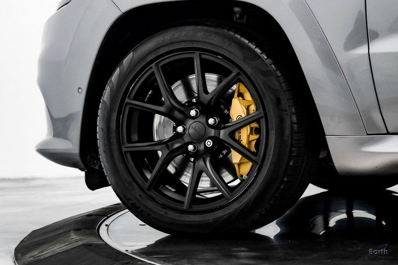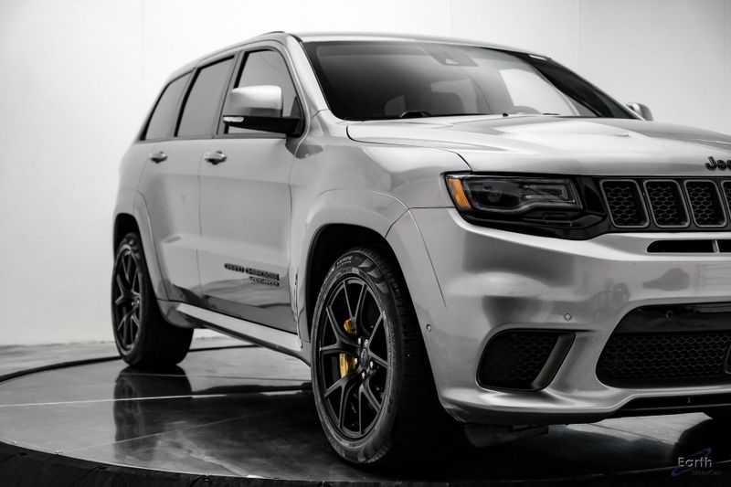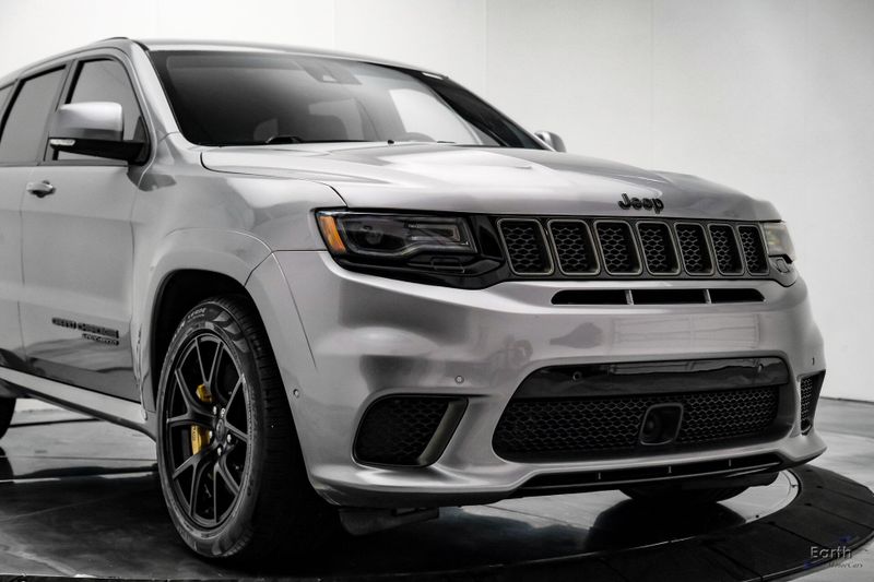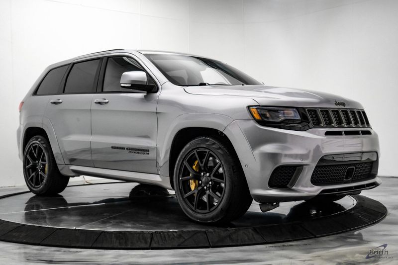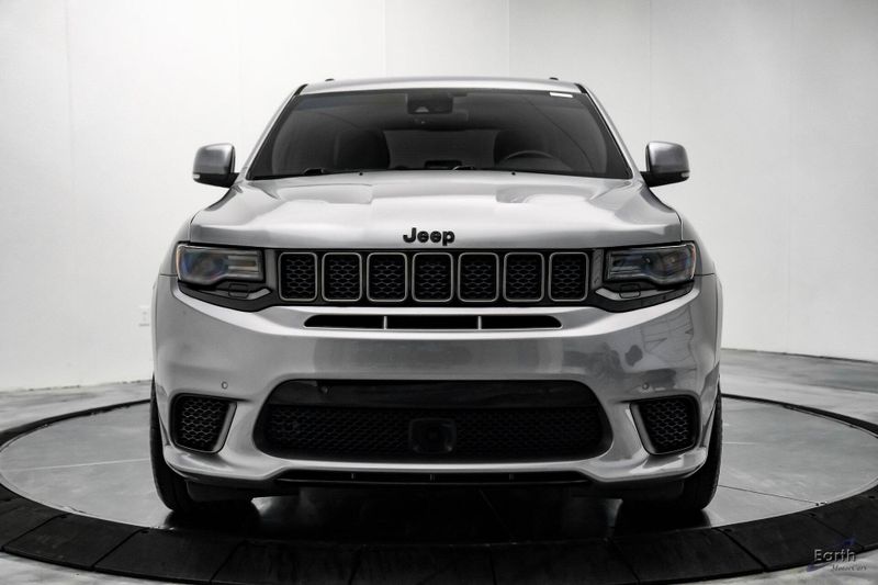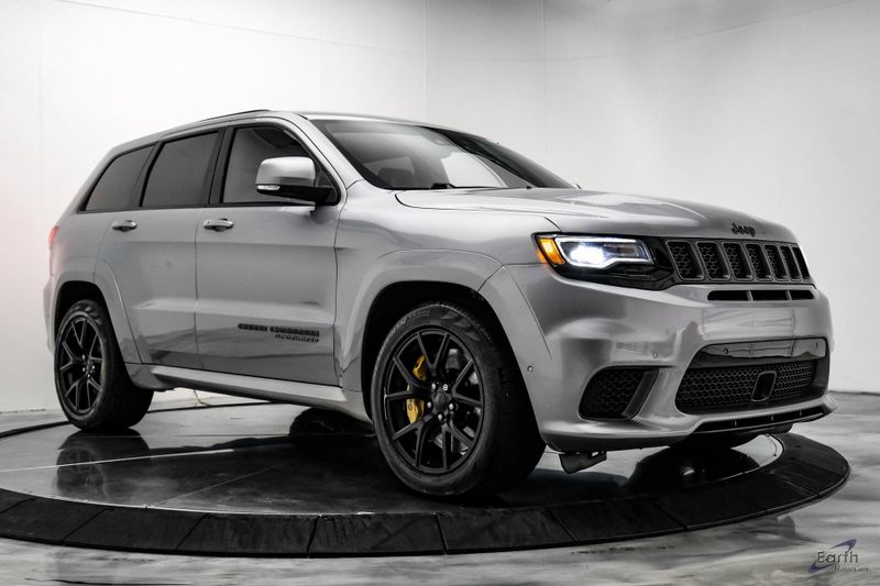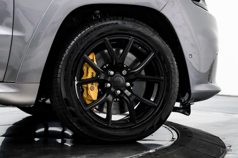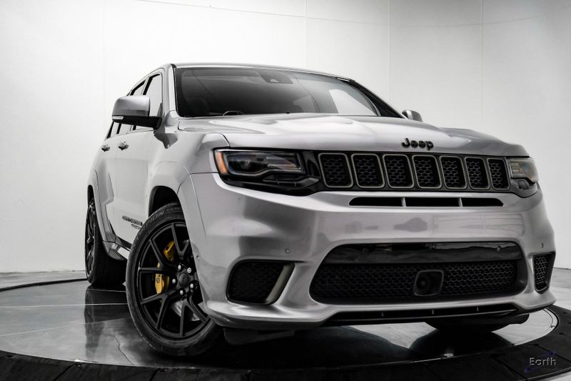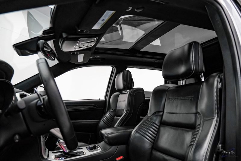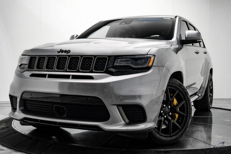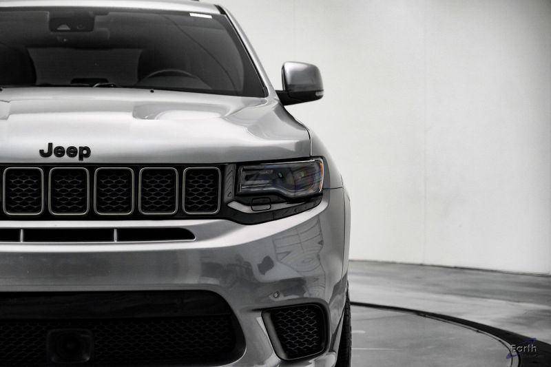 Earth MotorCars is Proud to offer this amazing: 2018 Jeep Grand Cherokee Trackhawk Pano Roof High Performance Audio Signature Interior CARFAX One-Owner. 4WD, 19 Speakers High Performance Audio, 7 & 4 Pin Wiring Harness, 825 Watt Amplifier, ABS brakes, Adaptive suspension, Air Conditioning, Auto High-beam Headlights, Auto-dimming door mirrors, Automatic temperature control, Brake assist, Bumpers: body-color, Class IV Receiver Hitch, Dual front impact airbags, Dual front side impact airbags, Dual-Pane Panoramic Sunroof, Four wheel independent suspension, Front Bucket Seats, Front Center Armrest w/Storage, Fully automatic headlights, Heavy-Duty Engine Cooling, High performance Audio, Illuminated entry, Knee airbag, Laguna Leather Care Instruction Tag, Laguna Leather Performance Seats, Laguna Leather Reserve Door Trim, Leather Wrapped Lower Panels, Panic alarm, ParkView Rear Back-Up Camera, Power Liftgate, Premium Headliner Module, Quick Order Package 2XV, Rain sensing wipers, Rear window wiper, Remote keyless entry, Security system, Signature Leather Wrapped Interior Package, Speed control, Speed-Sensitive Wipers, Spoiler, Steering wheel mounted audio controls, Trailer Tow Group IV, Wheels: 20'' x 10'' Black Satin Aluminum.