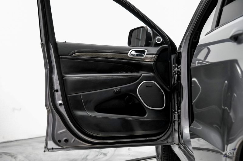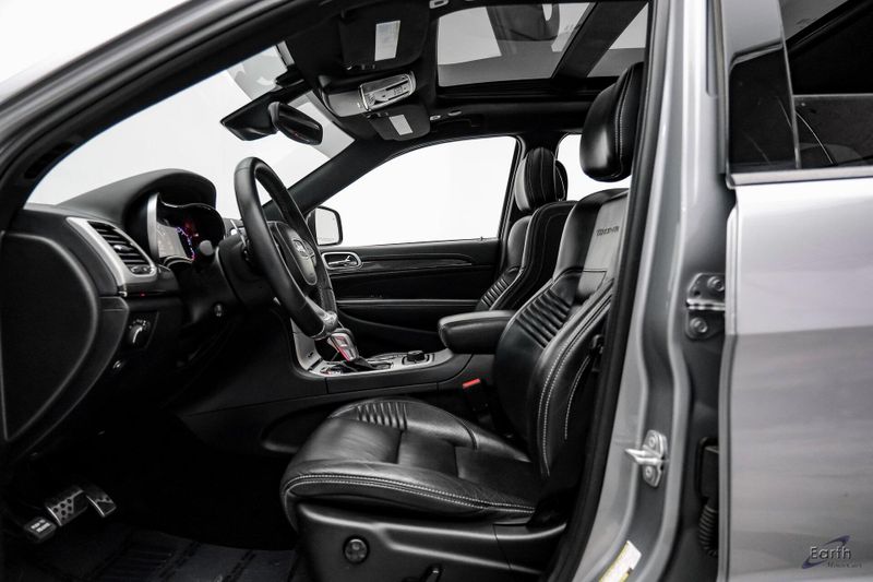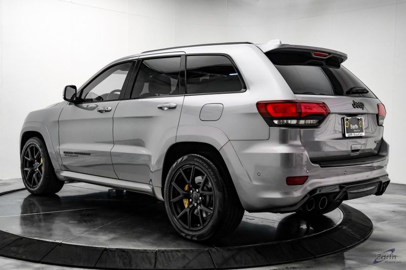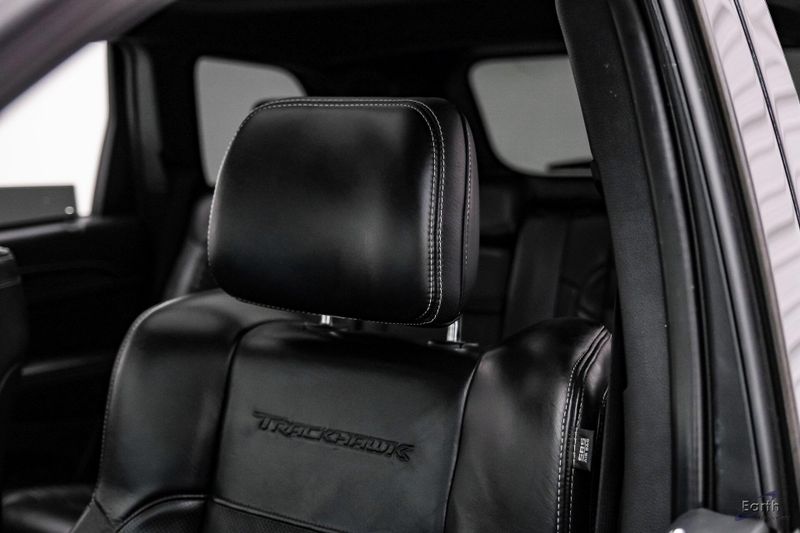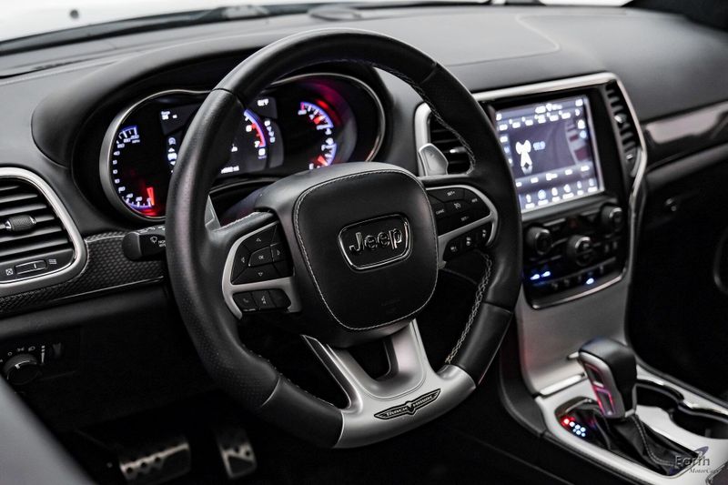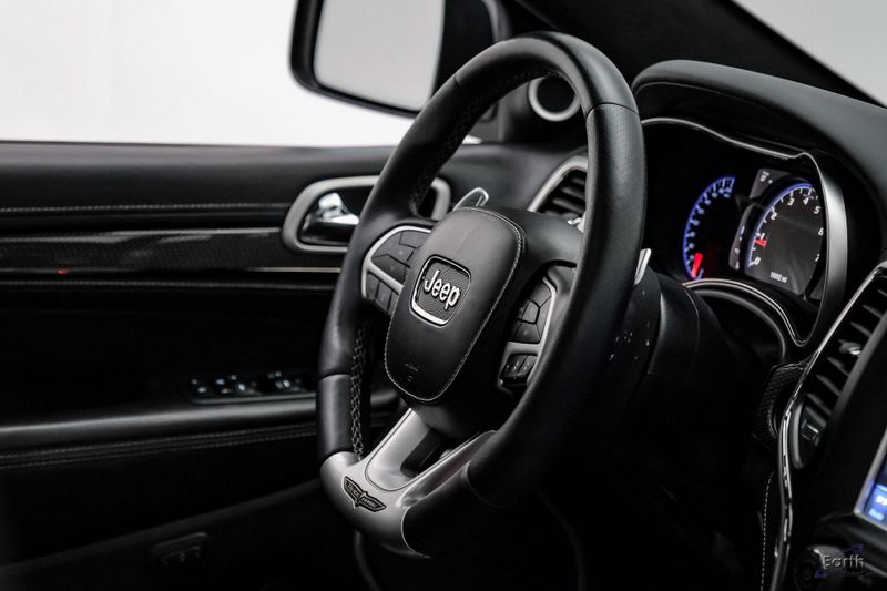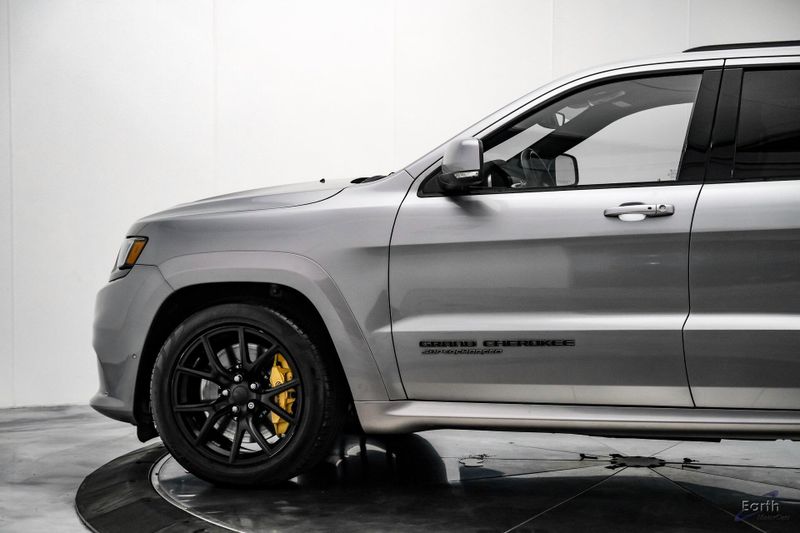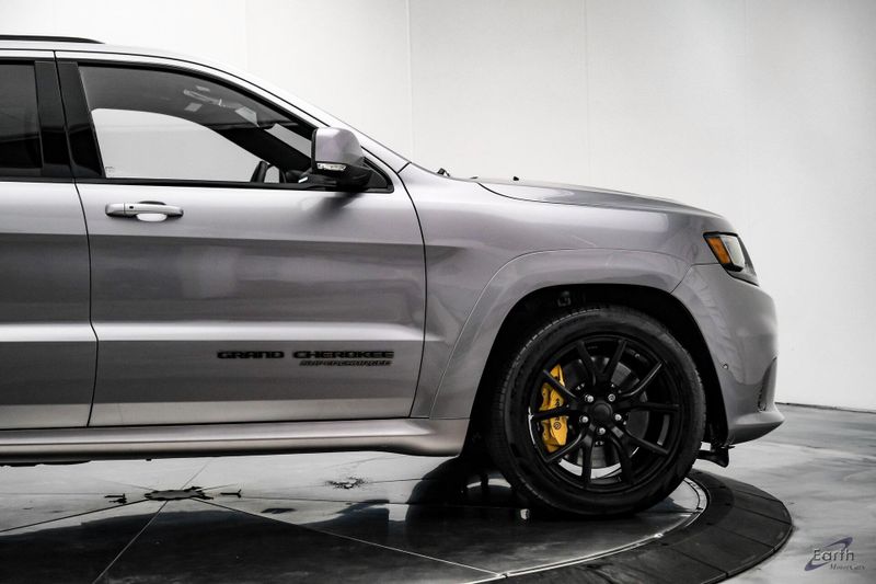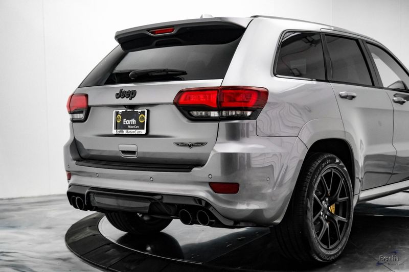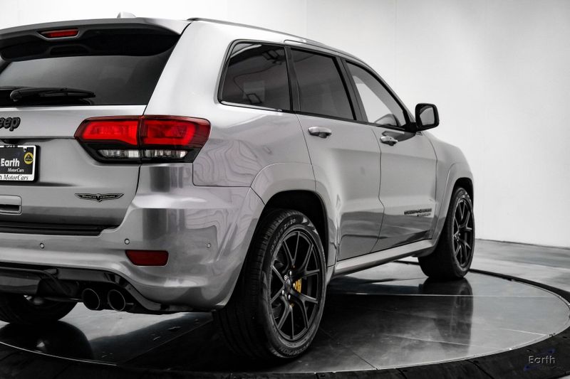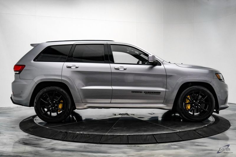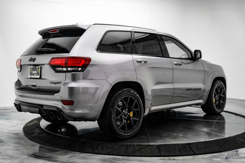 Earth MotorCars is Proud to offer this amazing: 2018 Jeep Grand Cherokee Trackhawk Pano Roof High Performance Audio Signature Interior CARFAX One-Owner. 4WD, 19 Speakers High Performance Audio, 7 & 4 Pin Wiring Harness, 825 Watt Amplifier, ABS brakes, Adaptive suspension, Air Conditioning, Auto High-beam Headlights, Auto-dimming door mirrors, Automatic temperature control, Brake assist, Bumpers: body-color, Class IV Receiver Hitch, Dual front impact airbags, Dual front side impact airbags, Dual-Pane Panoramic Sunroof, Four wheel independent suspension, Front Bucket Seats, Front Center Armrest w/Storage, Fully automatic headlights, Heavy-Duty Engine Cooling, High performance Audio, Illuminated entry, Knee airbag, Laguna Leather Care Instruction Tag, Laguna Leather Performance Seats, Laguna Leather Reserve Door Trim, Leather Wrapped Lower Panels, Panic alarm, ParkView Rear Back-Up Camera, Power Liftgate, Premium Headliner Module, Quick Order Package 2XV, Rain sensing wipers, Rear window wiper, Remote keyless entry, Security system, Signature Leather Wrapped Interior Package, Speed control, Speed-Sensitive Wipers, Spoiler, Steering wheel mounted audio controls, Trailer Tow Group IV, Wheels: 20'' x 10'' Black Satin Aluminum.