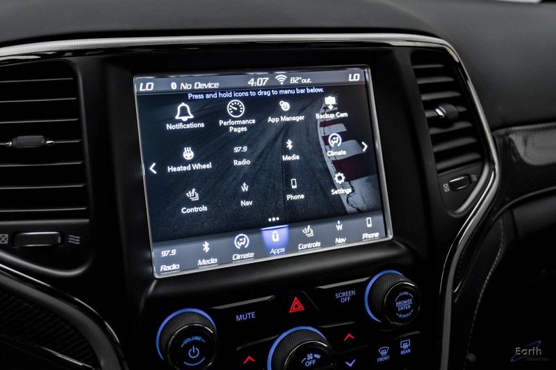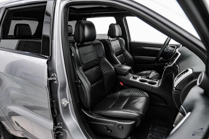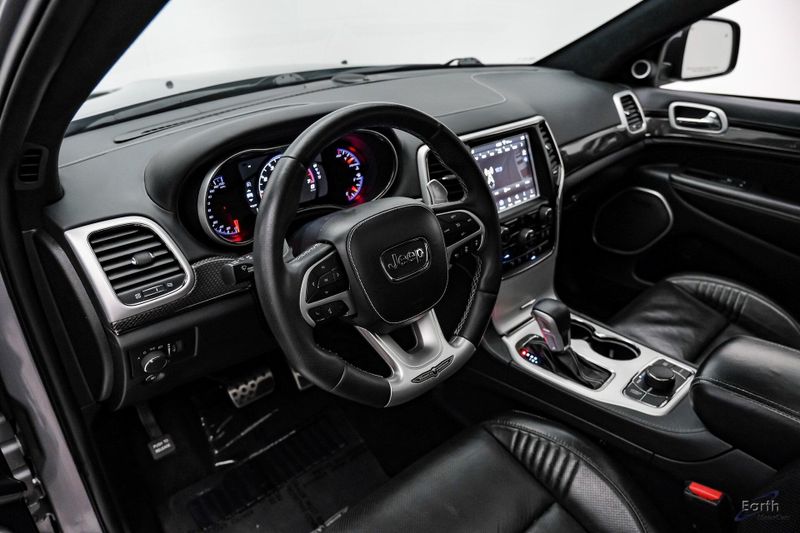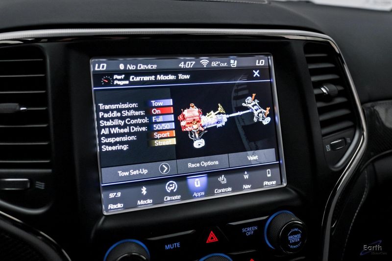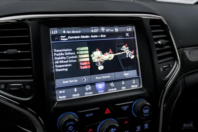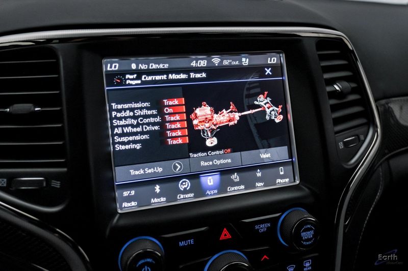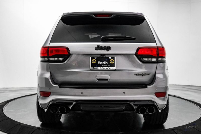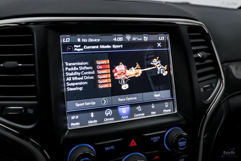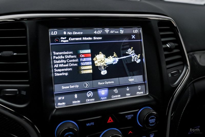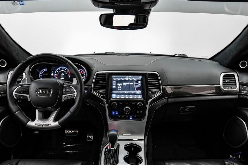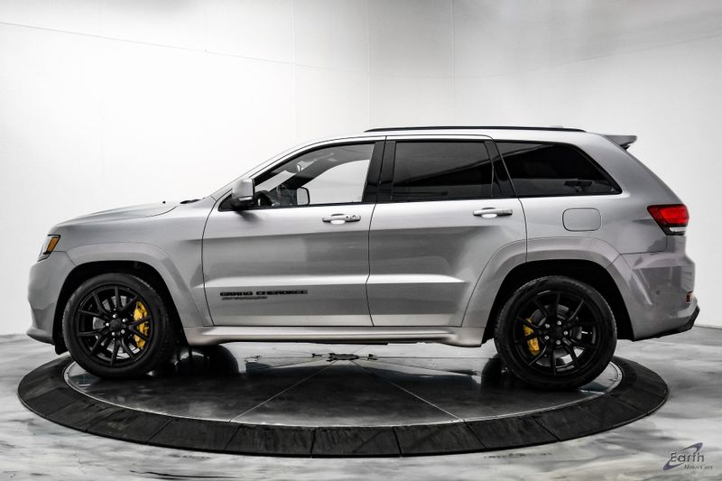 Earth MotorCars is Proud to offer this amazing: 2018 Jeep Grand Cherokee Trackhawk Pano Roof High Performance Audio Signature Interior CARFAX One-Owner. 4WD, 19 Speakers High Performance Audio, 7 & 4 Pin Wiring Harness, 825 Watt Amplifier, ABS brakes, Adaptive suspension, Air Conditioning, Auto High-beam Headlights, Auto-dimming door mirrors, Automatic temperature control, Brake assist, Bumpers: body-color, Class IV Receiver Hitch, Dual front impact airbags, Dual front side impact airbags, Dual-Pane Panoramic Sunroof, Four wheel independent suspension, Front Bucket Seats, Front Center Armrest w/Storage, Fully automatic headlights, Heavy-Duty Engine Cooling, High performance Audio, Illuminated entry, Knee airbag, Laguna Leather Care Instruction Tag, Laguna Leather Performance Seats, Laguna Leather Reserve Door Trim, Leather Wrapped Lower Panels, Panic alarm, ParkView Rear Back-Up Camera, Power Liftgate, Premium Headliner Module, Quick Order Package 2XV, Rain sensing wipers, Rear window wiper, Remote keyless entry, Security system, Signature Leather Wrapped Interior Package, Speed control, Speed-Sensitive Wipers, Spoiler, Steering wheel mounted audio controls, Trailer Tow Group IV, Wheels: 20'' x 10'' Black Satin Aluminum.