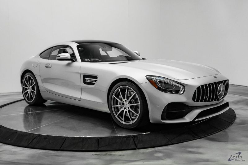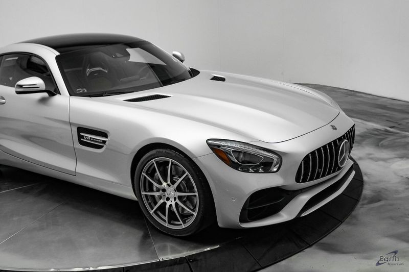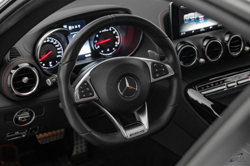 Earth MotorCars is Proud to offer this amazing: 2018 Mercedes-Benz AMG GT DISTRONIC PLUS Pano Roof AMG Performance Exhaust Clean CARFAX. CLEAN AUTOCHECK REPORT, AMG Black Piano Lacquer Trim, ABS brakes, Air Conditioning, Alloy wheels, AMG Illuminated Door Sill Covers, AMG Performance Exhaust System, Auto High-beam Headlights, Auto-dimming door mirrors, Auto-dimming Rear-View mirror, Automatic temperature control, Blind Spot Assist, Bumpers: body-color, Burmester Surround Sound System, DISTRONIC PLUS, Dual front impact airbags, Dual front side impact airbags, DVD-Audio, Electronic Stability Control, Exterior Parking Camera Rear, Fixed Panorama Roof, Front Bucket Seats, Front Center Armrest, Heated & Active Ventilated Front Seats, Heated front seats, Illuminated entry, Lane Keeping Assist, Lane Tracking Package, Low tire pressure warning, Nappa Leather Upholstery, Nappa/DINAMICA AMG Performance Steering Wheel, Navigation System, Rain sensing wipers, Rear window defroster, Remote keyless entry, Security system, Steering wheel memory, Steering wheel mounted audio controls, Traction control, Tri-Zone A/C, Variably intermittent wipers, Wheels: 19'' Fr/20'' Rr AMG 10-Spoke Forged Titanium.