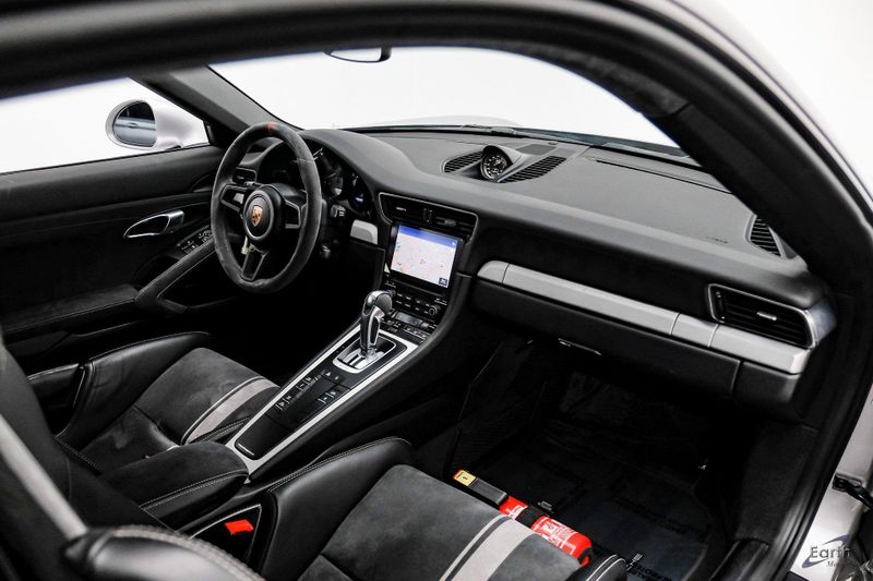 Earth MotorCars is Proud to offer this amazing: 2018 Porsche 911 GT3 Carbon Buckets, Front Lift, Bose CARFAX One-Owner. Clean CARFAX. 23.7 Gal-Fuel Tank, 4-Wheel Disc Brakes, 8 Speakers, ABS brakes, Adaptive suspension, Air Conditioning, Apple CarPlay, Automatic temperature control, BOSE Surround Sound System, Bumpers: body-color, Delay-off headlights, Driver vanity mirror, Dual front impact airbags, Dual front side impact airbags, Electronic Stability Control, Exterior Parking Camera Rear, Fire Extinguisher, Four wheel independent suspension, Front Axle Lift System, Front Bucket Seats, Front Center Armrest, Front reading lights, Full Bucket Seats, Heated door mirrors, Illuminated entry, Knee airbag, Leather/Alcantara Seat Trim, LED Headlights w/PDLS+, Navigation System, Porsche Communication Management, Porsche Dynamic Light System (PDLS), Power door mirrors, Rear fog lights, Rear window defroster, Remote keyless entry, Security system, Smoking Package, Speed control, Spoiler, Sport Chrono Package, Steering Wheel Rim w/Top Center Marking in Red, Tachometer, Telescoping steering wheel, Tilt steering wheel, Traction control, Trip computer, Variably intermittent wipers, Wheels Painted in Satin Black, Wheels: 9J x 20'' Fr/12J x 20'' Rr GT3.