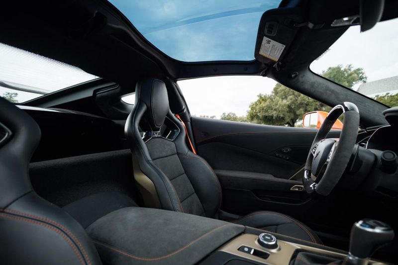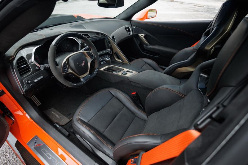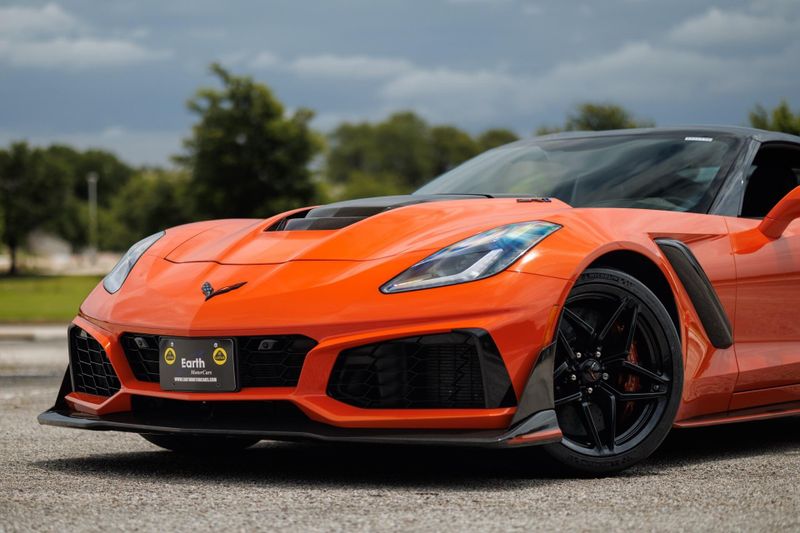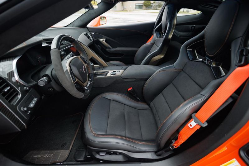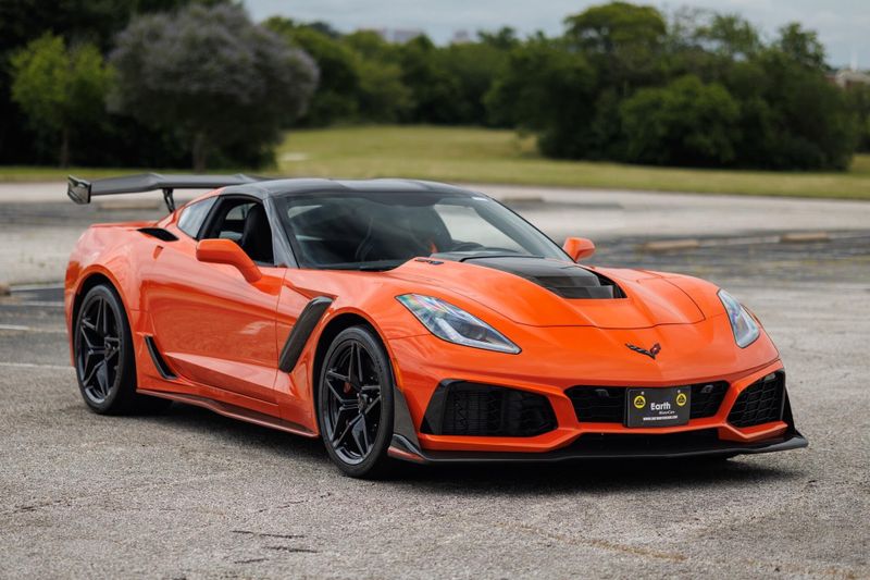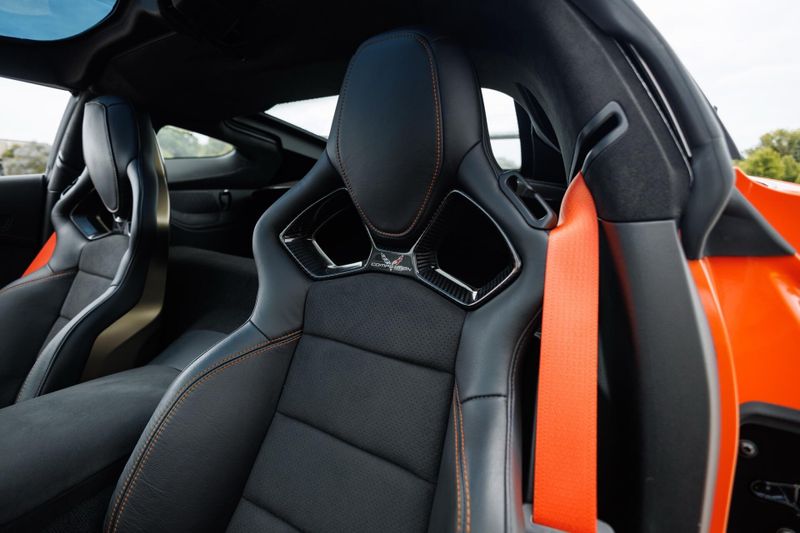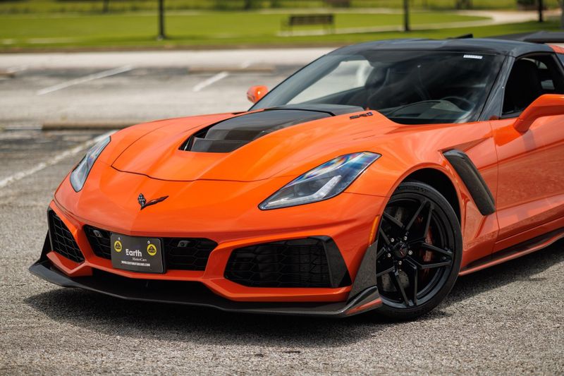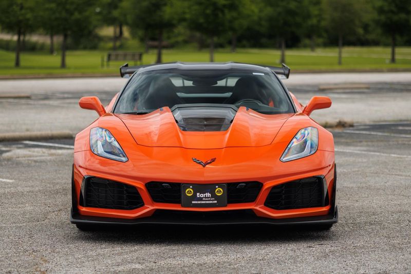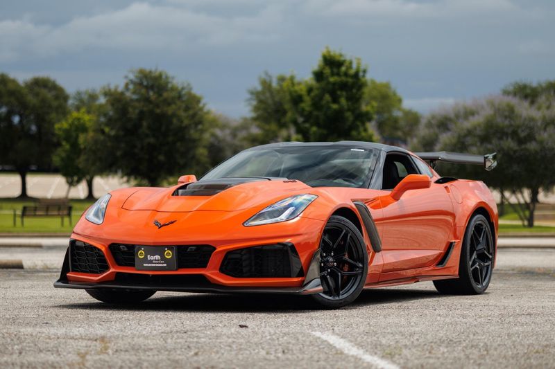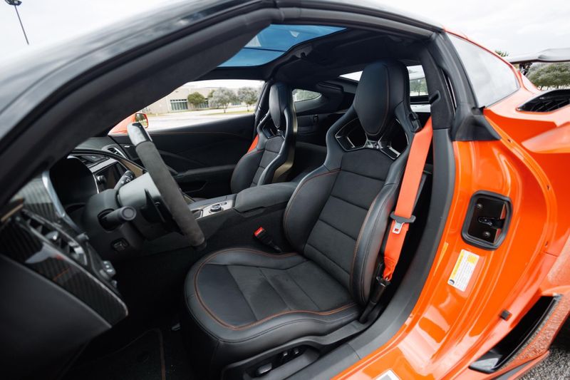 Earth MotorCars is Proud to offer this amazing: 2019 Chevrolet Corvette ZR1 Sebring Orange Design Pkg 3ZR ZTK Track Perf Pkg CARFAX One-Owner. Clean CARFAX. 8-Way Driver & Passenger Seat Adjusters, Air Conditioning, Auto-Dimming Inside Frameless Rearview Mirror, Automatic temperature control, Blackout Roof Decal, Body-Color Outside Heated Power-Adjustable Mirrors, Bose Advanced 10-Speaker Audio System Feature, Bumpers: body-color, Carbon Fiber & Leather-Wrapped Rim Steering Wheel, Carbon Fiber 3-Spoke Flat-Bottom Steering Wheel, Cargo Net, Competition Sport Bucket Seats, Custom Leather Wrapped Interior Package, Dual front impact airbags, Dual front side impact airbags, Front Bucket Seats, Front Curb View Cameras, Head-Up Display, Heated & Vented Driver & Front Passenger Seats, Luggage Shade, Memory Package, Orange Custom Leather Stitch, Orange-Painted Calipers, Performance Data & Video Recorder, Performance Ride & Handling Suspension, Power Lumbar/Bolster Seat Adjusters, Preferred Equipment Group 3ZR, Radio: Chevrolet Infotainment System w/Navigation, Remote keyless entry, Remote Vehicle Starter System, SiriusXM Radio, Sueded Microfiber-Wrapped Interior Trim Package, Theft Deterrent System, Universal Home Remote, Wheels: 19'' x 10.5'' Fr & 20'' x 12'' Rr Carbon Flash, ZR1 Sebring Orange Design Package, ZTK Track Performance Package.